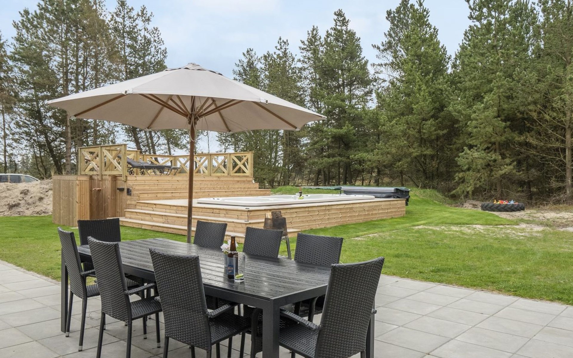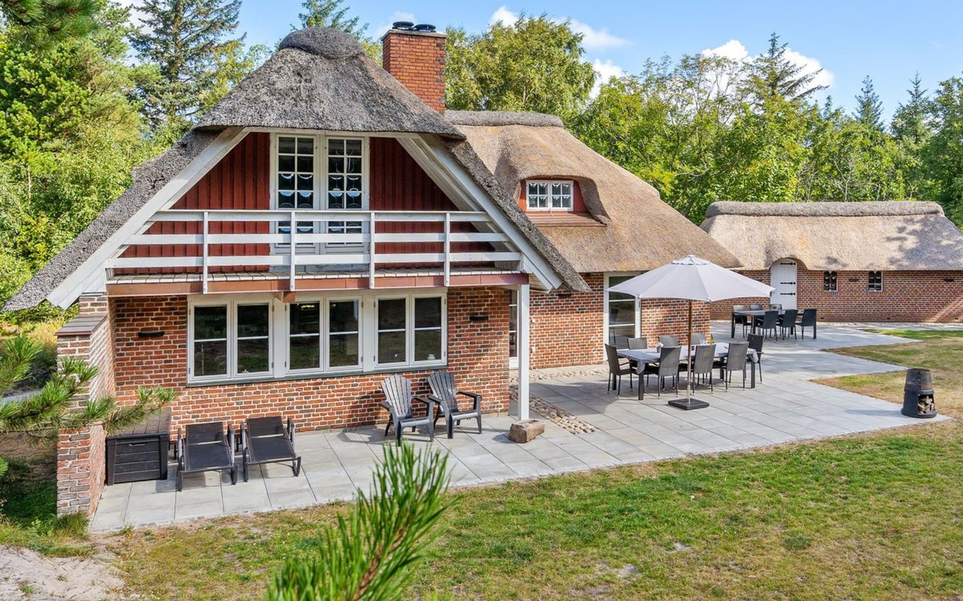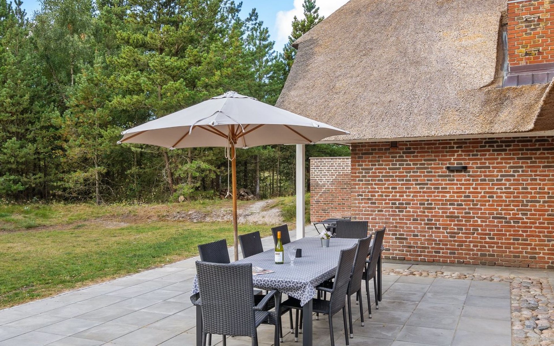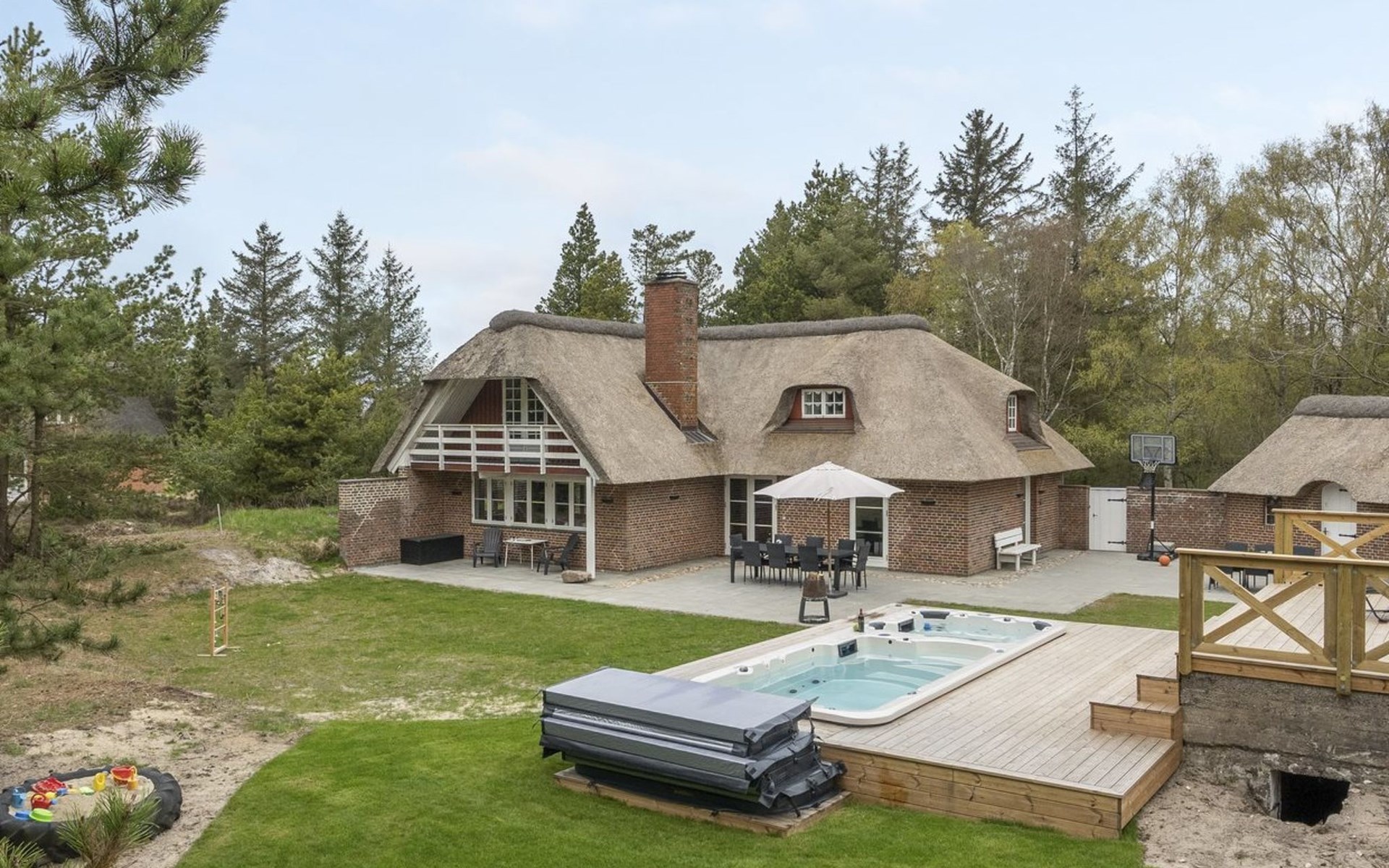 Eengezinswoning, bouwjaar 1977. 3.5 km van zee. Voor alleengebruik: terrein 2.800 m2. Terras (200 m2), kinderspeelplaats (schommel). In het huis: trampoline, wasmachine, droger. Parkeerplaats bij het huis. Oplaadstation. Levensmiddelenwinkel 1 km. Golfterrein 5.3 km. De eigenaar accepteert geen jeugdgroepen.