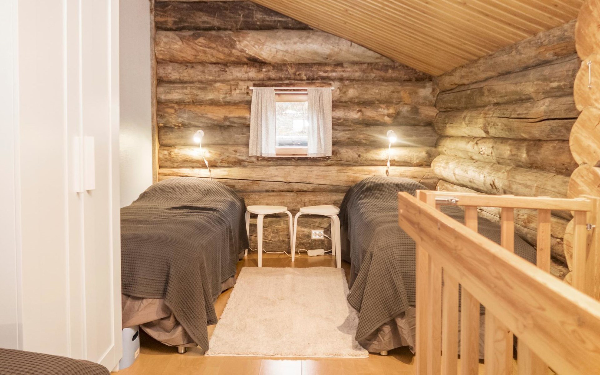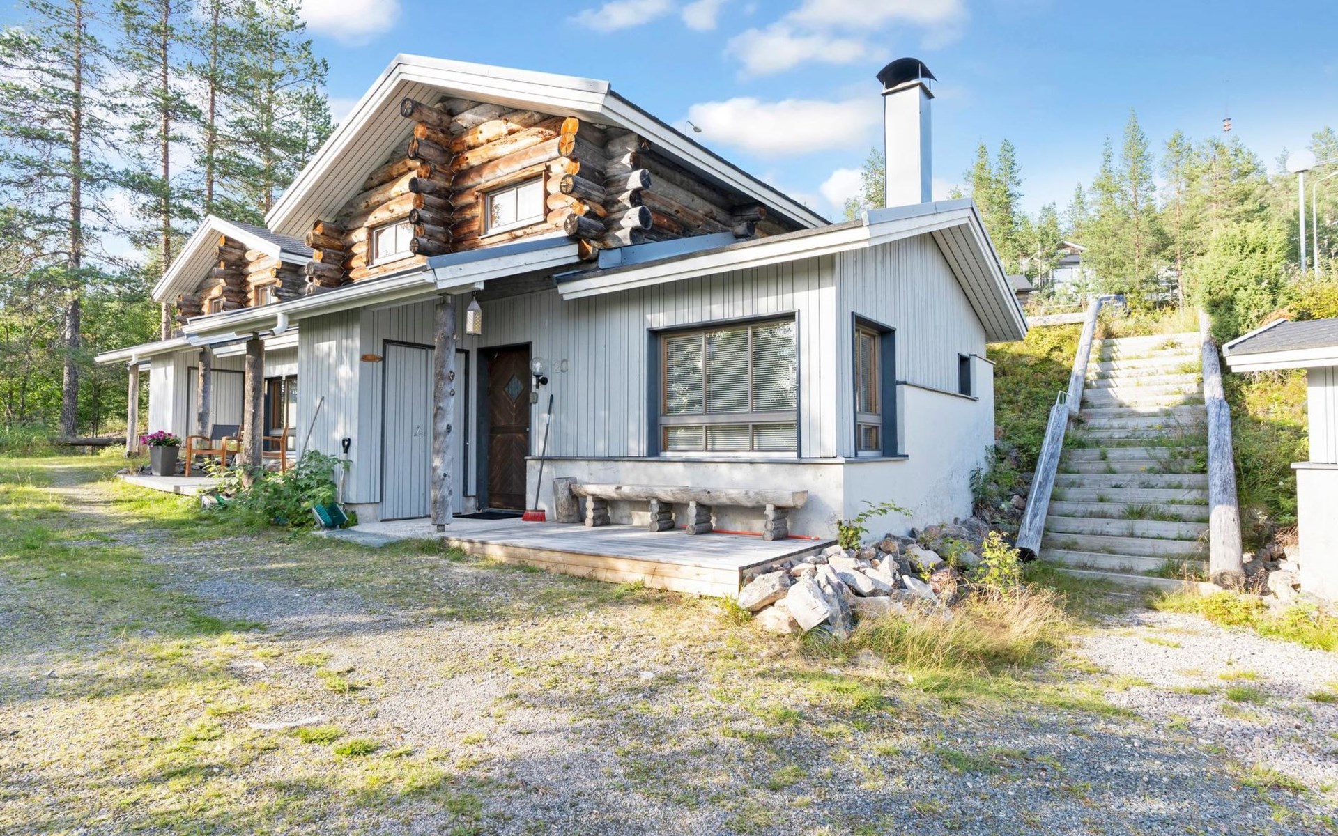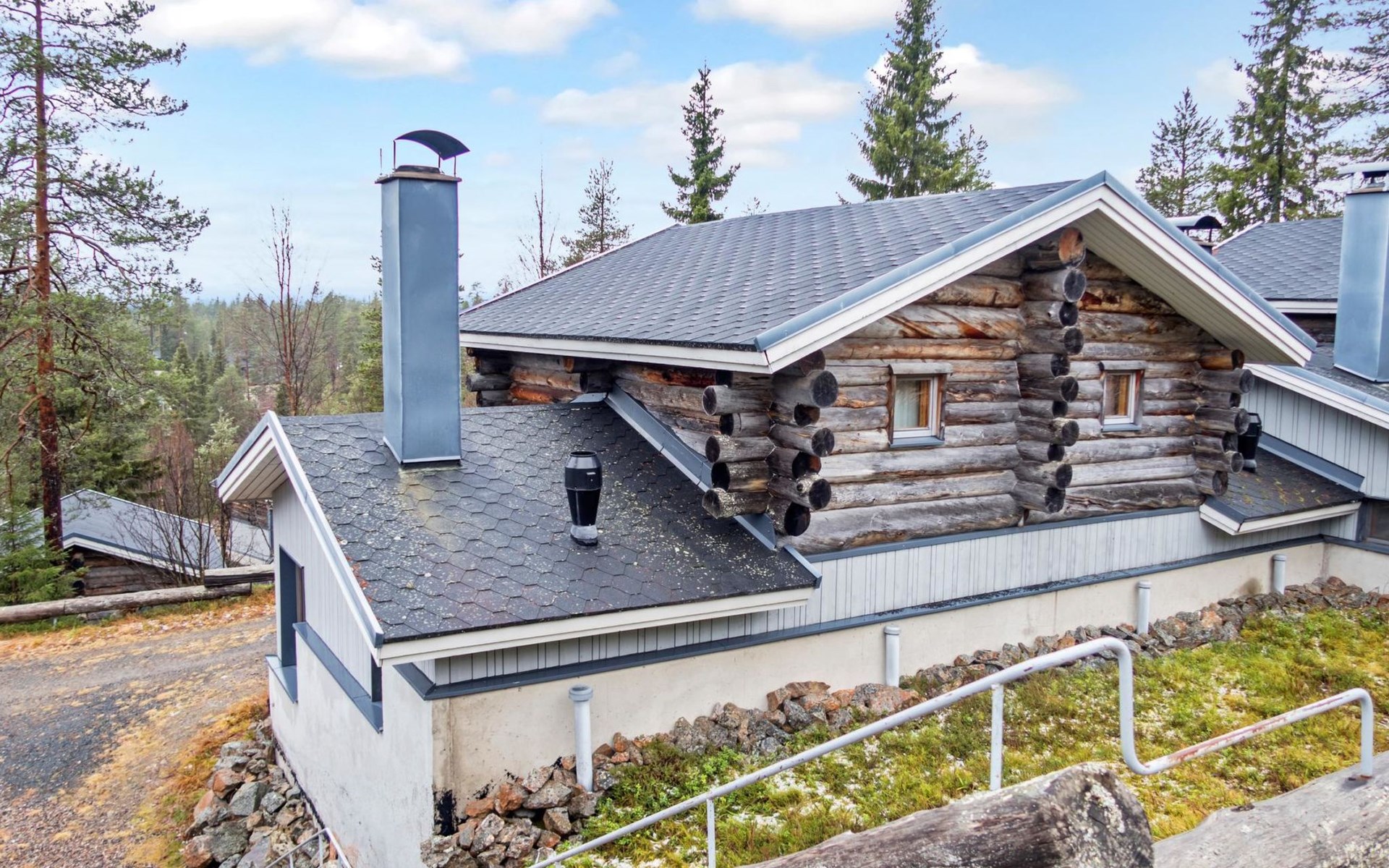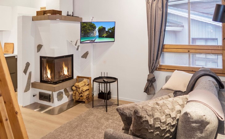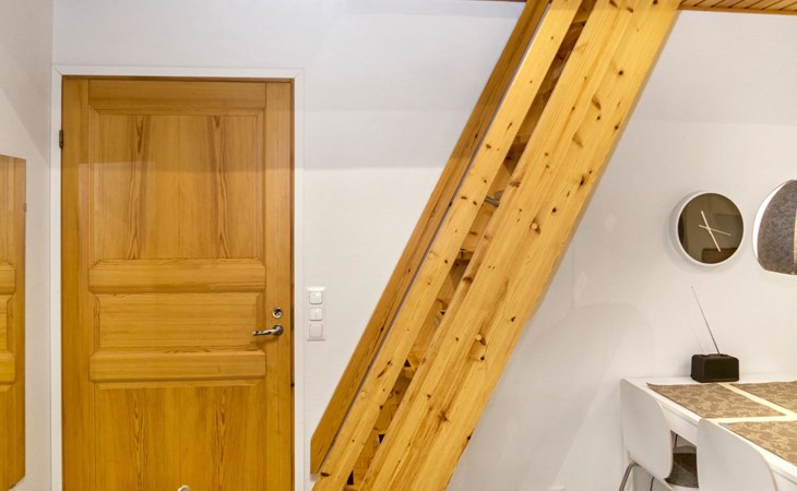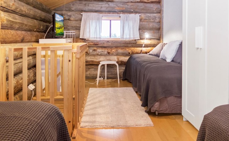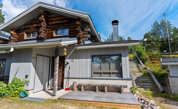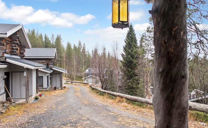 27 km to the north from Kuusamo, Ruka village (West-Ruka) 1,5 km. Apartment with loft in the row house. On the ground floor, WC, washroom, electric sauna and living room/kitchen (spreadable sofa bed for two). Loft: 3 beds.