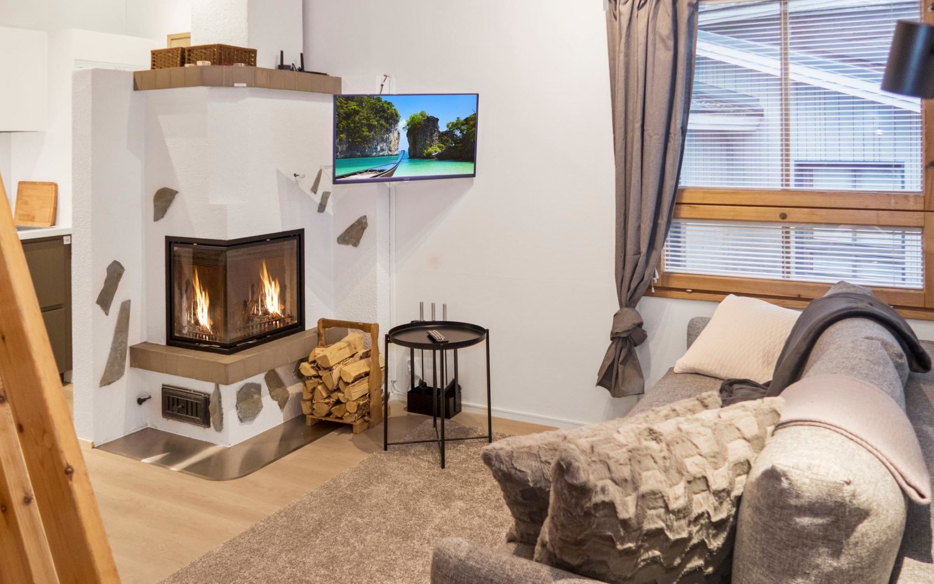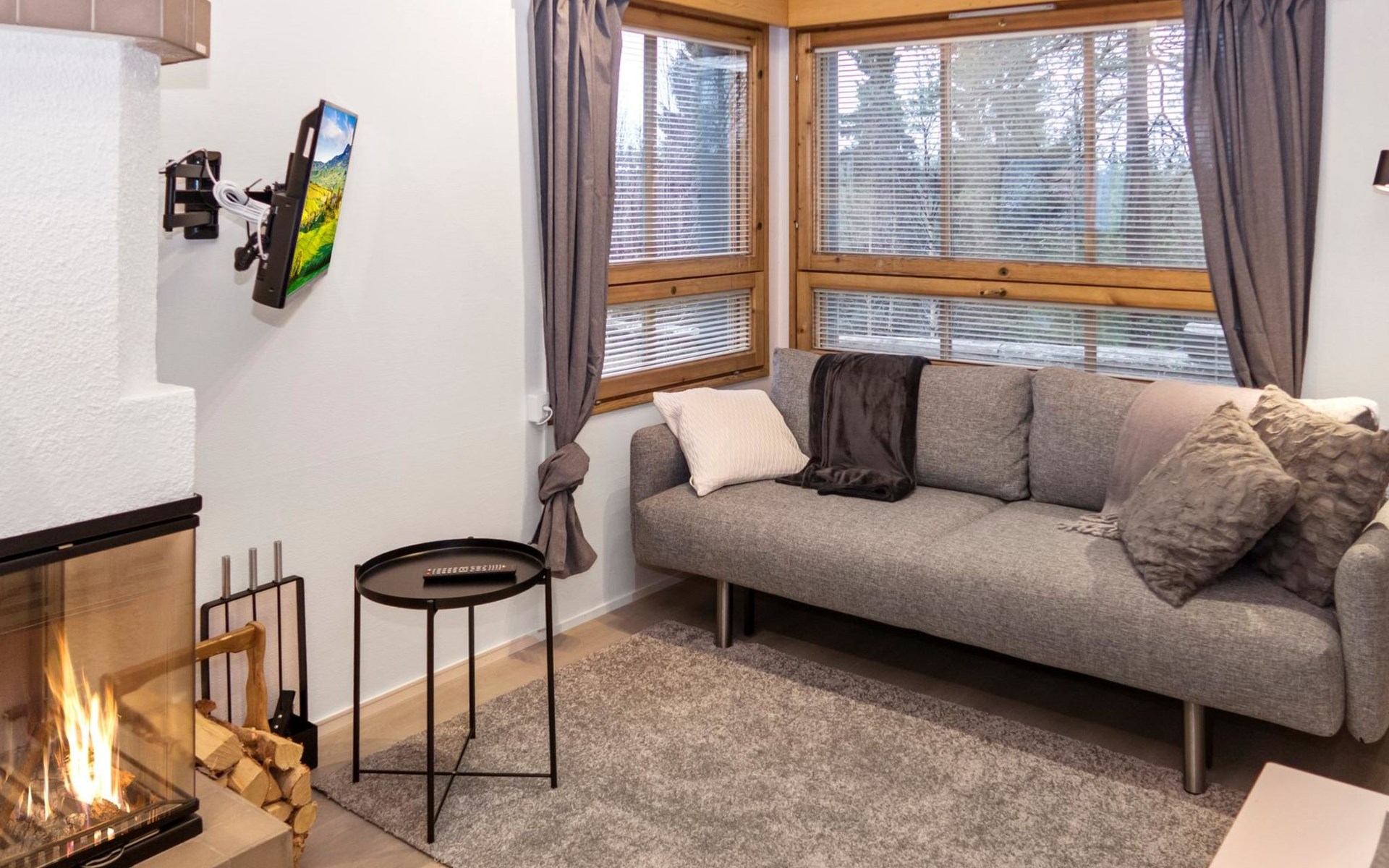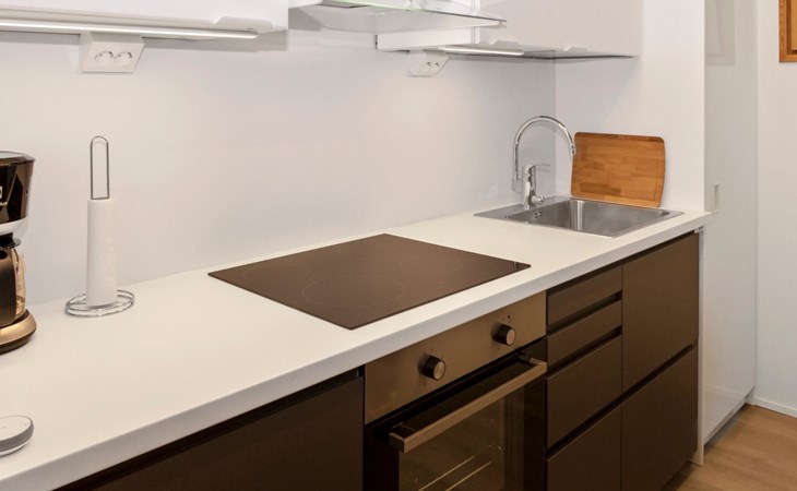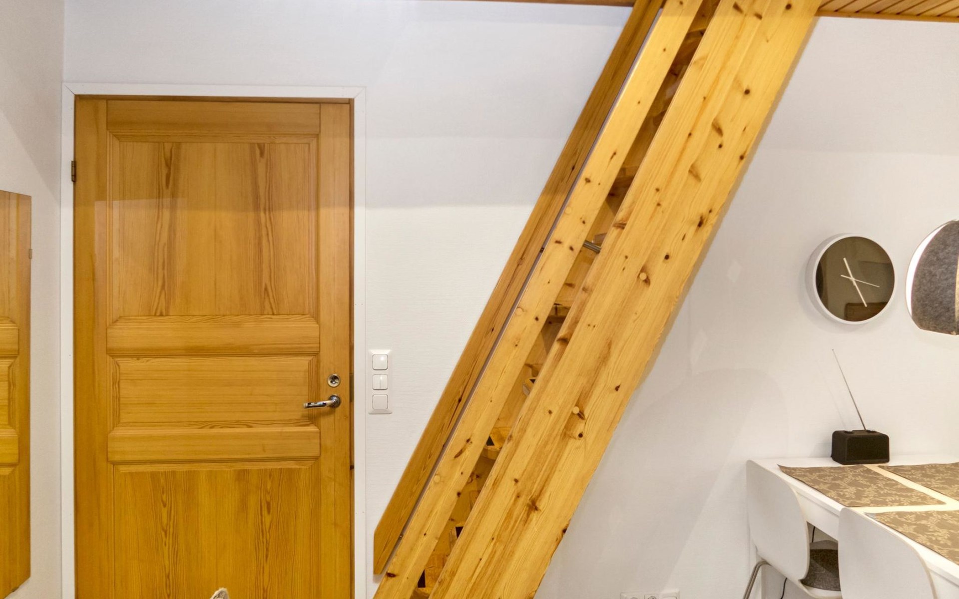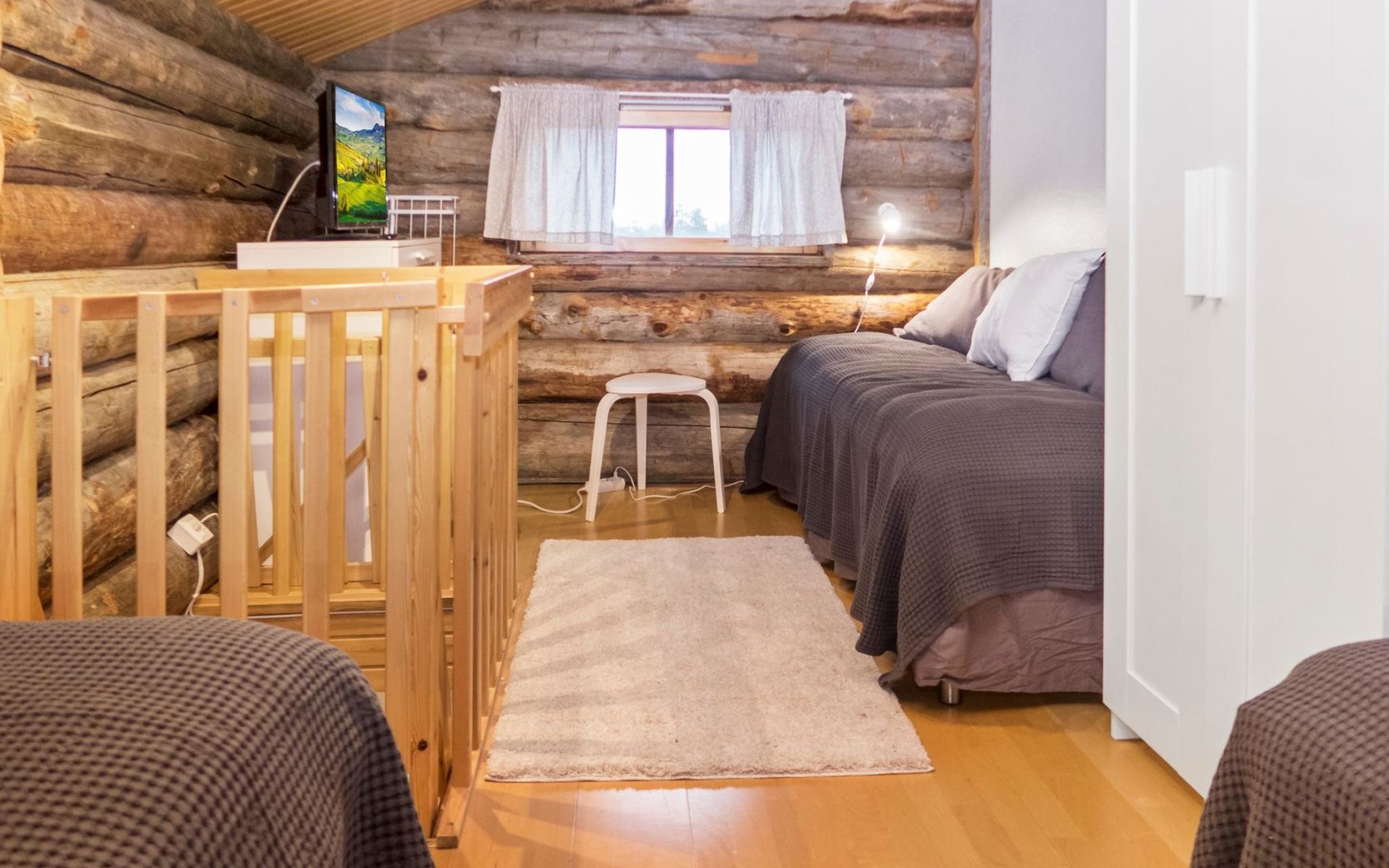 27 km to the north from Kuusamo, Ruka village (West-Ruka) 1,5 km. Apartment with loft in the row house. On the ground floor, WC, washroom, electric sauna and living room/kitchen (spreadable sofa bed for two). Loft: 3 beds.