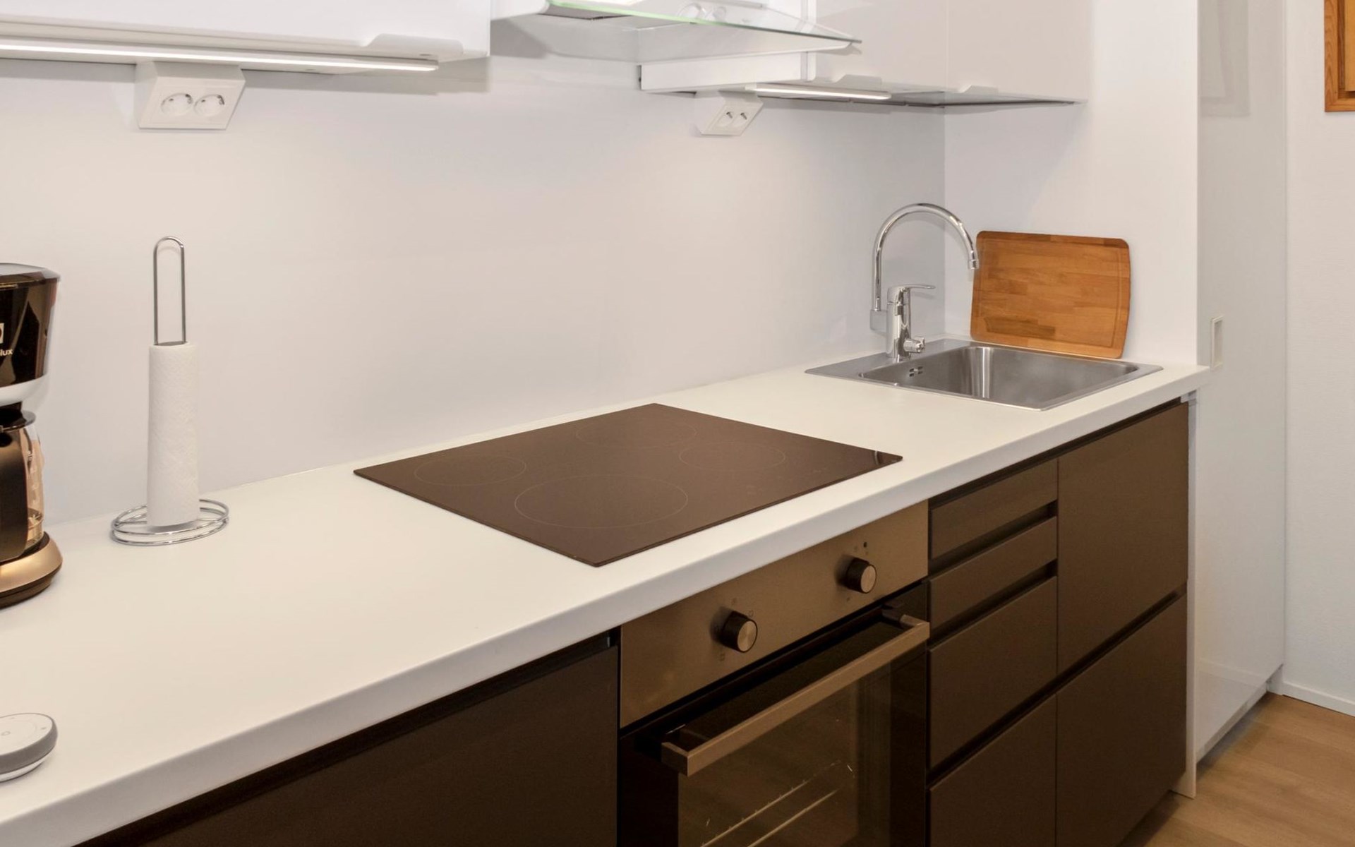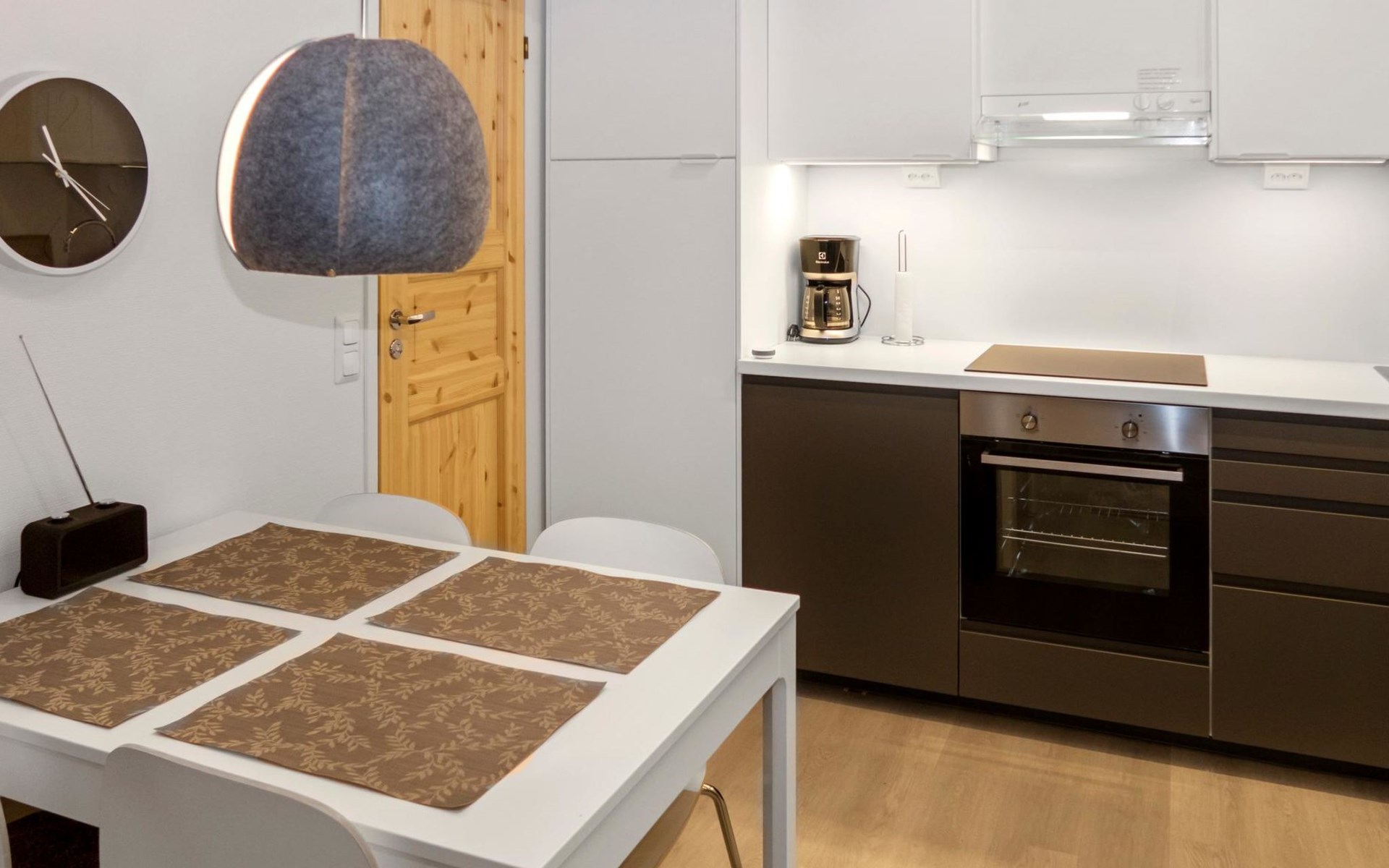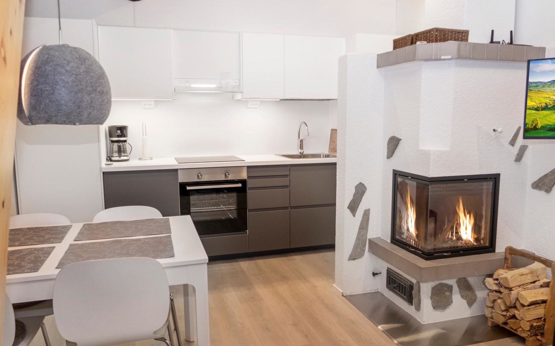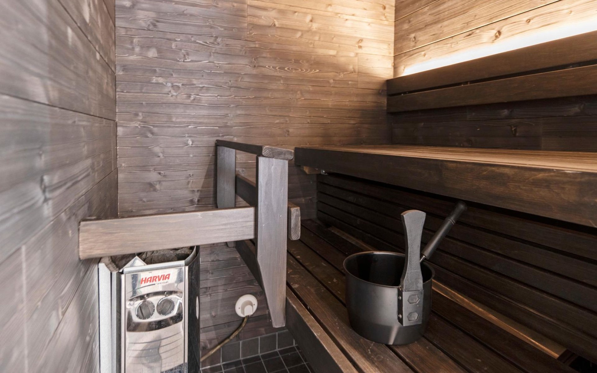 27 km to the north from Kuusamo, Ruka village (West-Ruka) 1,5 km. Apartment with loft in the row house. On the ground floor, WC, washroom, electric sauna and living room/kitchen (spreadable sofa bed for two). Loft: 3 beds.