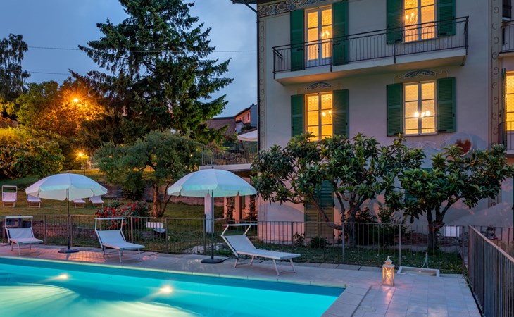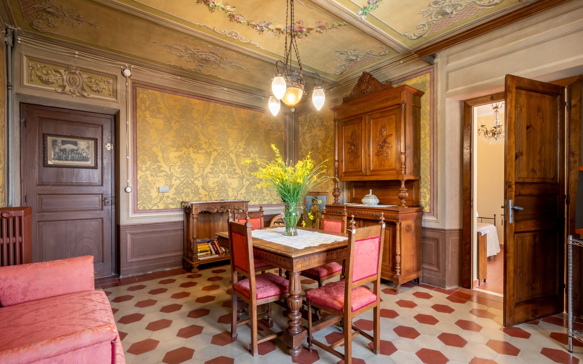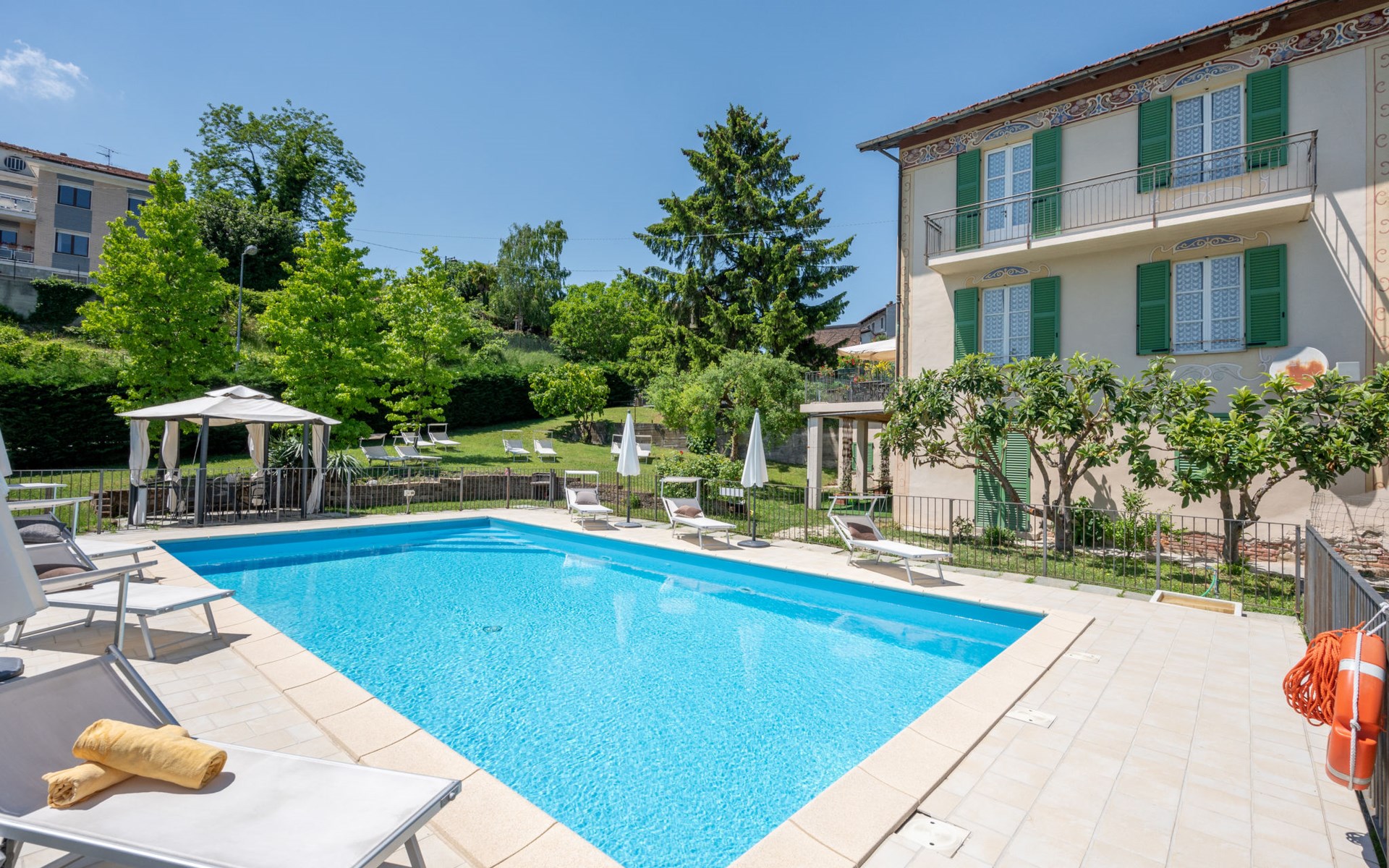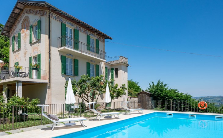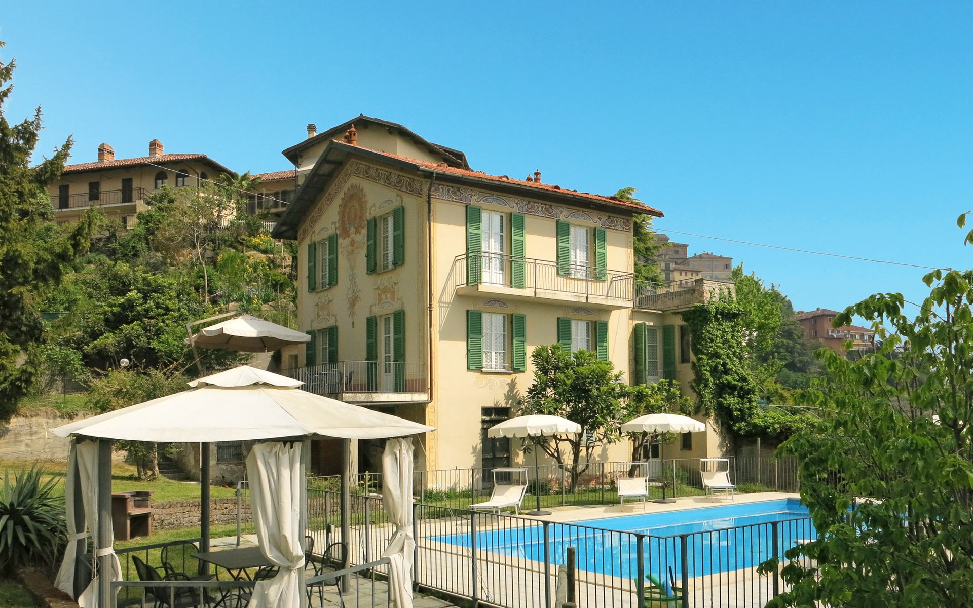 Historische villa "Savio", uit de 19e eeuw. In de plaats, 200 m van het centrum van La Morra, 4 km van het centrum van Barolo, 15 km van het centrum van Alba. Voor alleengebruik: terrein 1.000 m2 (omheind) met gazon en planten, ligweide, openluchtzwembad (11 x 6 m, 150 cm diepte, seizoensgebonden beschikbaarheid: 10.Mei. - 30.Okt.). WC bij het zwembad, onderhoud zwembad door de eigenaar/tuinman. Parkeerplaats (voor 3 auto's) op het terrein. Winkel, supermarkt 200 m, bakkerij 100 m, bushalte 350 m, treinstation "Alba" 15 km. Golfterrein (18 holes) 11 km. Auto noodzakelijk. Gesloten residentie met een elektrische deur.
