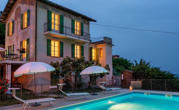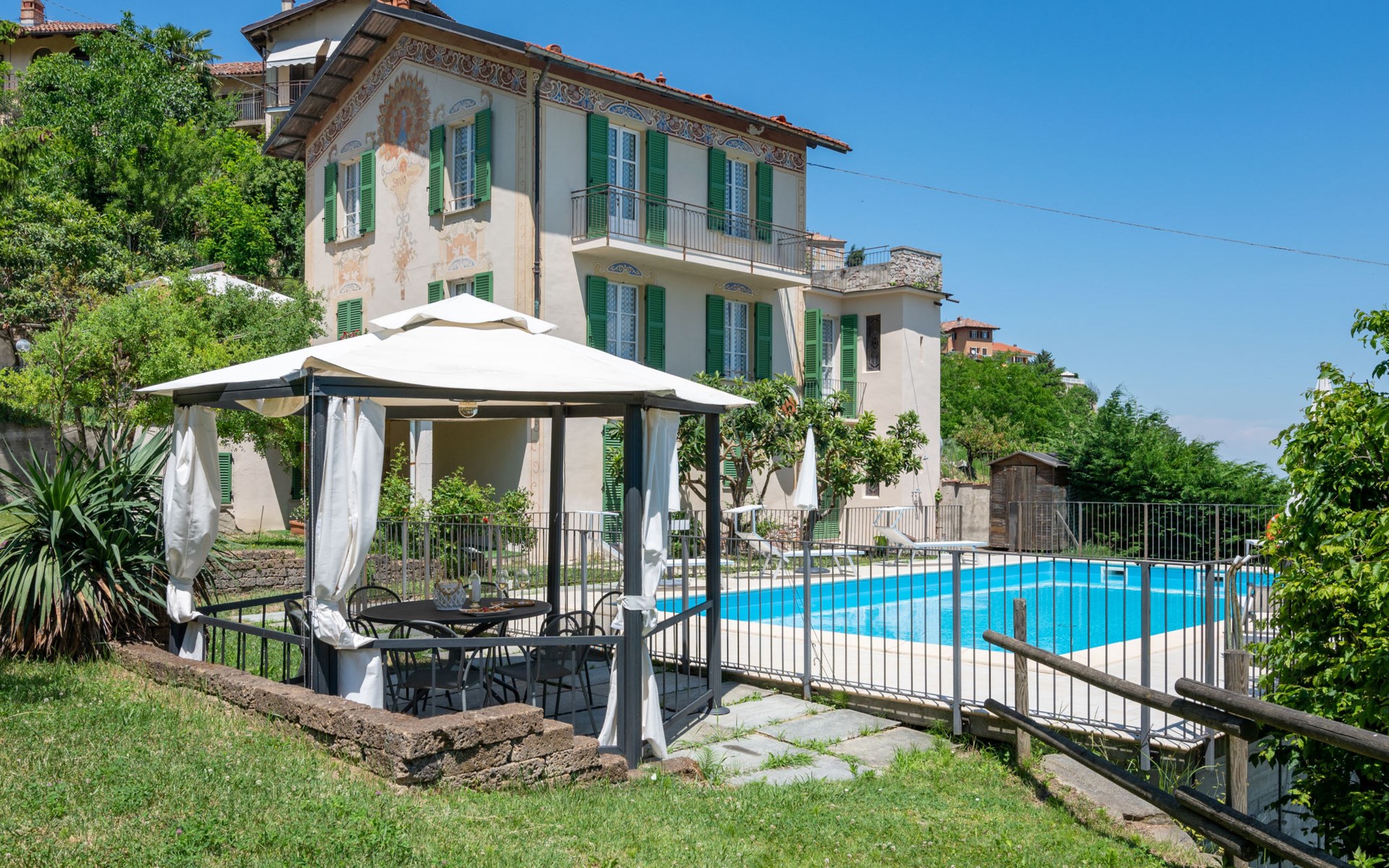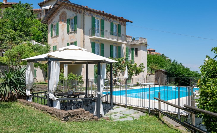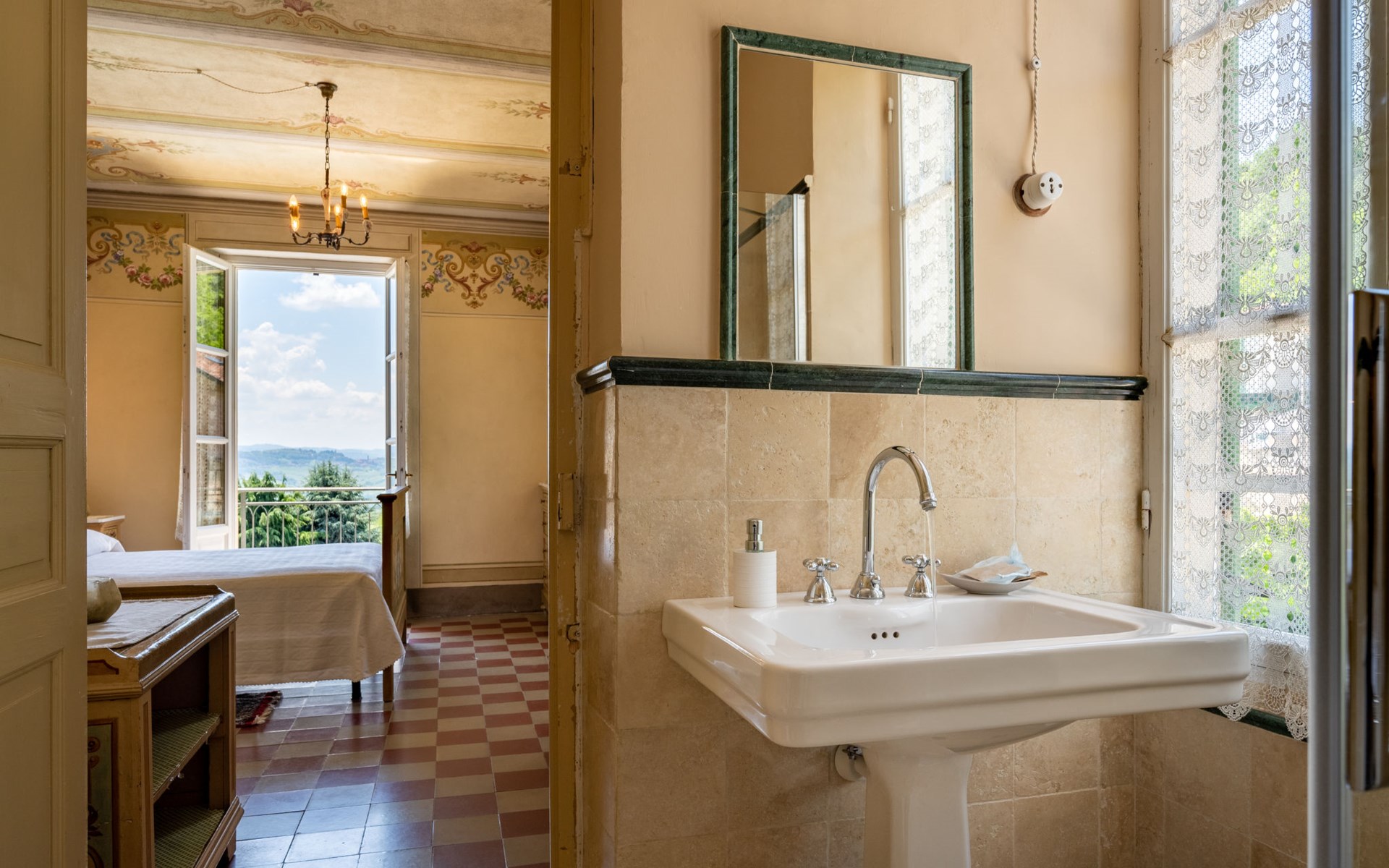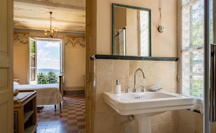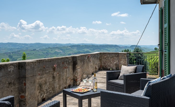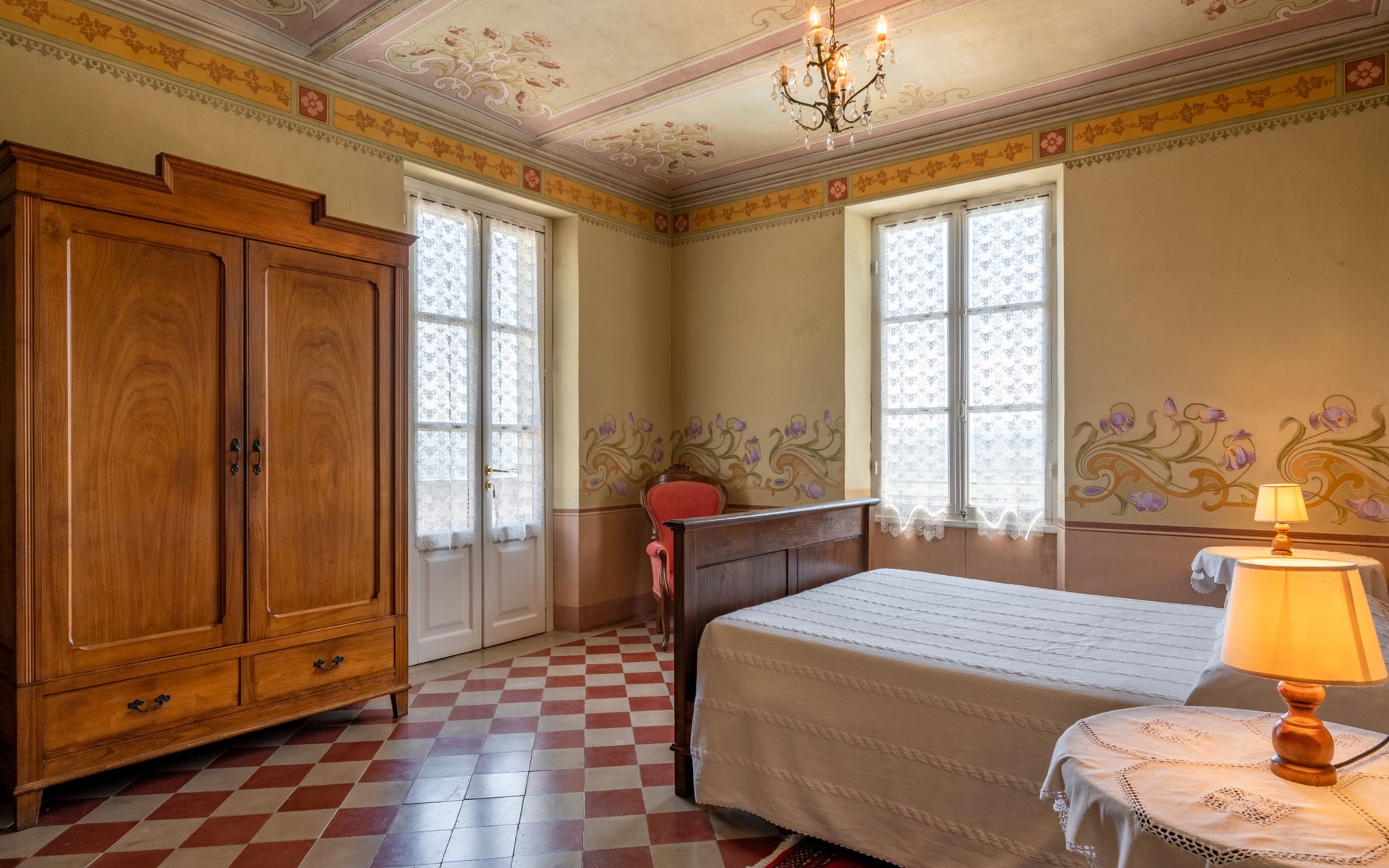 Historische villa "Savio", uit de 19e eeuw. In de plaats, 200 m van het centrum van La Morra, 4 km van het centrum van Barolo, 15 km van het centrum van Alba. Voor alleengebruik: terrein 1.000 m2 (omheind) met gazon en planten, ligweide, openluchtzwembad (11 x 6 m, 150 cm diepte, seizoensgebonden beschikbaarheid: 10.Mei. - 30.Okt.). WC bij het zwembad, onderhoud zwembad door de eigenaar/tuinman. Parkeerplaats (voor 3 auto's) op het terrein. Winkel, supermarkt 200 m, bakkerij 100 m, bushalte 350 m, treinstation "Alba" 15 km. Golfterrein (18 holes) 11 km. Auto noodzakelijk. Gesloten residentie met een elektrische deur.