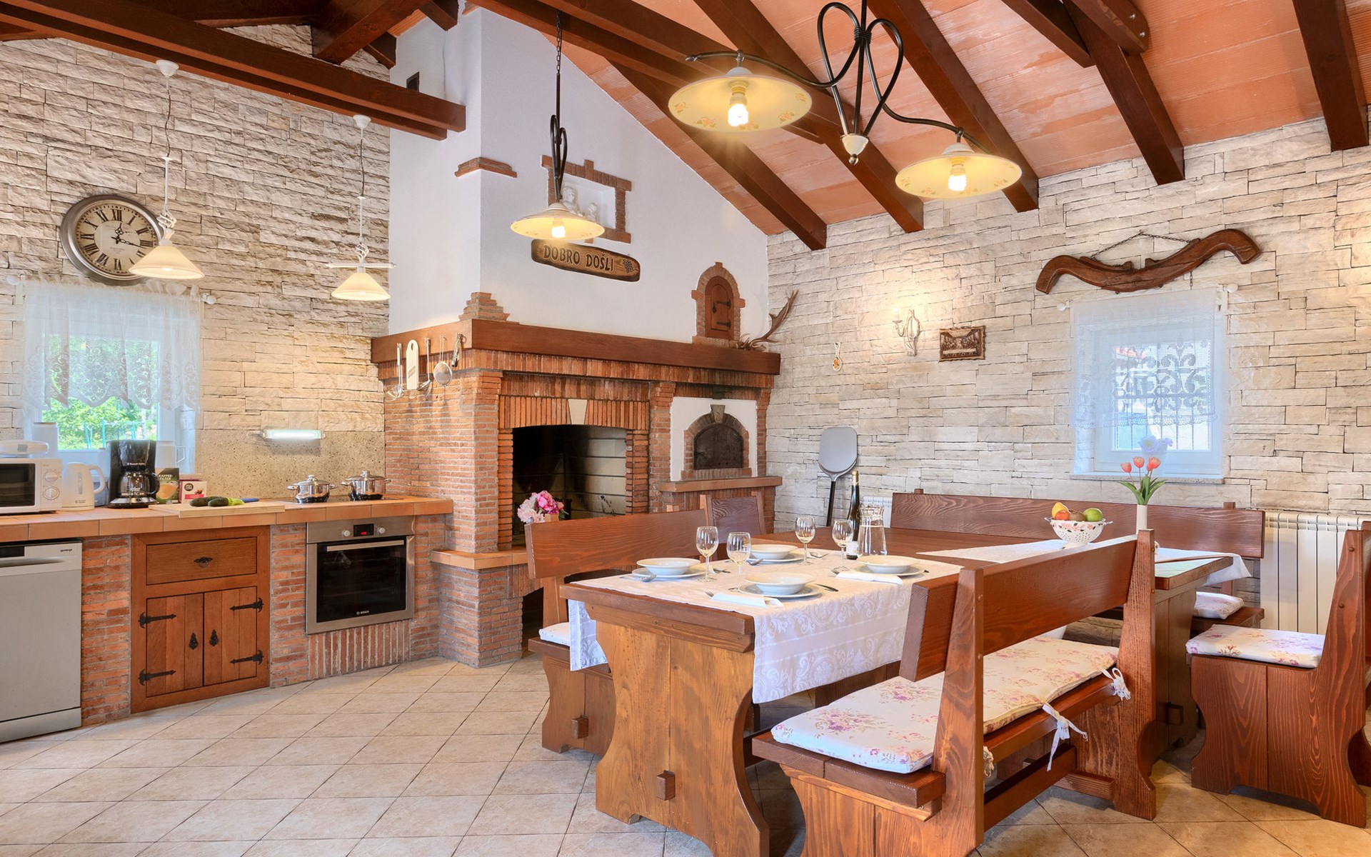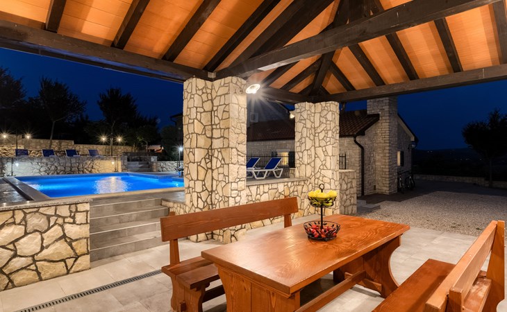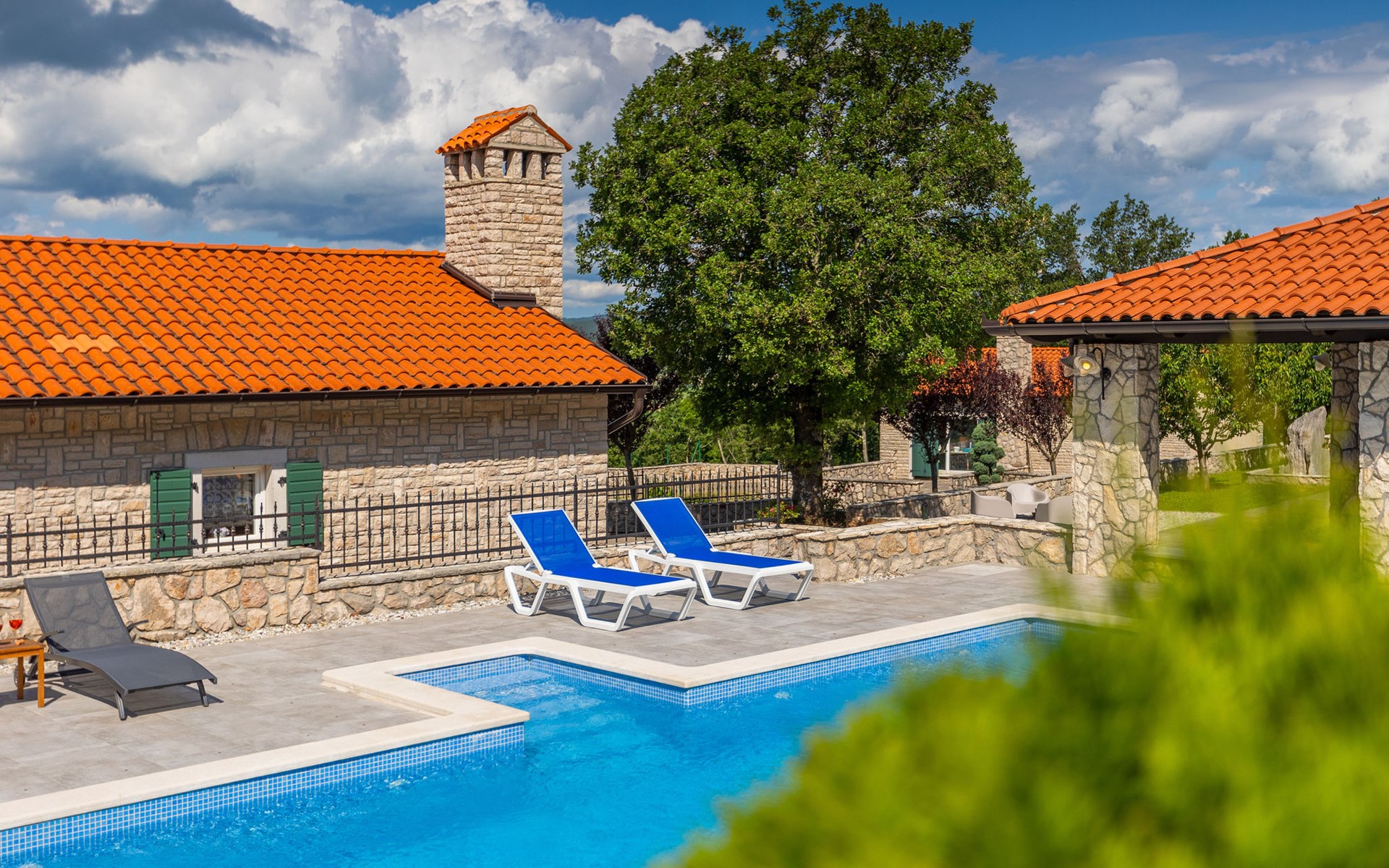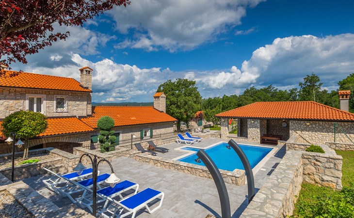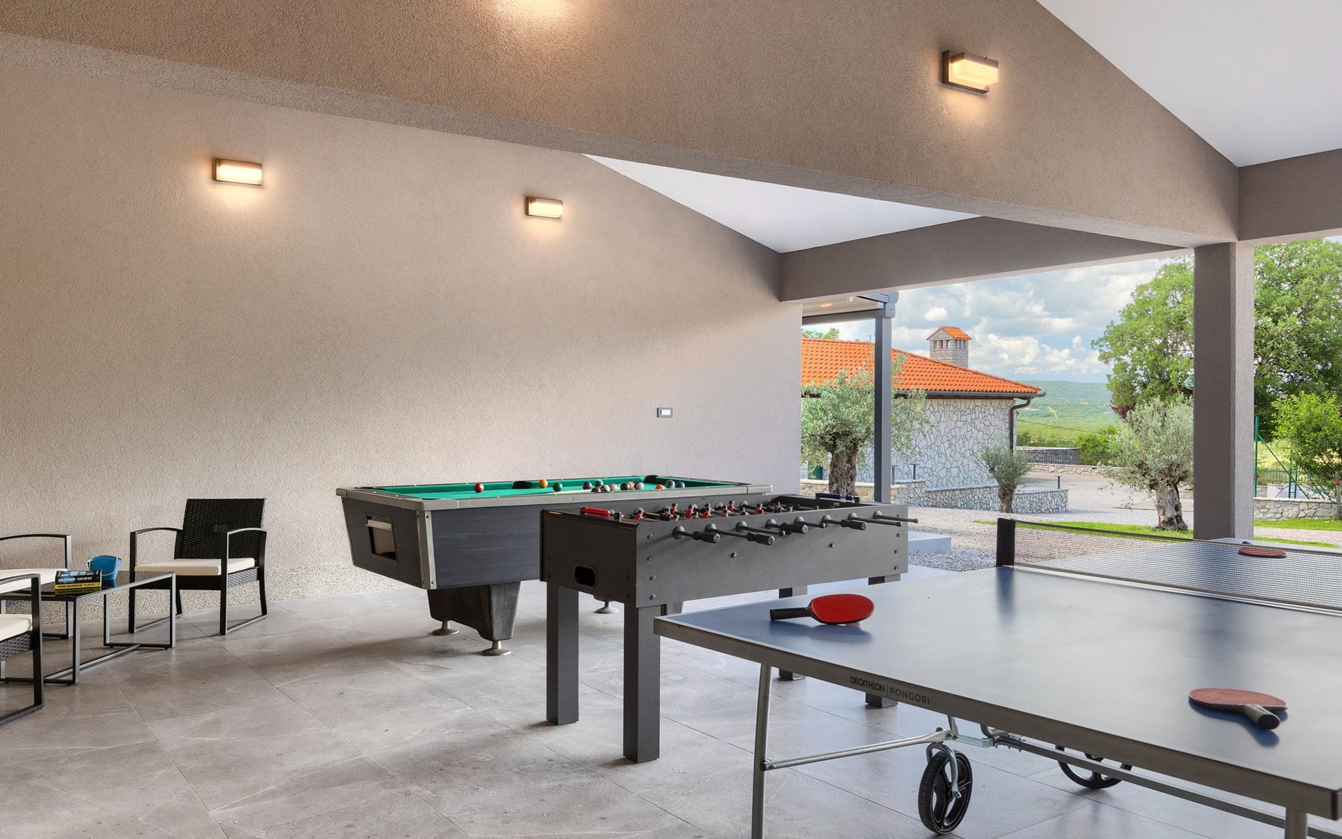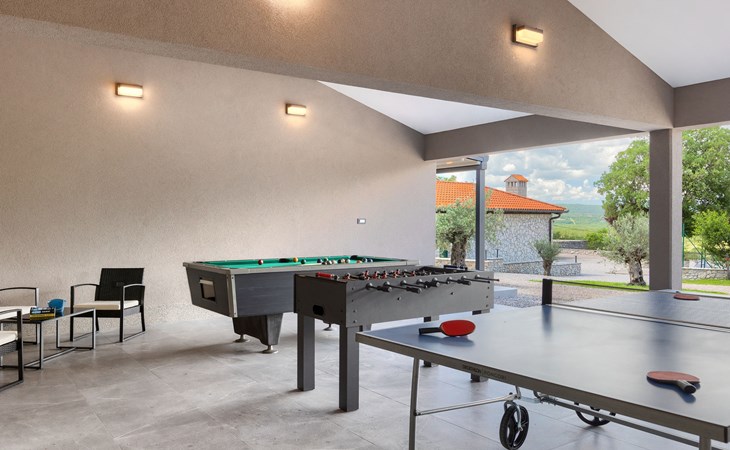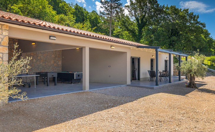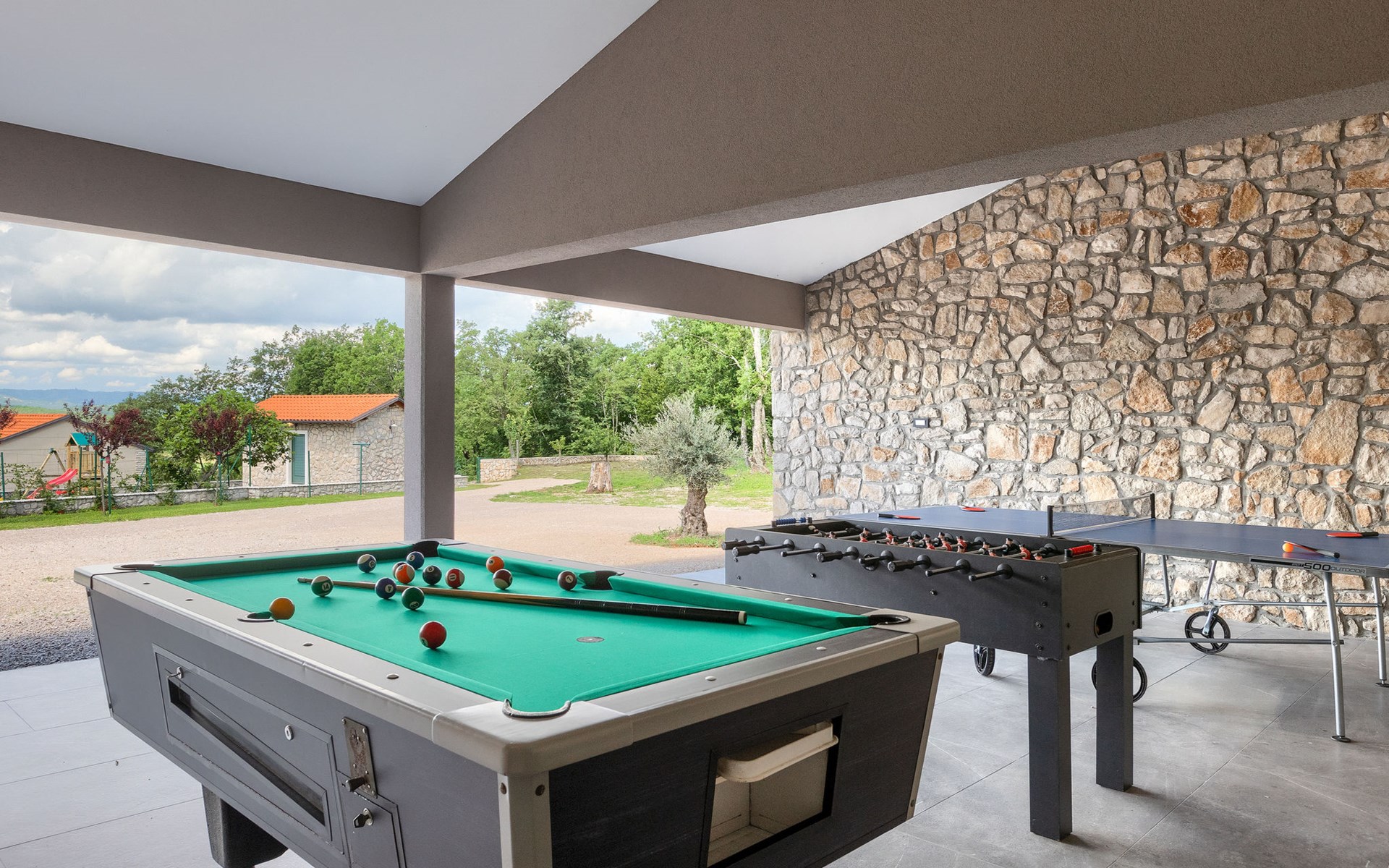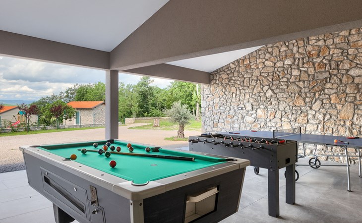 Mooi eengezinswoning "Villa Škavre", van 2 verdiepingen. 16 km van het centrum van Labin, 21 km van het centrum van Rabac, rustige, zonnige ligging, 11 km van zee, te midden van groen. Voor alleengebruik: terrein 3.500 m2, tuin met gazon en bomen, openluchtzwembad hoekig (10 x 5 m, 140 cm diepte, seizoensgebonden beschikbaarheid: 15.Mei. - 15.Okt.) met trap. WC bij het zwembad, buitendouche, terras (65 m2), tuinmeubelen, barbecue, kinderspeelplaats (glijbaan, schommel). In het huis: internetaansluiting, tafeltennis, biljart, speelkamer, tafelvoetbal, trampoline, centrale verwarming, wasmachine. Parkeerplaats (voor 10 auto's) bij het huis op het terrein. Winkel 8 km, supermarkt 14 km, restaurant 8 km, bushalte 8.2 km, kiezelstrand 11 km, rotsstrand 11 km, betonnen strand 11 km. Zeilschool 22 km, tennis 17 km, wandelroutes 600 m vanaf het huis, fietspad 650 m. De eigenaar accepteert geen jeugdgroepen. Vliegveld 46 km van het huis.