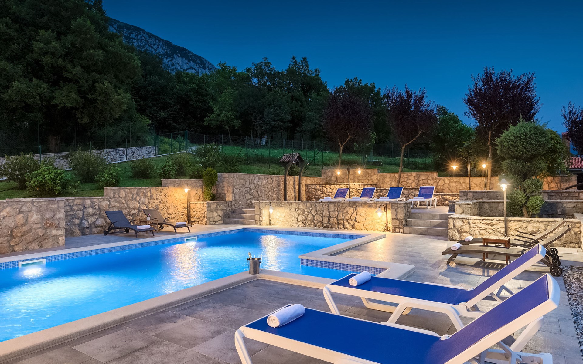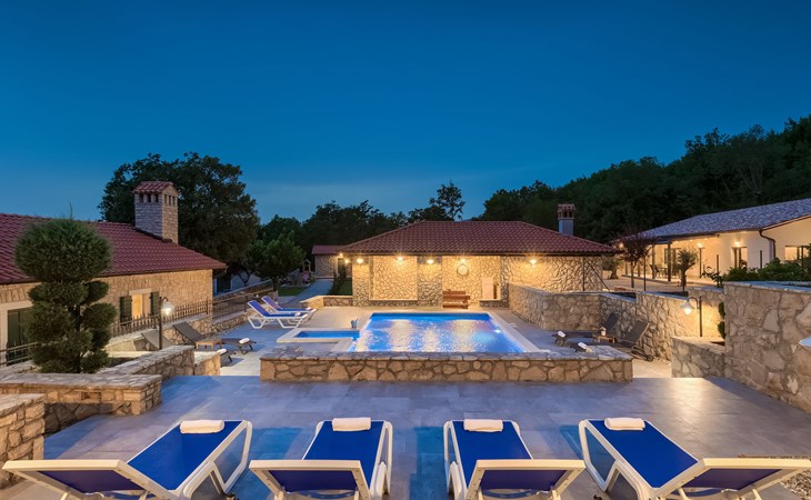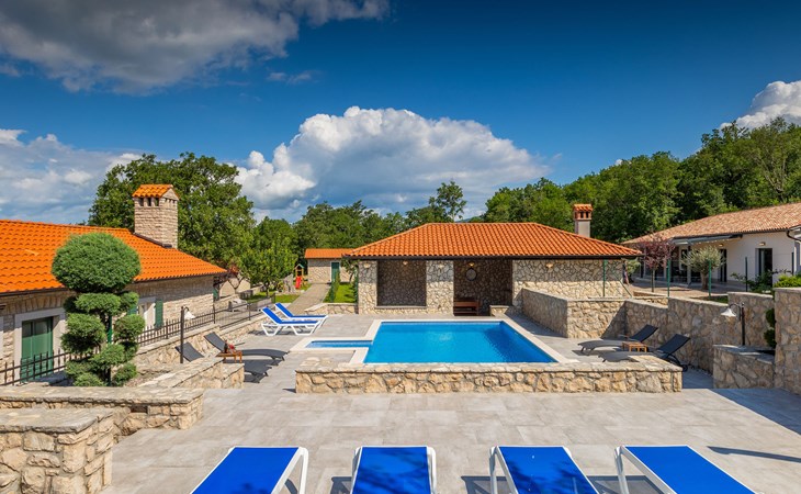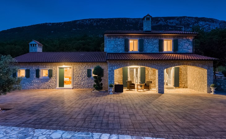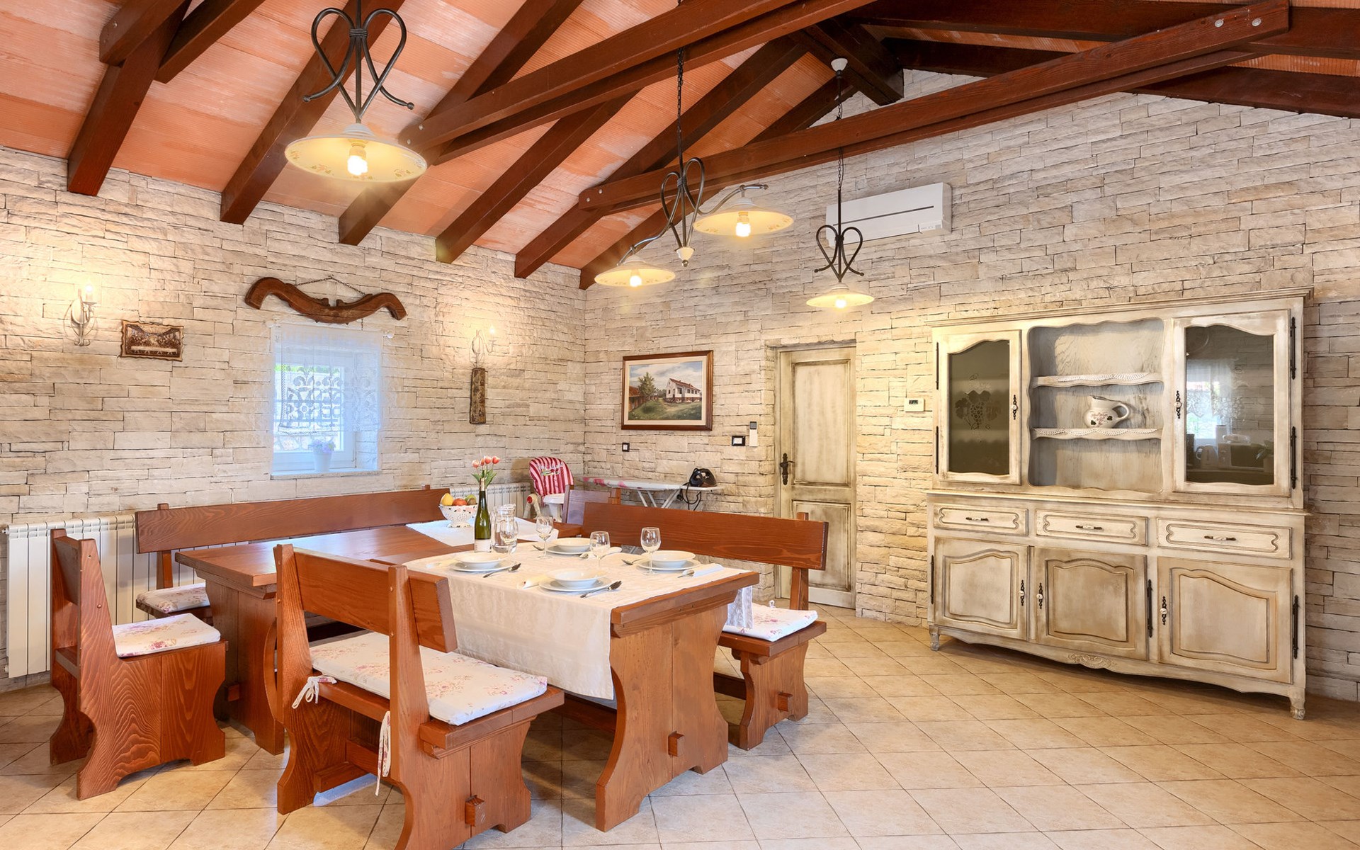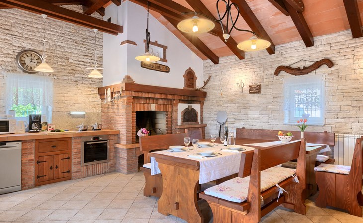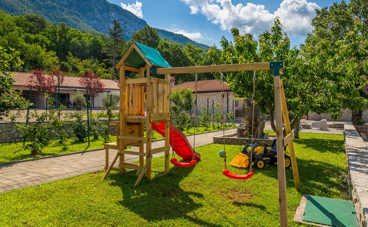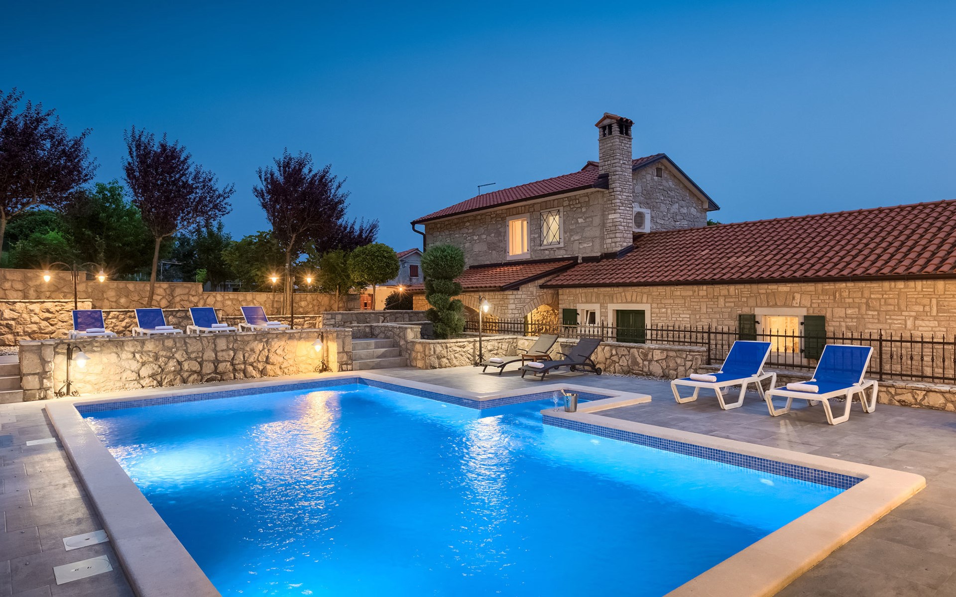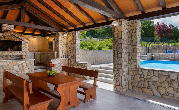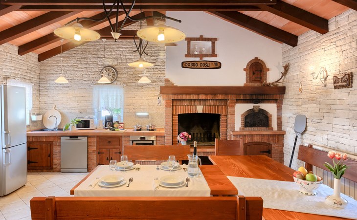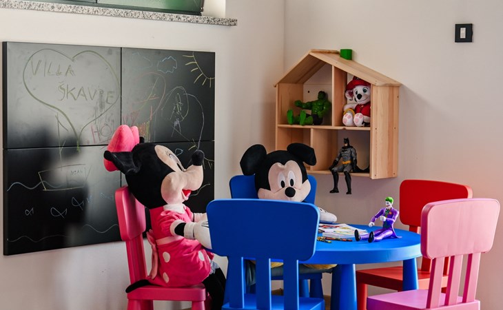 Mooi eengezinswoning "Villa Škavre", van 2 verdiepingen. 16 km van het centrum van Labin, 21 km van het centrum van Rabac, rustige, zonnige ligging, 11 km van zee, te midden van groen. Voor alleengebruik: terrein 3.500 m2, tuin met gazon en bomen, openluchtzwembad hoekig (10 x 5 m, 140 cm diepte, seizoensgebonden beschikbaarheid: 15.Mei. - 15.Okt.) met trap. WC bij het zwembad, buitendouche, terras (65 m2), tuinmeubelen, barbecue, kinderspeelplaats (glijbaan, schommel). In het huis: internetaansluiting, tafeltennis, biljart, speelkamer, tafelvoetbal, trampoline, centrale verwarming, wasmachine. Parkeerplaats (voor 10 auto's) bij het huis op het terrein. Winkel 8 km, supermarkt 14 km, restaurant 8 km, bushalte 8.2 km, kiezelstrand 11 km, rotsstrand 11 km, betonnen strand 11 km. Zeilschool 22 km, tennis 17 km, wandelroutes 600 m vanaf het huis, fietspad 650 m. De eigenaar accepteert geen jeugdgroepen. Vliegveld 46 km van het huis.