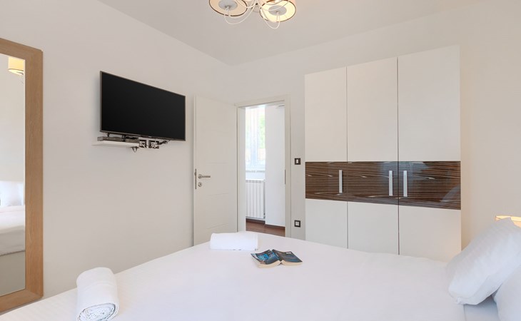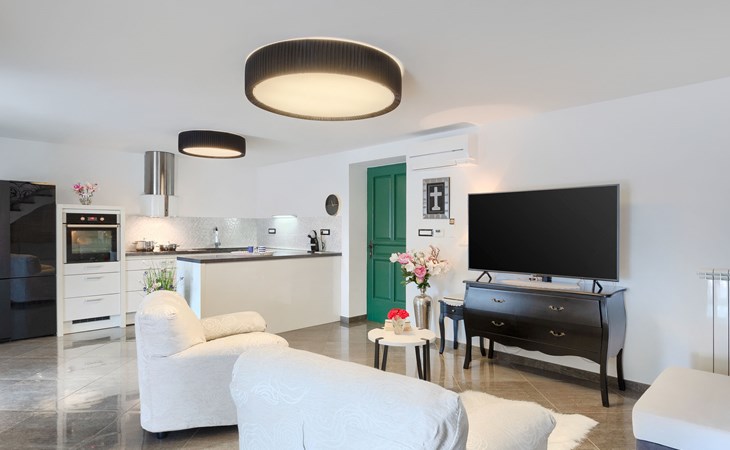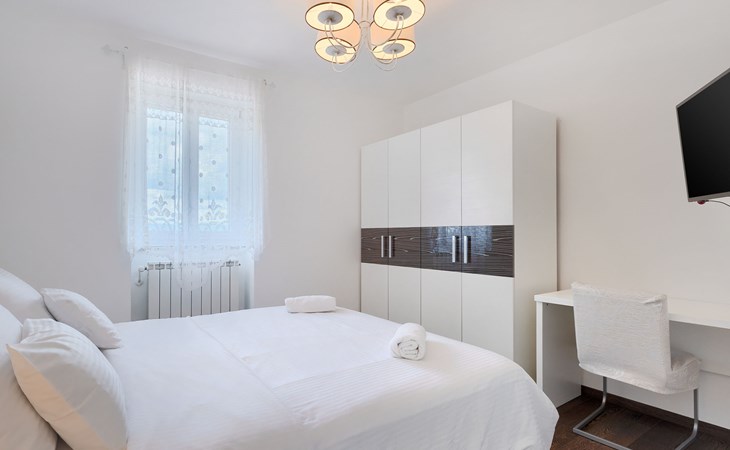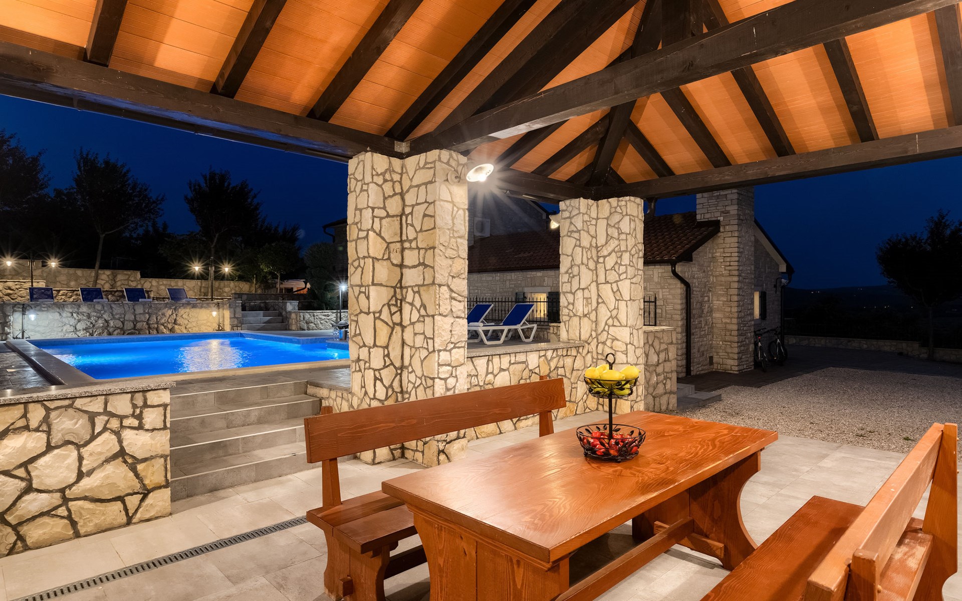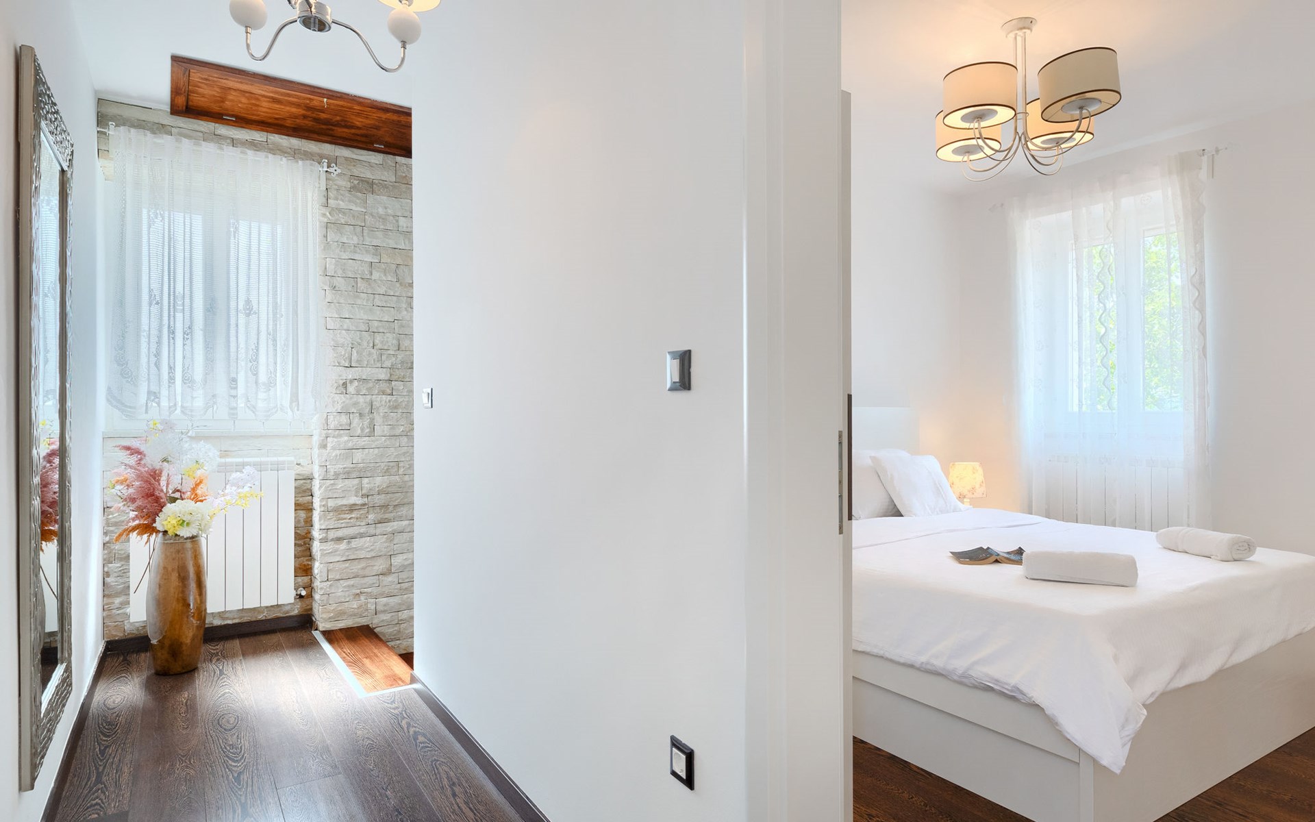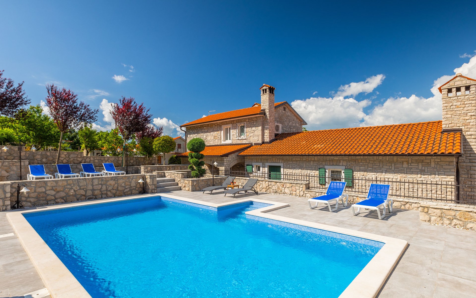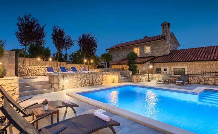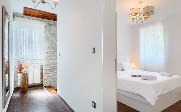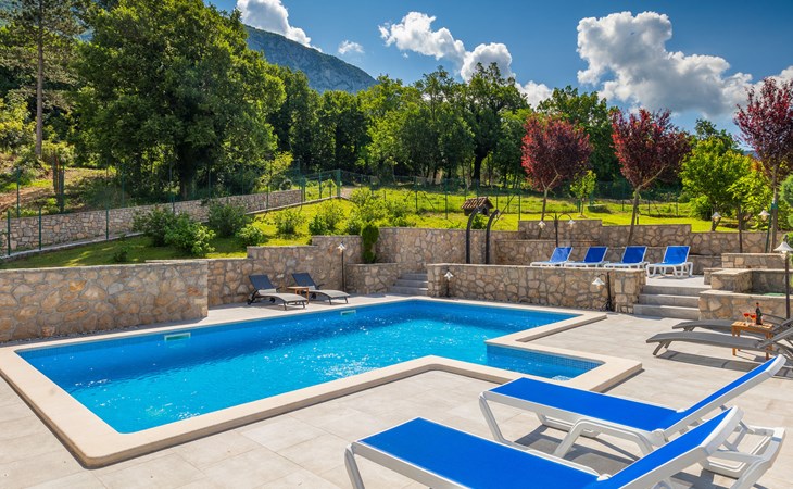 Mooi eengezinswoning "Villa Škavre", van 2 verdiepingen. 16 km van het centrum van Labin, 21 km van het centrum van Rabac, rustige, zonnige ligging, 11 km van zee, te midden van groen. Voor alleengebruik: terrein 3.500 m2, tuin met gazon en bomen, openluchtzwembad hoekig (10 x 5 m, 140 cm diepte, seizoensgebonden beschikbaarheid: 15.Mei. - 15.Okt.) met trap. WC bij het zwembad, buitendouche, terras (65 m2), tuinmeubelen, barbecue, kinderspeelplaats (glijbaan, schommel). In het huis: internetaansluiting, tafeltennis, biljart, speelkamer, tafelvoetbal, trampoline, centrale verwarming, wasmachine. Parkeerplaats (voor 10 auto's) bij het huis op het terrein. Winkel 8 km, supermarkt 14 km, restaurant 8 km, bushalte 8.2 km, kiezelstrand 11 km, rotsstrand 11 km, betonnen strand 11 km. Zeilschool 22 km, tennis 17 km, wandelroutes 600 m vanaf het huis, fietspad 650 m. De eigenaar accepteert geen jeugdgroepen. Vliegveld 46 km van het huis.