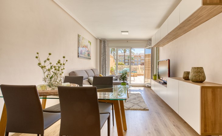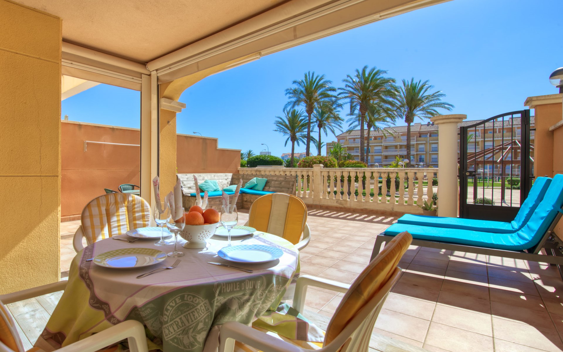 Zeer mooi, gezellig, zeer comfortabel flatgebouw "Aquamarine". 5 km van het centrum van Dénia, in het district Les Marines, rustige, zonnige ligging, 450 m van zee, van het strand. Voor medegebruik: groot, mooie, verzorgde tuin (omheind) met gazon en planten, openluchtzwembad (26 x 10 m, 80 - 210 cm diepte, seizoensgebonden beschikbaarheid: 01.Jan. - 31.Dec.). Kinderzwembad, glijbaan, buitendouche, kinderspeelplaats. Voor alleengebruik: terras (35 m2), tuinmeubelen. In het huis: lift, centrale verwarming, air-conditioning. Eigen garage. Winkel 250 m, supermarkt 450 m, restaurant, café 80 m, bushalte 50 m, zandstrand "Els Molins" 450 m. Jachthaven 5 km, golfterrein (18 holes) 2 km, surfschool, zeilschool 450 m.