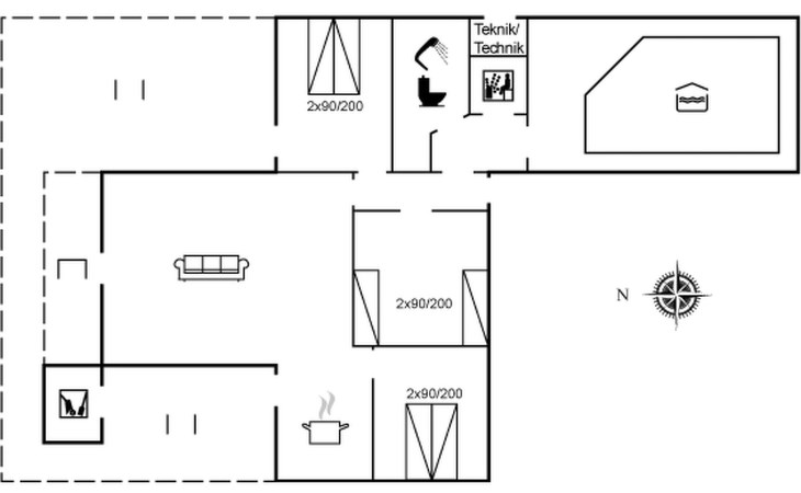 Eengezinswoning, bouwjaar 1995. 600 m van zee. Voor alleengebruik: wild terrein 1.200 m2, overdekt zwembad (3 x 5 m, 1.7.5 m2, 150 - 150 cm diepte). Terras (40 m2), kinderspeelplaats (schommel). In het huis: sauna, wasmachine, droger. Parkeerplaats bij het huis. Levensmiddelenwinkel 900 m.