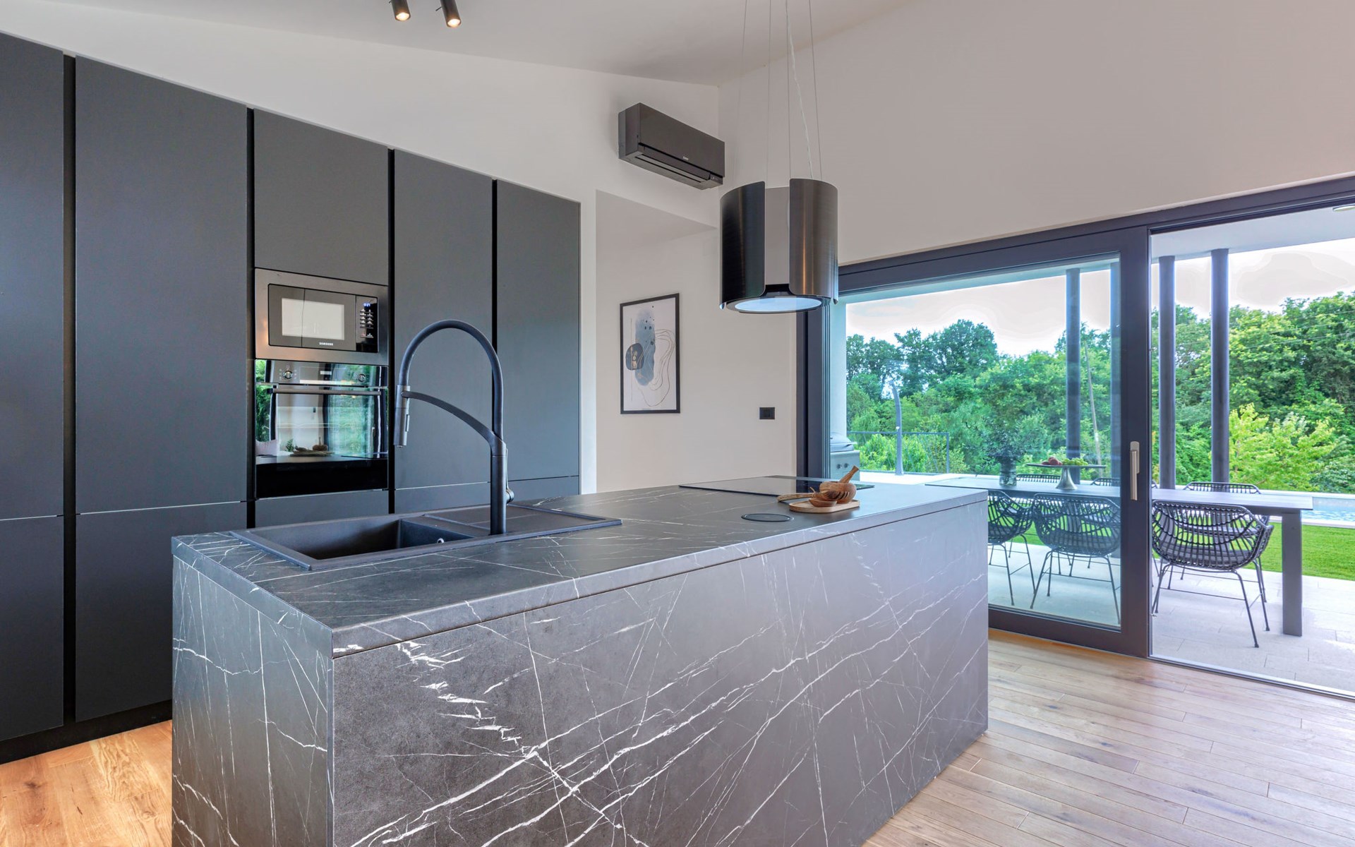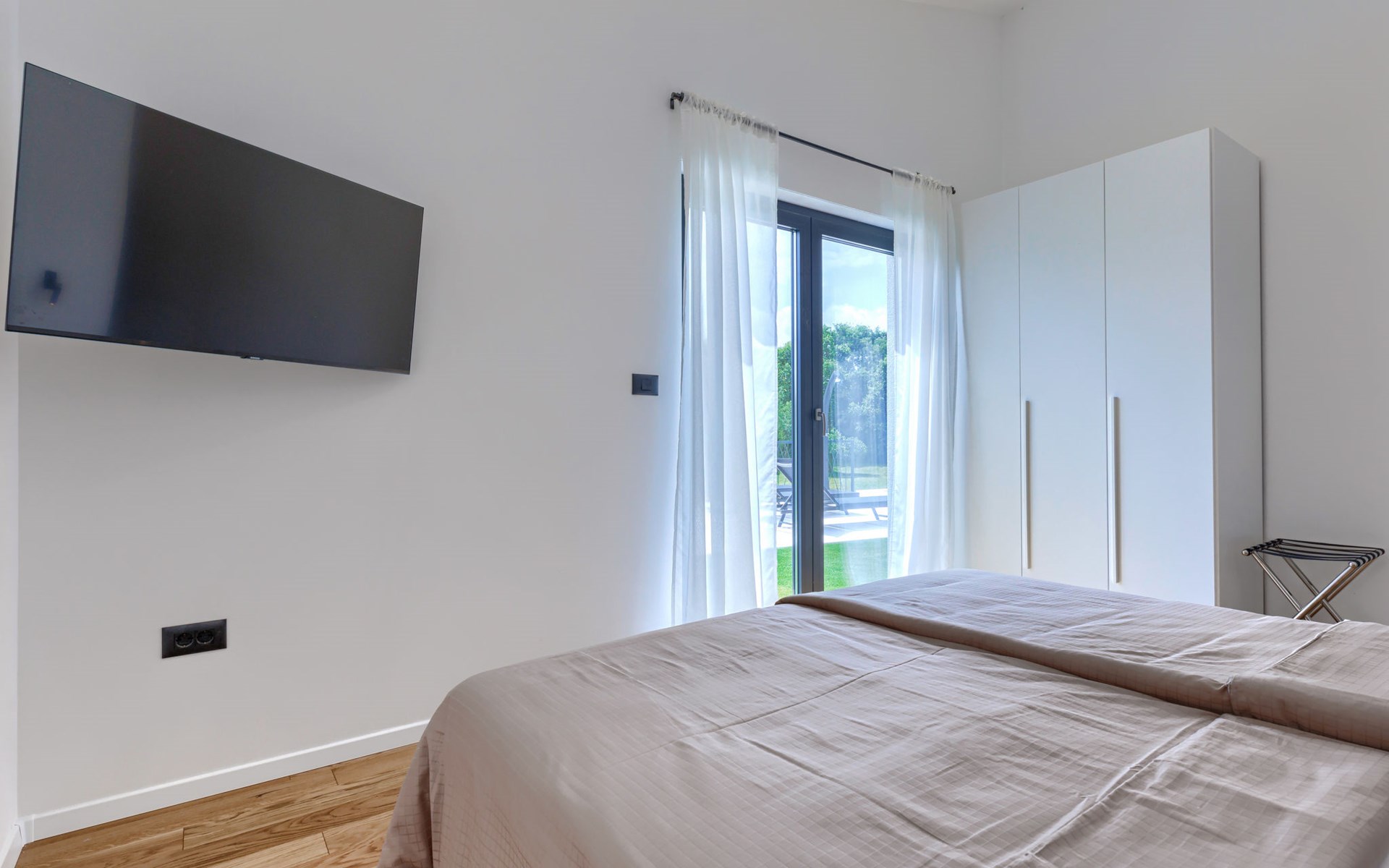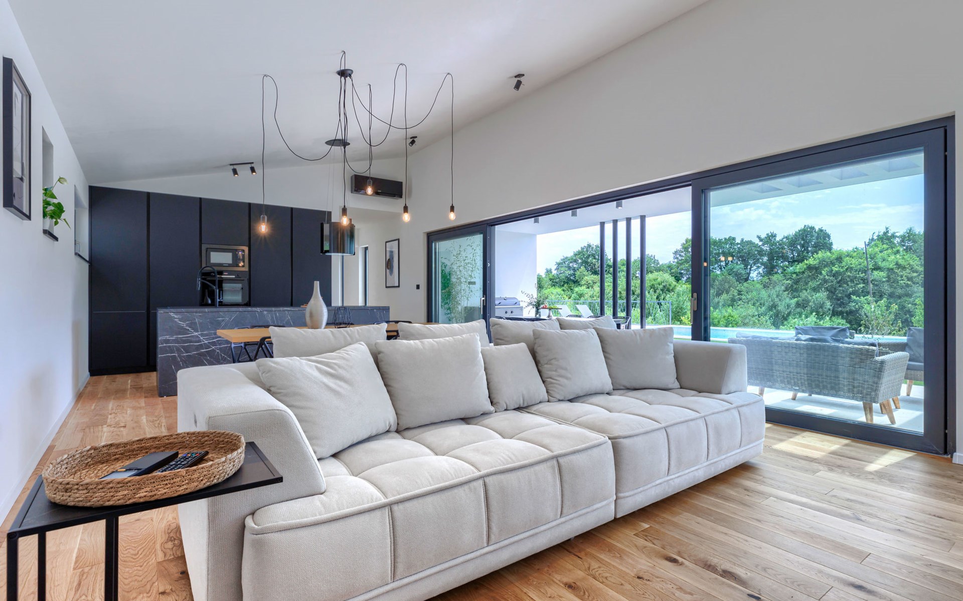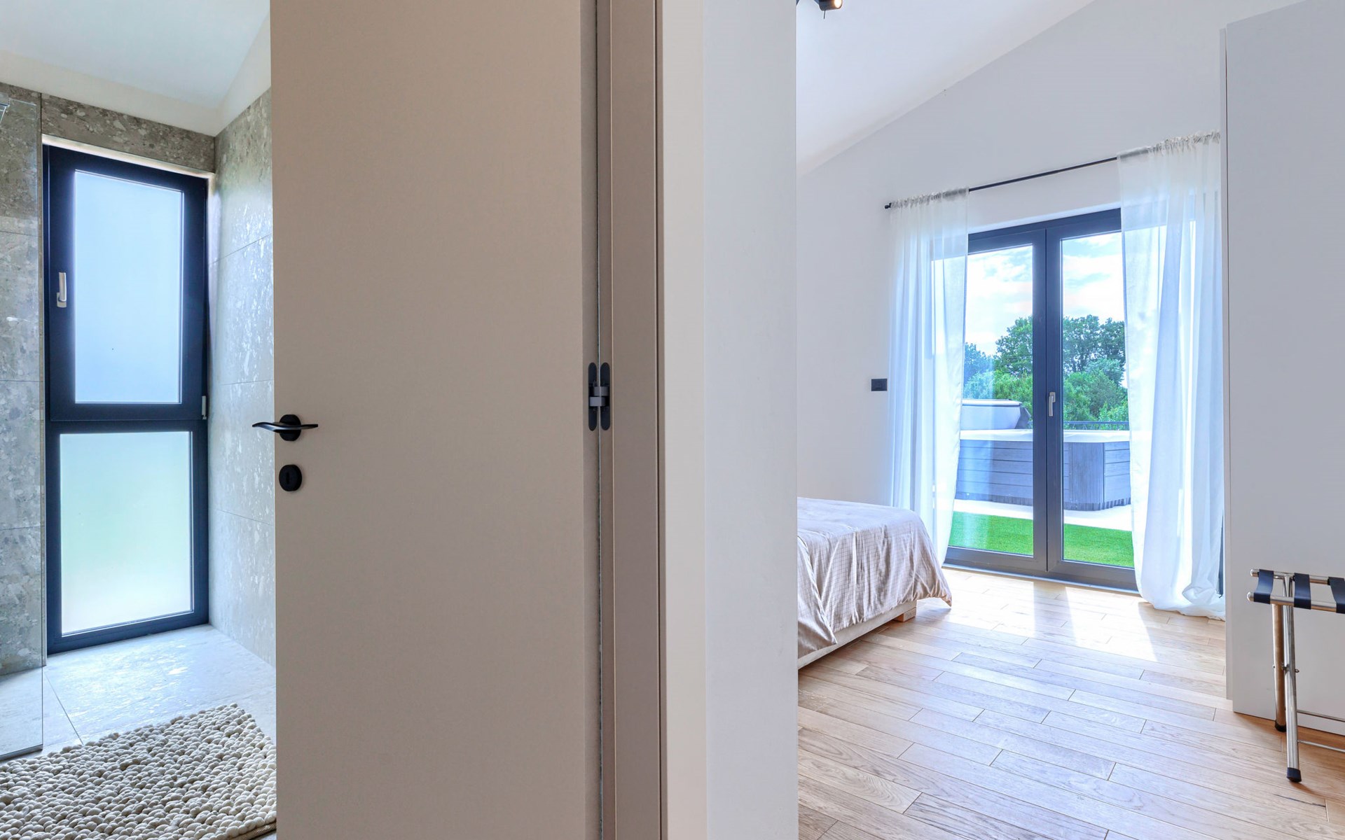 Marčana 11 km van Pula: Moderne, mooi eengezinswoning "Villa Valla". In het gehucht Veliki Vareški, 5 km van het centrum van Marčana, 18 km van het centrum van Pula, 4.5 km van zee, 4.5 km van het strand, te midden van groen. Voor alleengebruik: terrein 1.200 m2 (omheind), gazon 500 m2, openluchtzwembad hoekig (10 x 4 m, 40 m2, 140 cm diepte, seizoensgebonden beschikbaarheid: 04.Mei. - 19.Okt.) met trap en zout-elektrolyse. Buitendouche, hot tub, tafeltennis, volleybal, badminton, terras (6 m2), tuinmeubelen, barbecue (glijbaan, schommel). In het huis: internetaansluiting, air-conditioning, alarmsysteem, wasmachine. Parkeerplaats (voor 3 auto's) op het terrein. Winkel 3 km, restaurant 2.5 km, bushalte 5.1 km, kiezelstrand 4.5 km, rotsstrand 4.5 km.