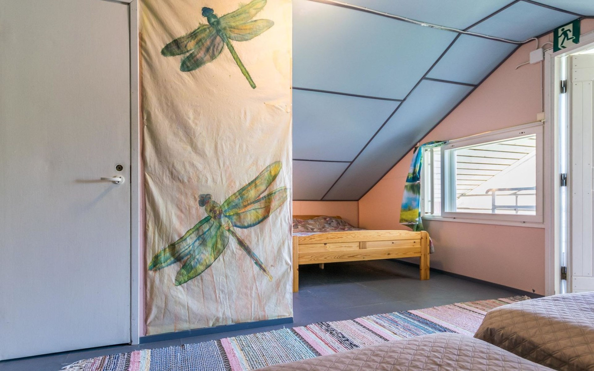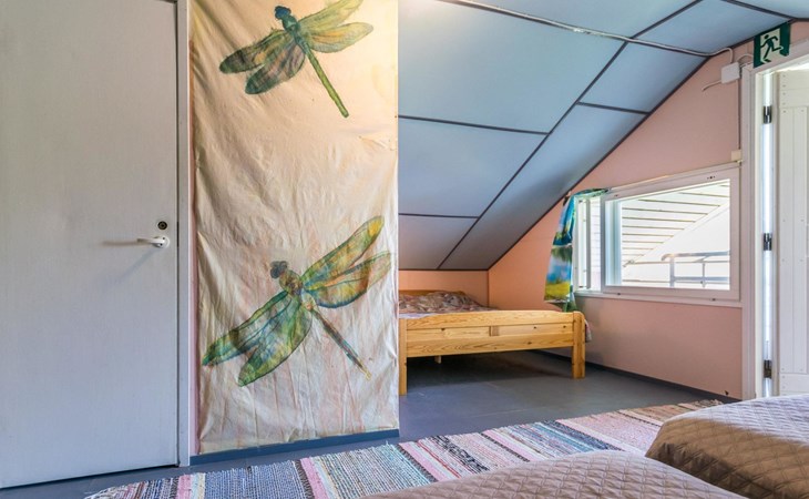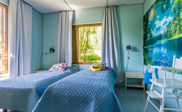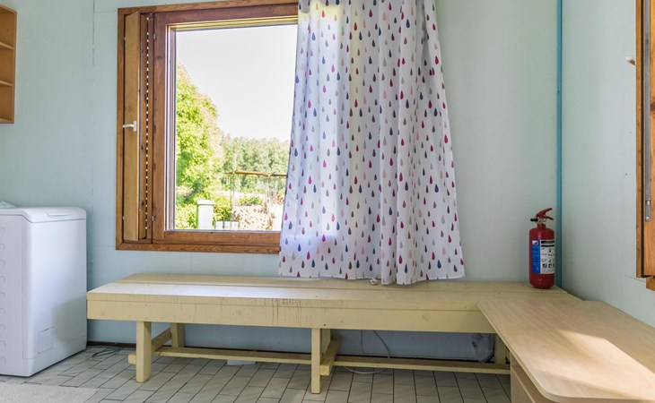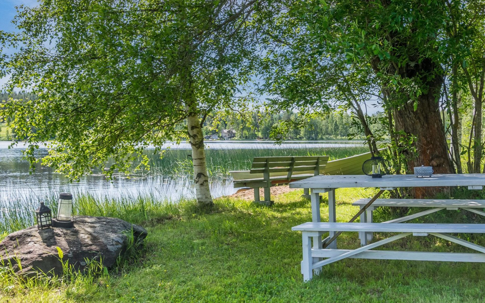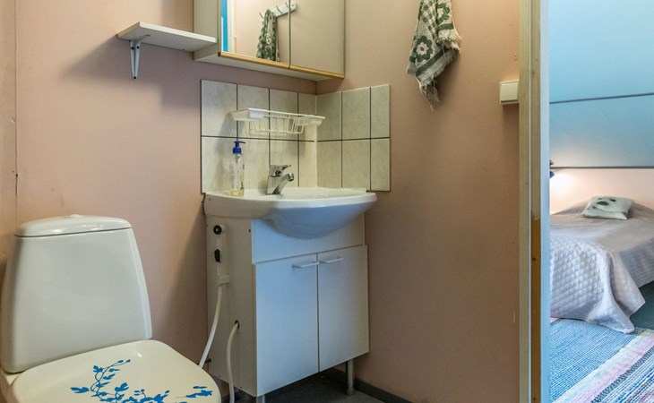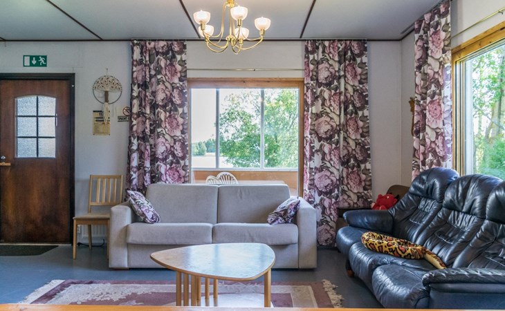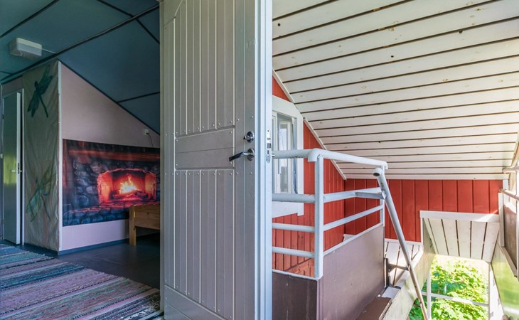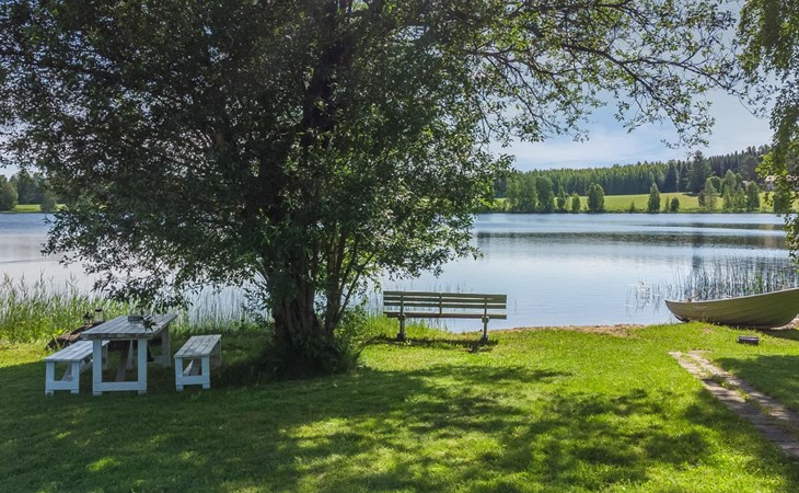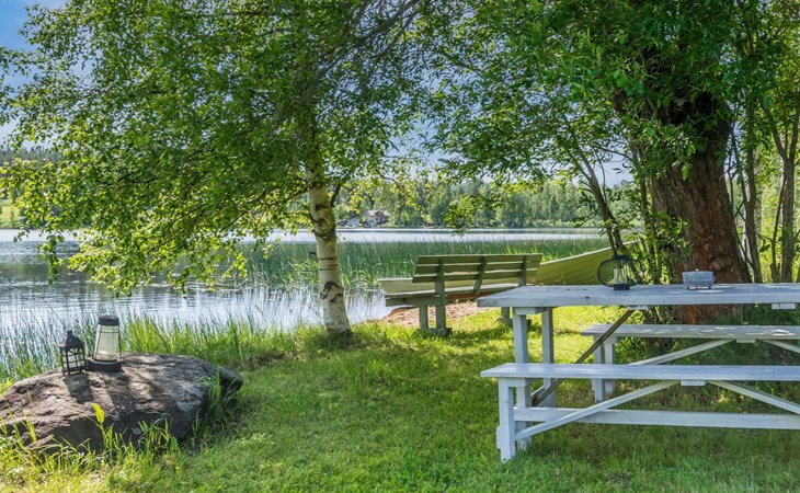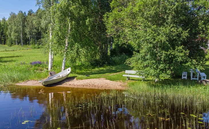 77 km northwest of Jyväskylä, Lake Iso-Löytänä 30 m, shallow sandy beach, no pier, rowing boat.