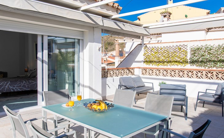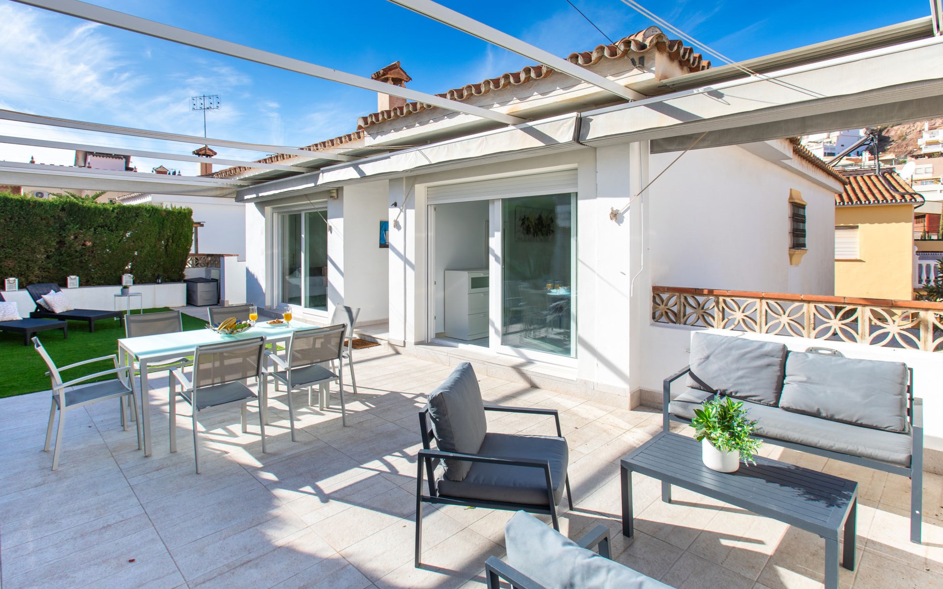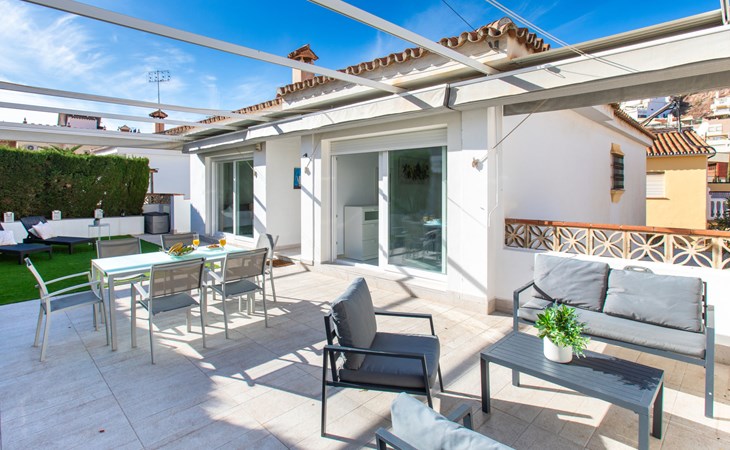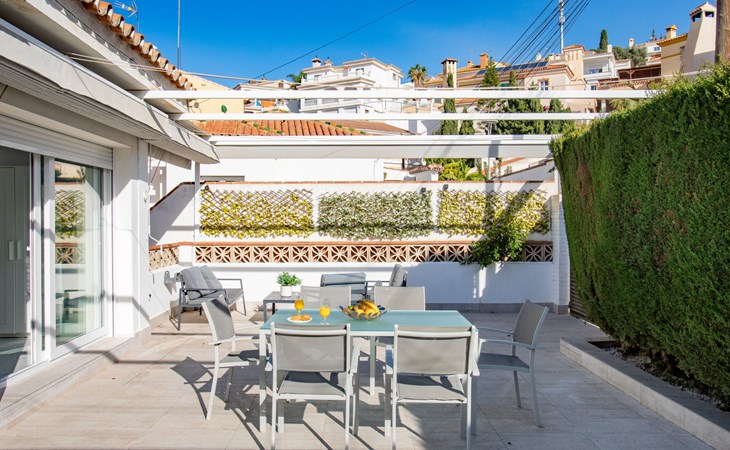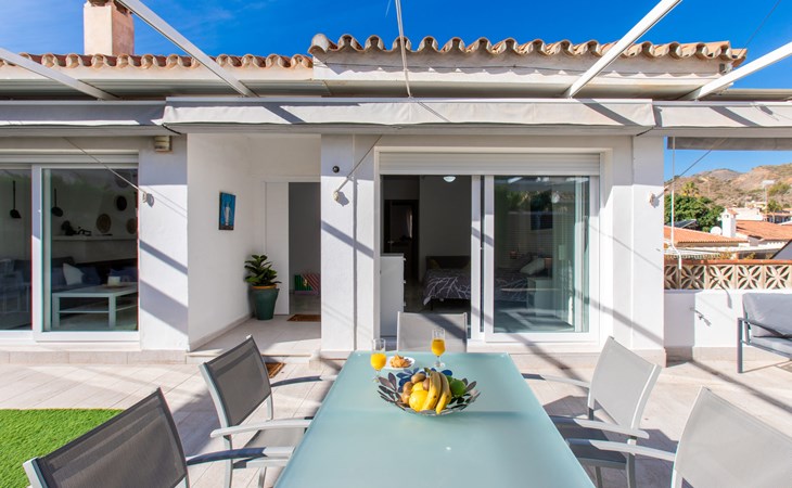 Rincón de la Victoria: Gezellige, eenvoudige eengezinswoning "Casa Sofia", van 2 verdiepingen. In het district Rincón de la Victoria, rustige ligging, 950 m van zee, op het oosten. Voor alleengebruik: patio, tuinmeubelen, barbecue. In het huis: Internet (WiFi), wasmachine. Winkel 900 m, supermarkt 700 m, winkelcentrum 2 km, restaurant, bakkerij, internet cafe 900 m, bushalte 600 m. Golfterrein (18 holes) 2 km. De eigenaar accepteert geen jeugdgroepen.