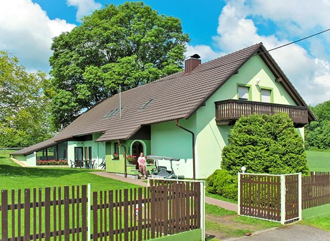 Polžov/Mokrý Lom 10 km van Trhové Sviny: Landhuis. 5 km van het meer. Voor alleengebruik: terrein 900 m2 (omheind) met gazon 1.000 m2, openluchtzwembad (4 x 7 m, 150 cm diepte, seizoensgebonden beschikbaarheid: 01.Mei. - 30.Sep.). Tennisbaan, tafeltennis, basketbal, terras, tuinmeubelen, grill. In het huis: bergruimte voor fietsen, wasmachine. Beschikbaar: fietsen (3). Parkeerplaats (voor 2 auto's) op het terrein, eigen garage. Winkel 5 km, supermarkt 9 km, restaurant 4 km, bushalte "Mokrý Lom" 1.9 km, openluchtzwembad 20 km, overdekt zwembad 20 km, meer (zwemmen) "Římov" 5 km. Golfterrein (18 holes) 25 km, wandelroutes, vanaf het huis, fietspad 20 m. Attracties in de buurt: Zřícenina hradu Pořešín, Buškův hamr 15 km, České Budějovice 20 km, Středověká tvrz Žumberk, Český Krumlov 22 km, Třeboň 34 km, Lipenská přehrada 40 km, Linz (AT) 85 km.