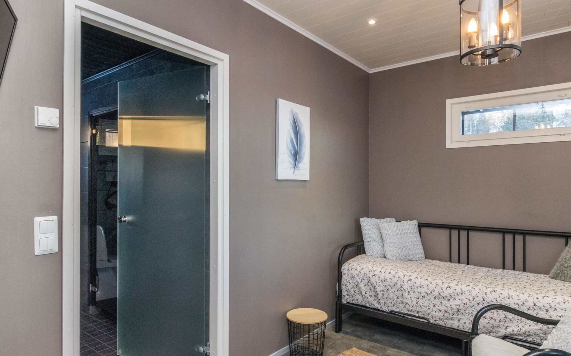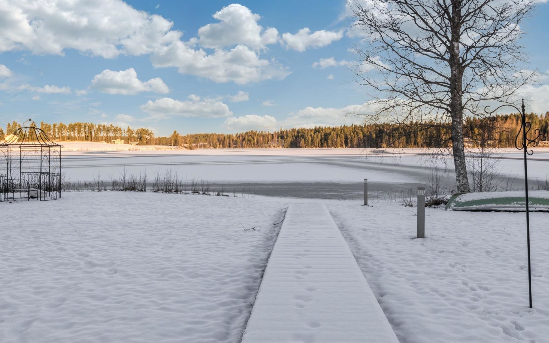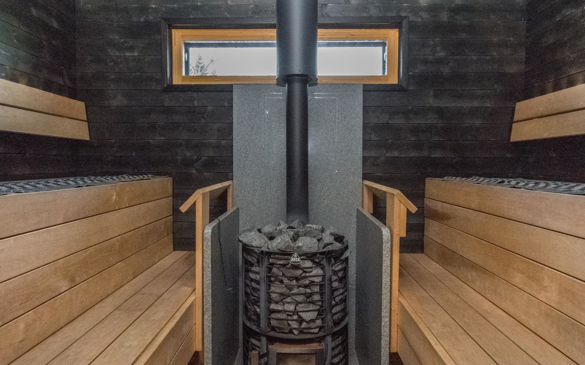 The wood-heated sauna with two lofts provides gentle heat, and the lake is just steps away via a clean, well-maintained wooden path. The hard, gently sloping sandy beach with a dock is only 20 meters from the villa, perfect for swimming.