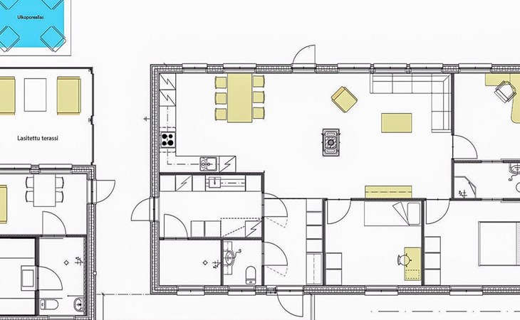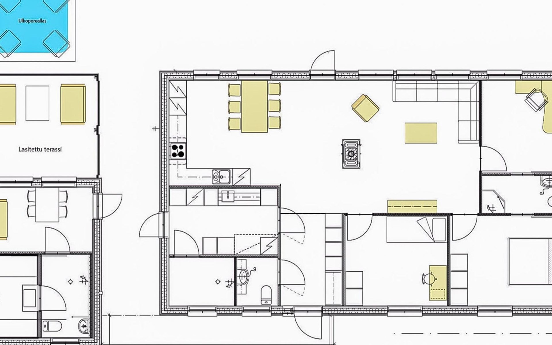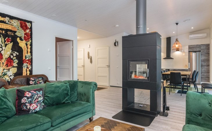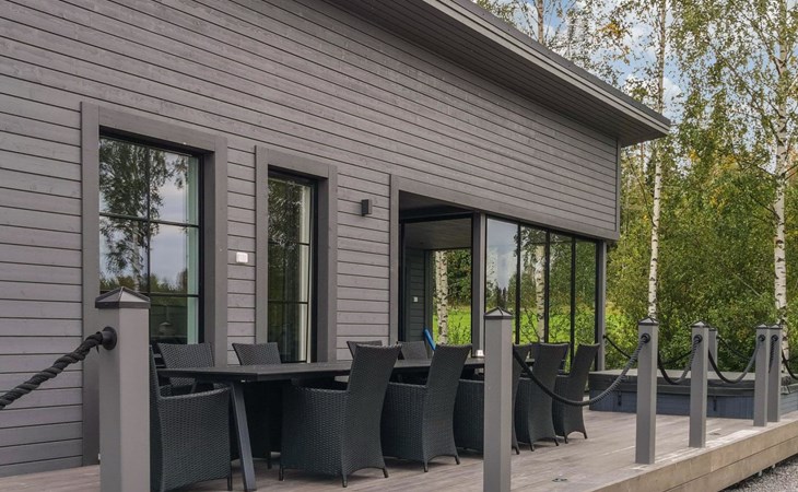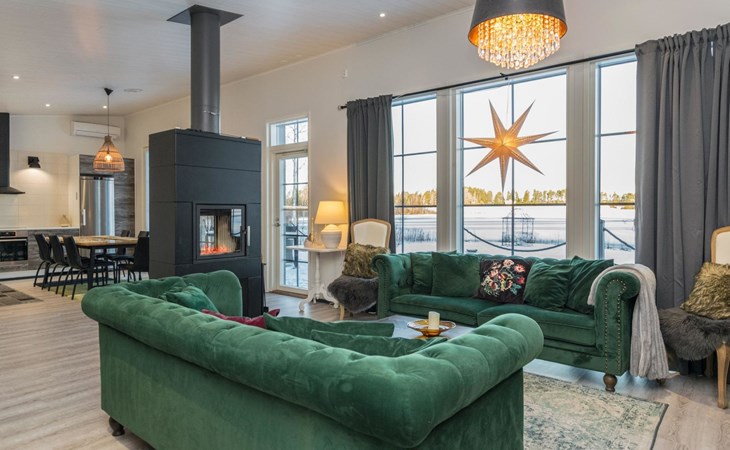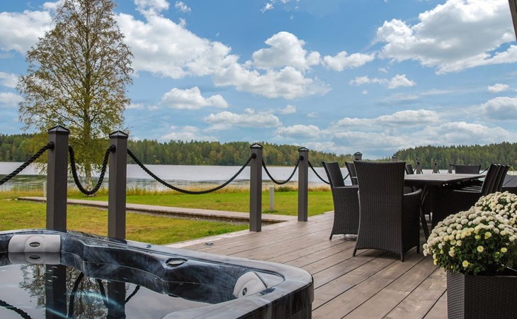 You can also arrange high-quality catering and activity services at the villa – ask for more details. A similar sister villa, Villa Karhentimantti (17283), is next door. A storage building between the villas provides privacy. By booking both villas, you can accommodate a group of up to 18 people! Note: This villa is not rented to youth groups (under 25 years old).