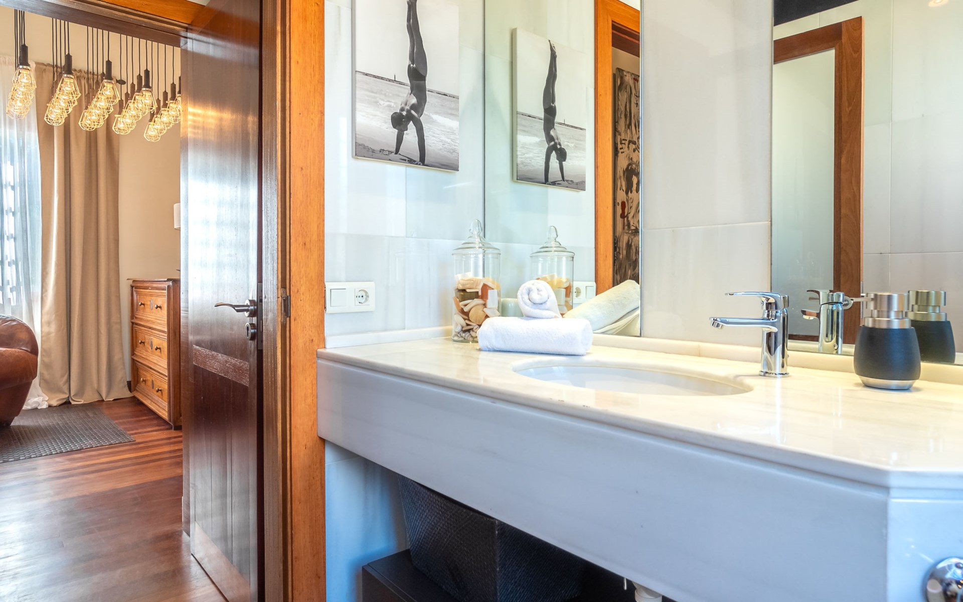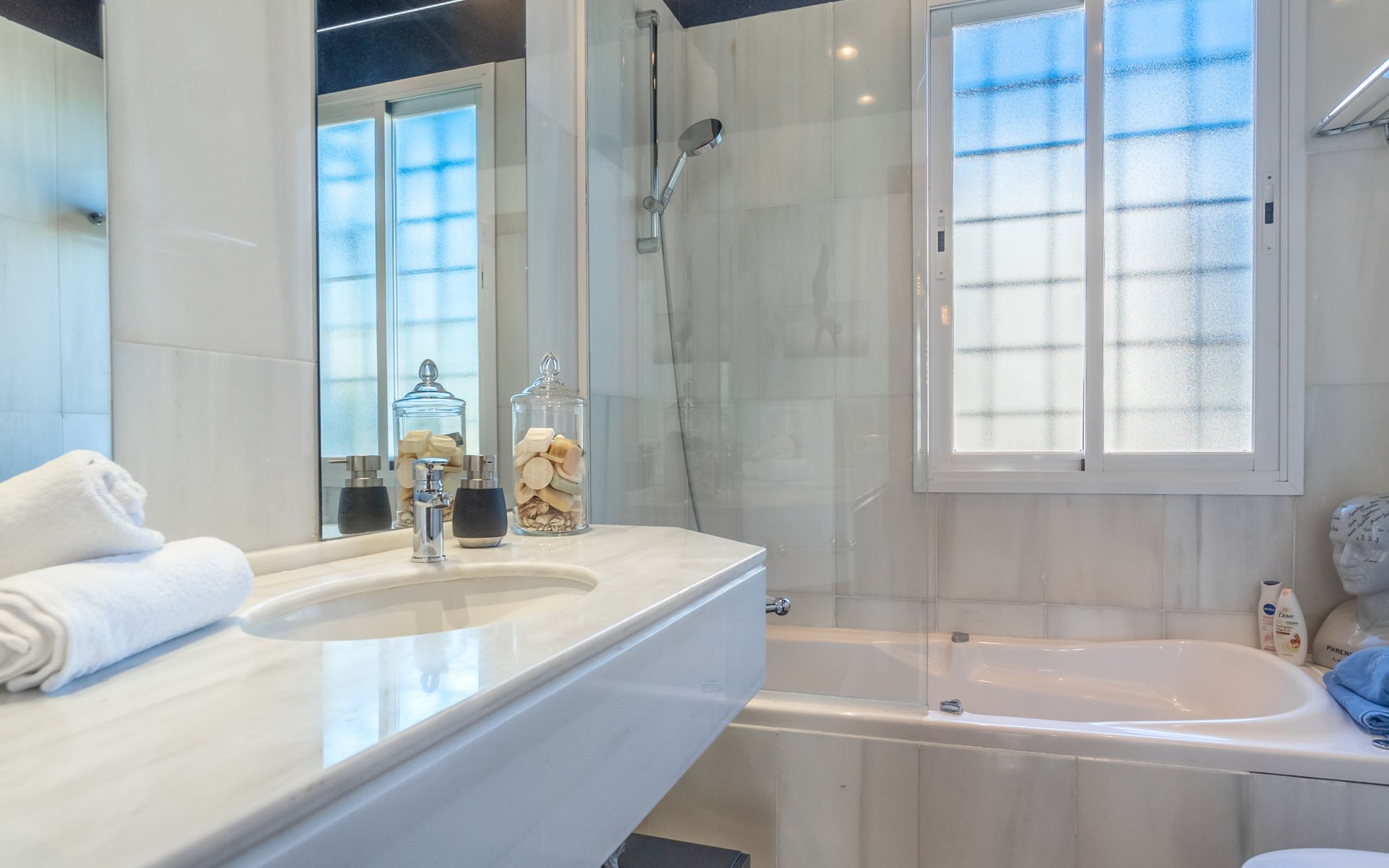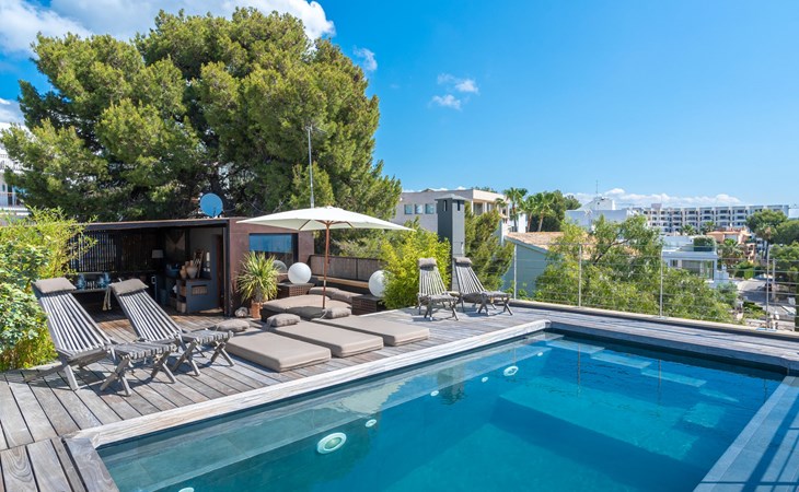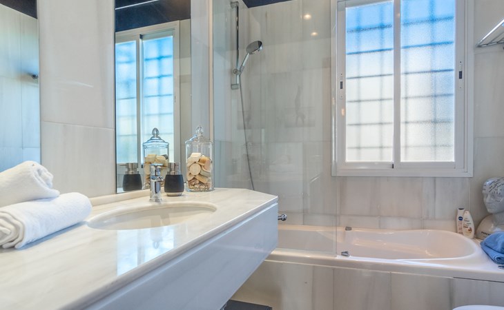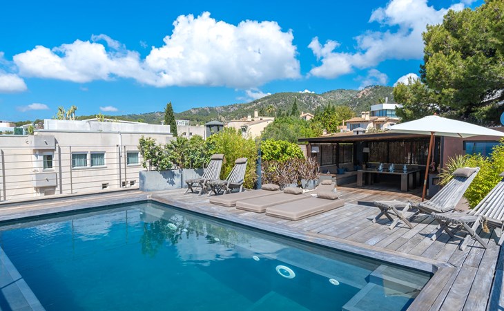 Zeer groot, moderne villa "Vistamar", van 3 verdiepingen, vrijstaand. In de wijk Sant Agustí - Cala Major, buiten de plaats, 7 km van het centrum van Palma, rustige, zonnige ligging, 1.2 km van zee, 1.2 km van het strand. Voor alleengebruik: tuin op verschillende niveaus, openluchtzwembad hoekig, verwarmd (6 x 3 m, 50 - 150 cm diepte, seizoensgebonden beschikbaarheid: 01.Jan. - 31.Dec.). Buitendouche, poolhouse met koelkast, prieel, prieel, terras, tuinmeubelen, onderhoud zwembad door de eigenaar/tuinman. In het huis: centrale verwarming, air-conditioning, alarmsysteem. Overdekte parkeerplaats (voor 2 auto's) bij het huis op het terrein. Supermarkt, winkelcentrum 4.6 km, restaurant 1 km, bar 700 m, fietsverhuur 1.3 km, biertuin 700 m, centrum te voet bereikbaar in 12 minuten, bushalte "1332-Noruega Bus Stop" 50 m, treinstation "Plaza España, Palma" 7.1 km, veerboot "Puerto de Palma" 5 km, zandstrand "Cala Major" 1.1 km, rotsstrand 950 m. Jachthaven 1 km, jachthaven 1 km, golfterrein (18 holes) 2.7 km. Attracties in de buurt: Centro Palma Ciudad 7 km, Portals Nous 5.1 km, Port Andratx 23.6 km, Playa Es Trenc 51 km, Valldemossa 21 km, Santuario de Lluc 50.6 km. Wandelgebied Serra de Tramuntana, Serra de Na Burguesa 7 km. Auto noodzakelijk. Het objekt is geschikt voor 8 volwassenen. De eigenaar accepteert geen jeugdgroepen. Vliegveld 16.1 km van het huis. De omgeving is gevoelig voor geluidsoverlast. Gelieve geen lawaai te maken en de rust te bewaren.