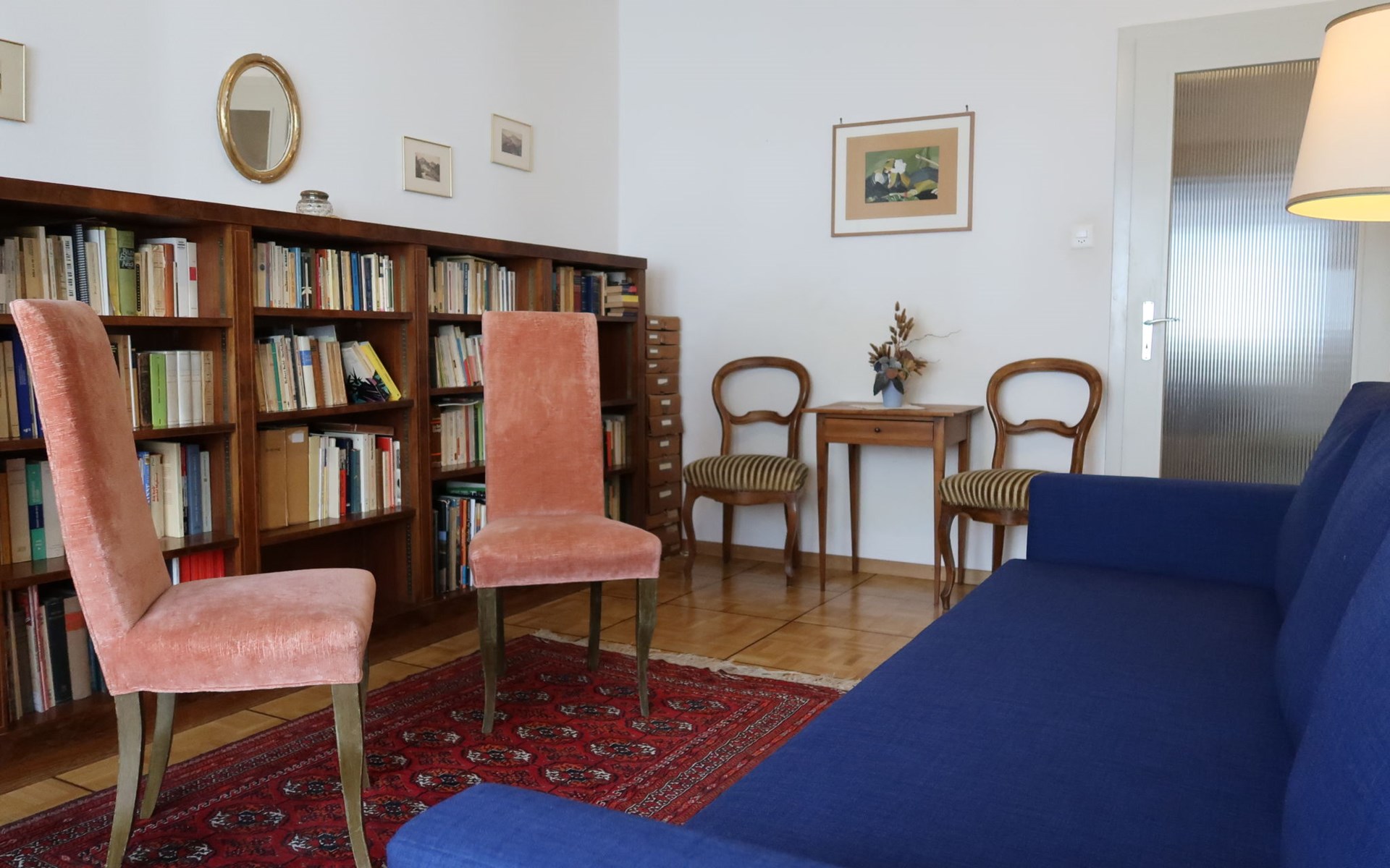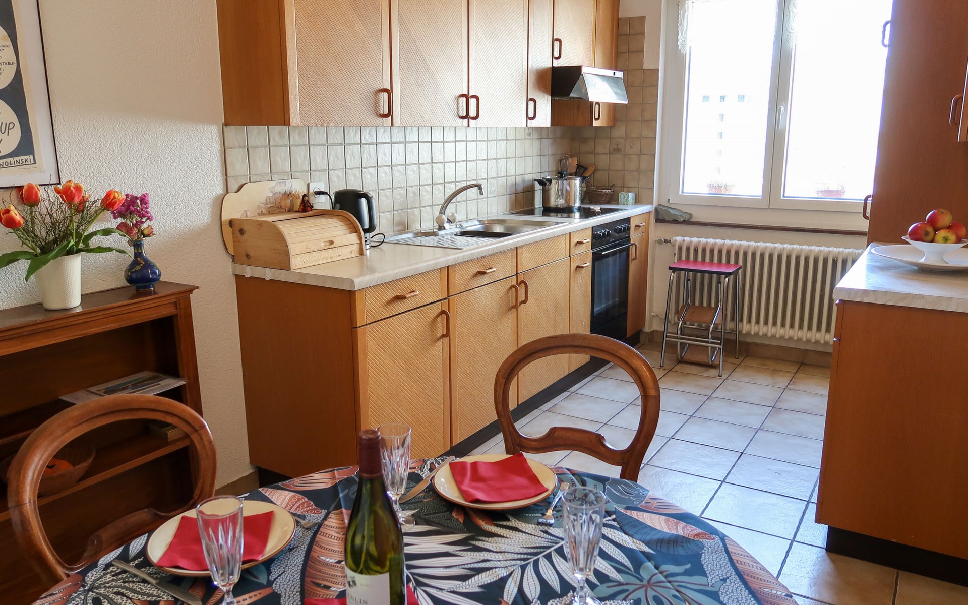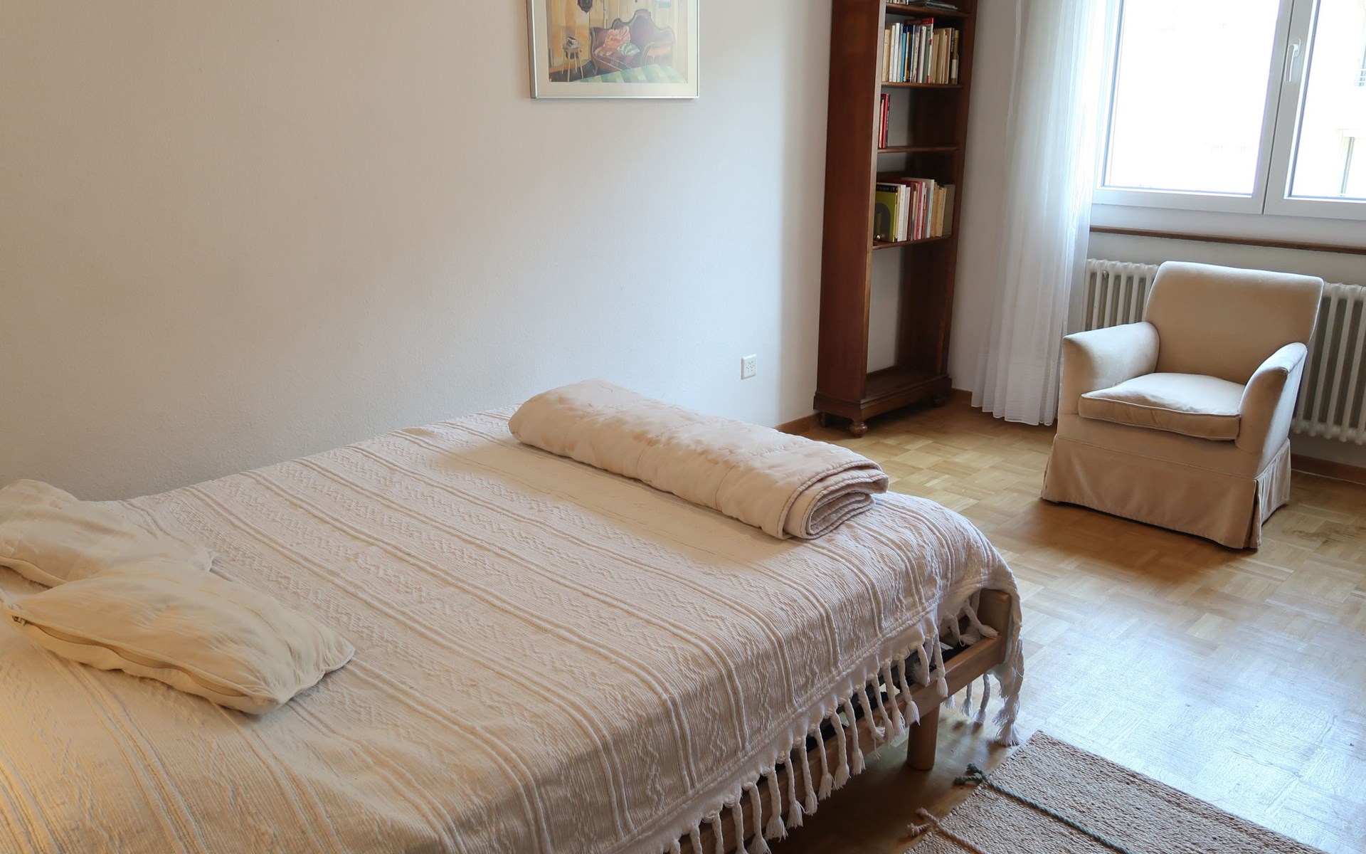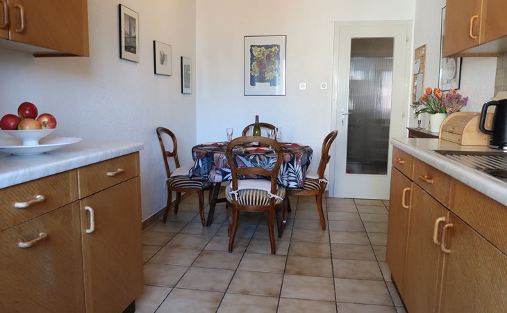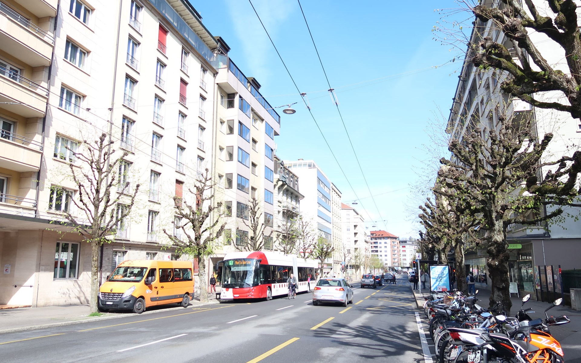 Appartementencomplex "Pérolles", van 7 verdiepingen. In de plaats, centrale ligging. In het huis: centrale verwarming. Openbare parkeerplaatsen in de straat extra.