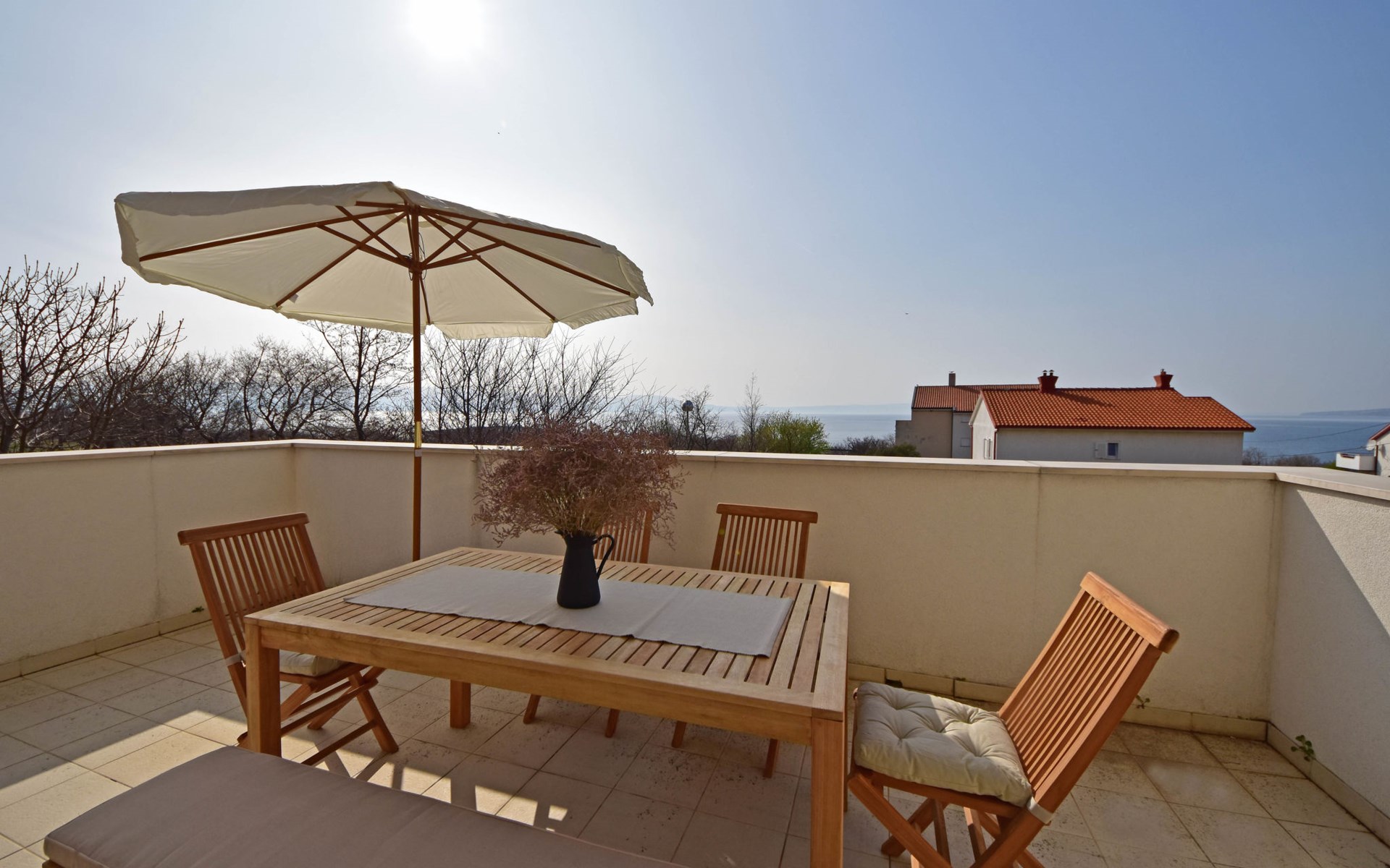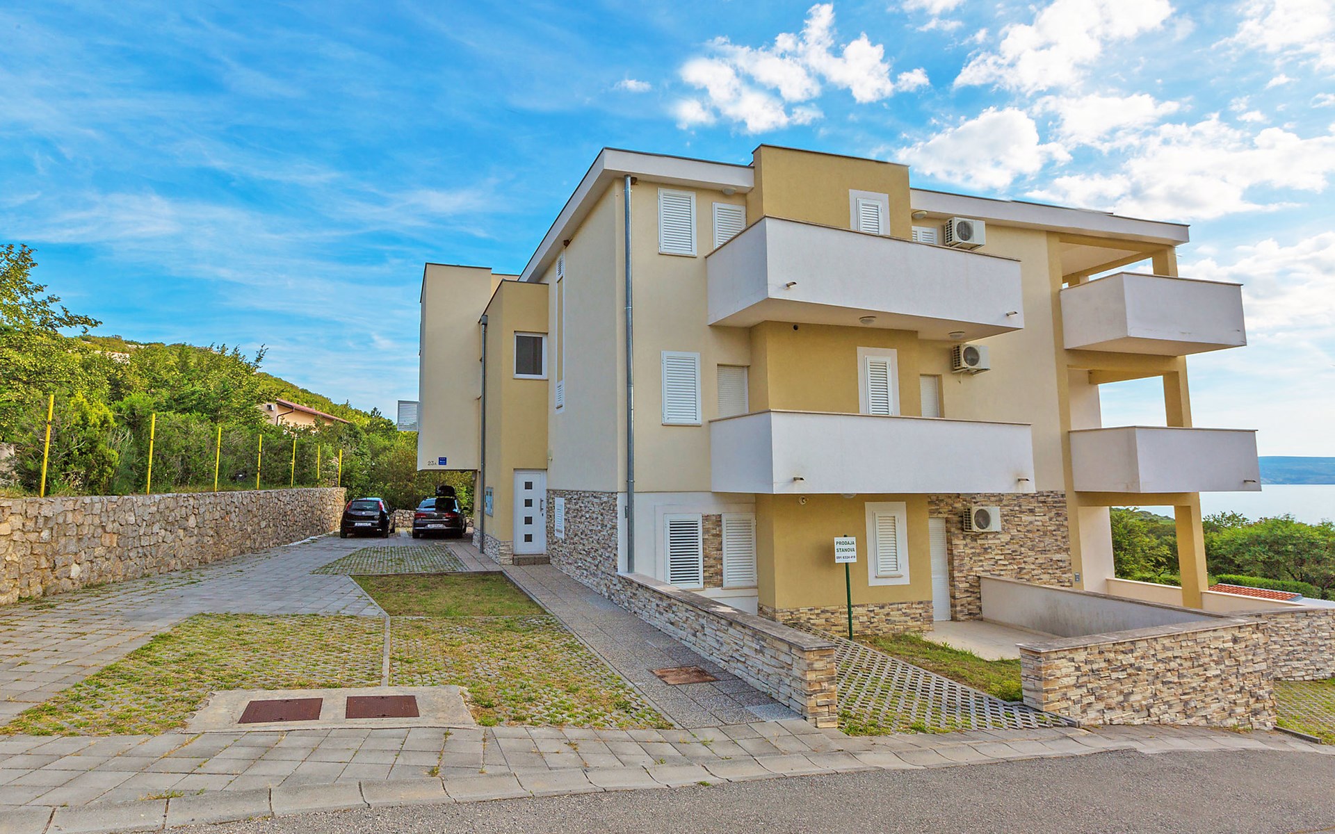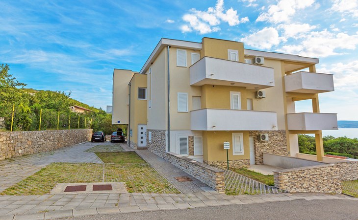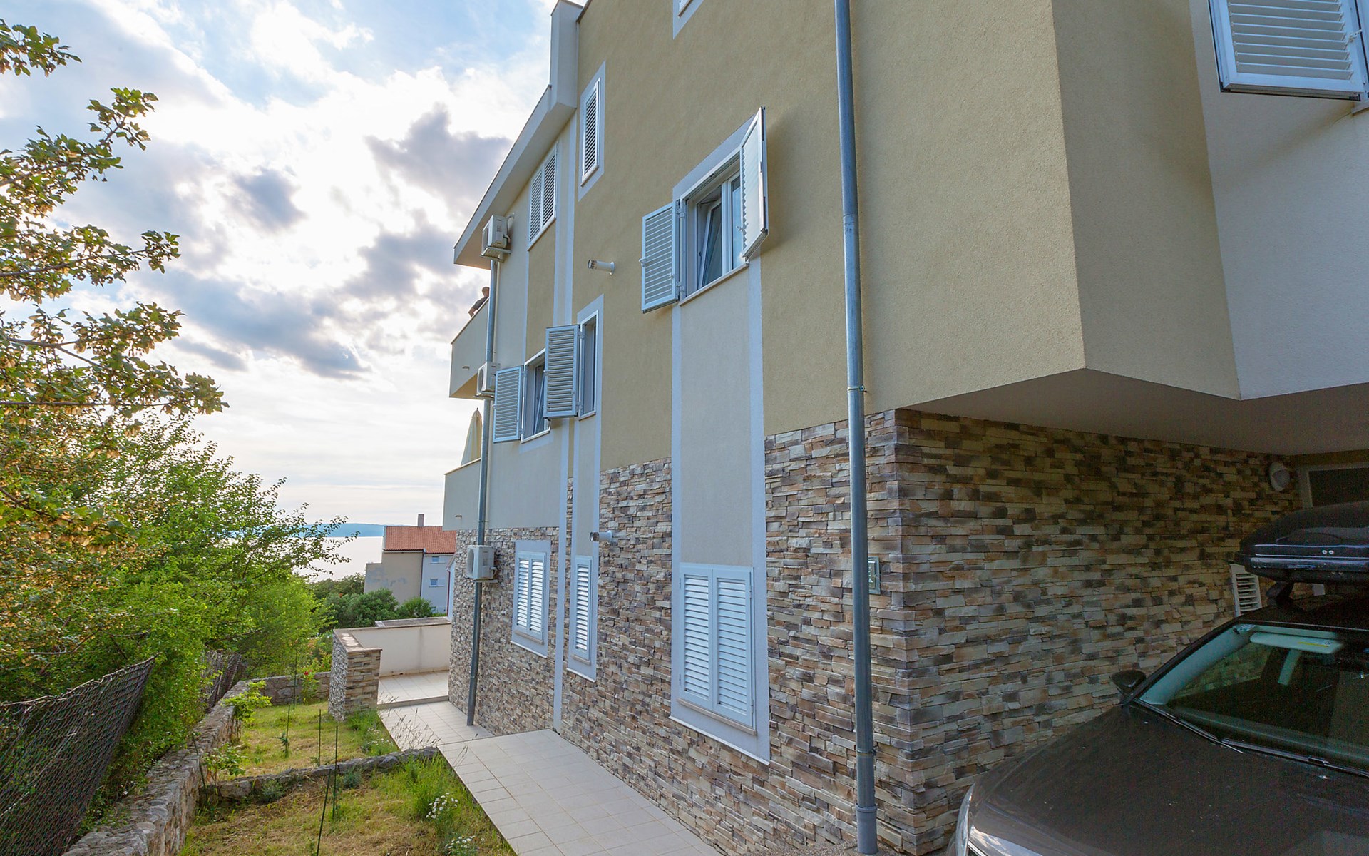 Klenovica 8 km van Novi Vinodolski: Appartementencomplex "Cvit". 600 m van het centrum van Klenovica, zonnige, verhoogde ligging, 100 m van zee, 100 m van het strand. Voor medegebruik: terrein 700 m2. In het huis: internetaansluiting. Parkeerplaats bij het huis op het terrein. Winkel 100 m, restaurant 80 m, bushalte 1.1 km, kiezelstrand 100 m.