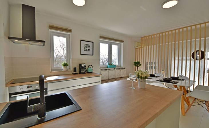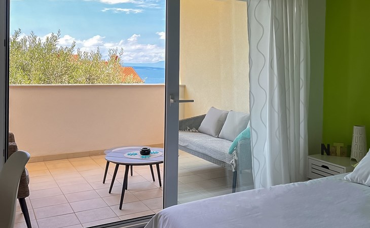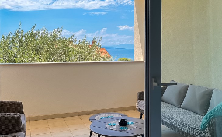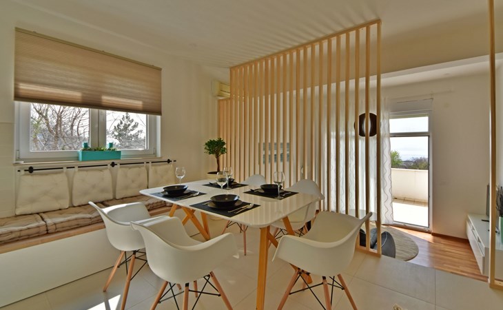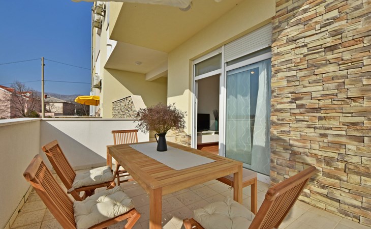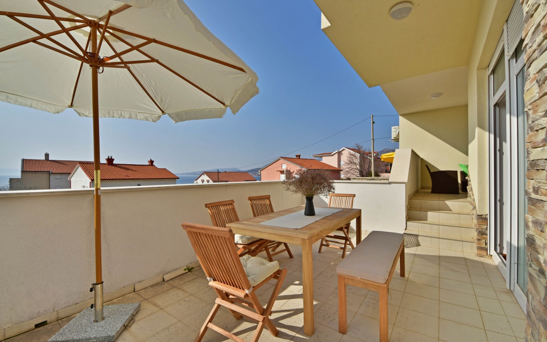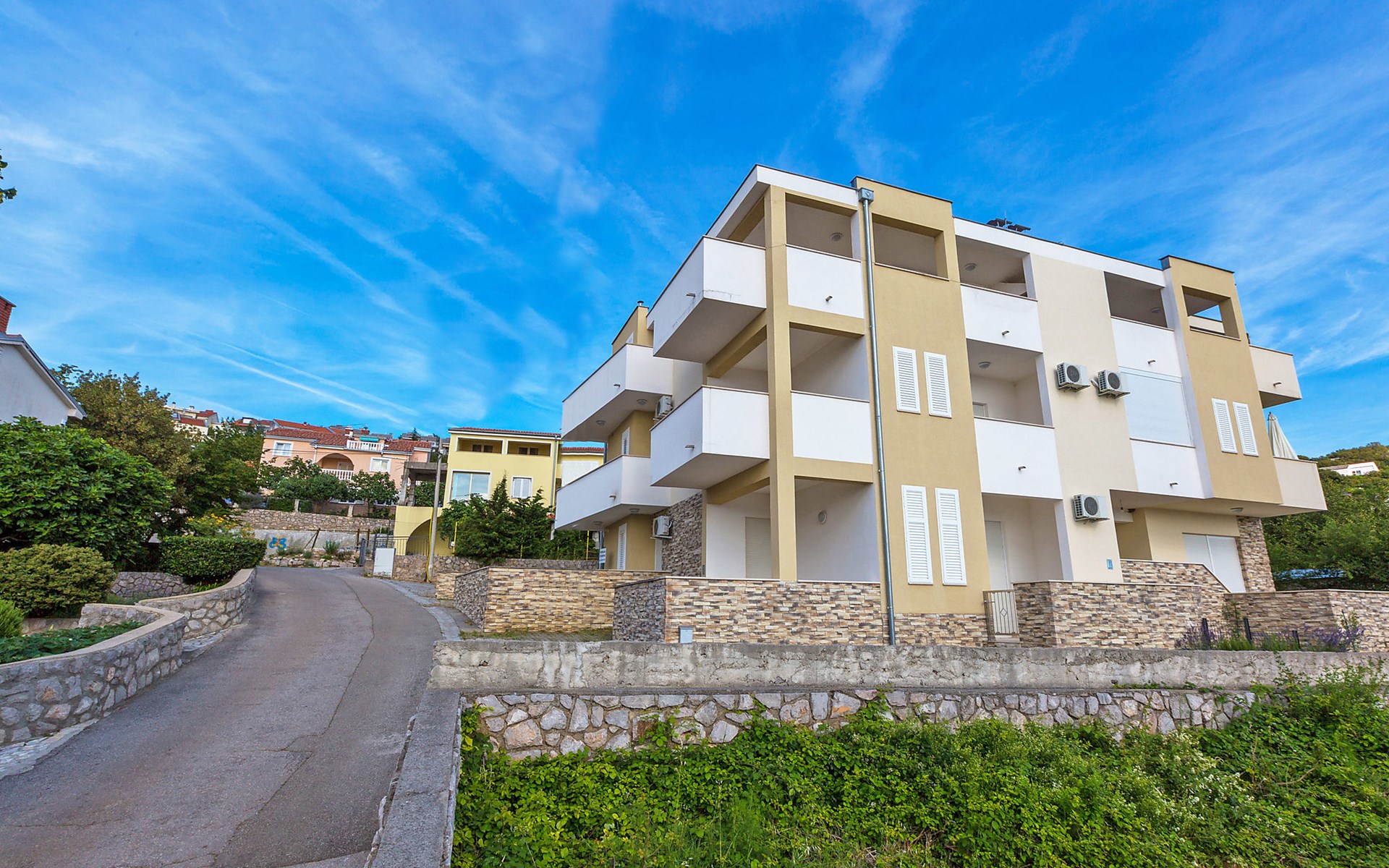 Klenovica 8 km van Novi Vinodolski: Appartementencomplex "Cvit". 600 m van het centrum van Klenovica, zonnige, verhoogde ligging, 100 m van zee, 100 m van het strand. Voor medegebruik: terrein 700 m2. In het huis: internetaansluiting. Parkeerplaats bij het huis op het terrein. Winkel 100 m, restaurant 80 m, bushalte 1.1 km, kiezelstrand 100 m.