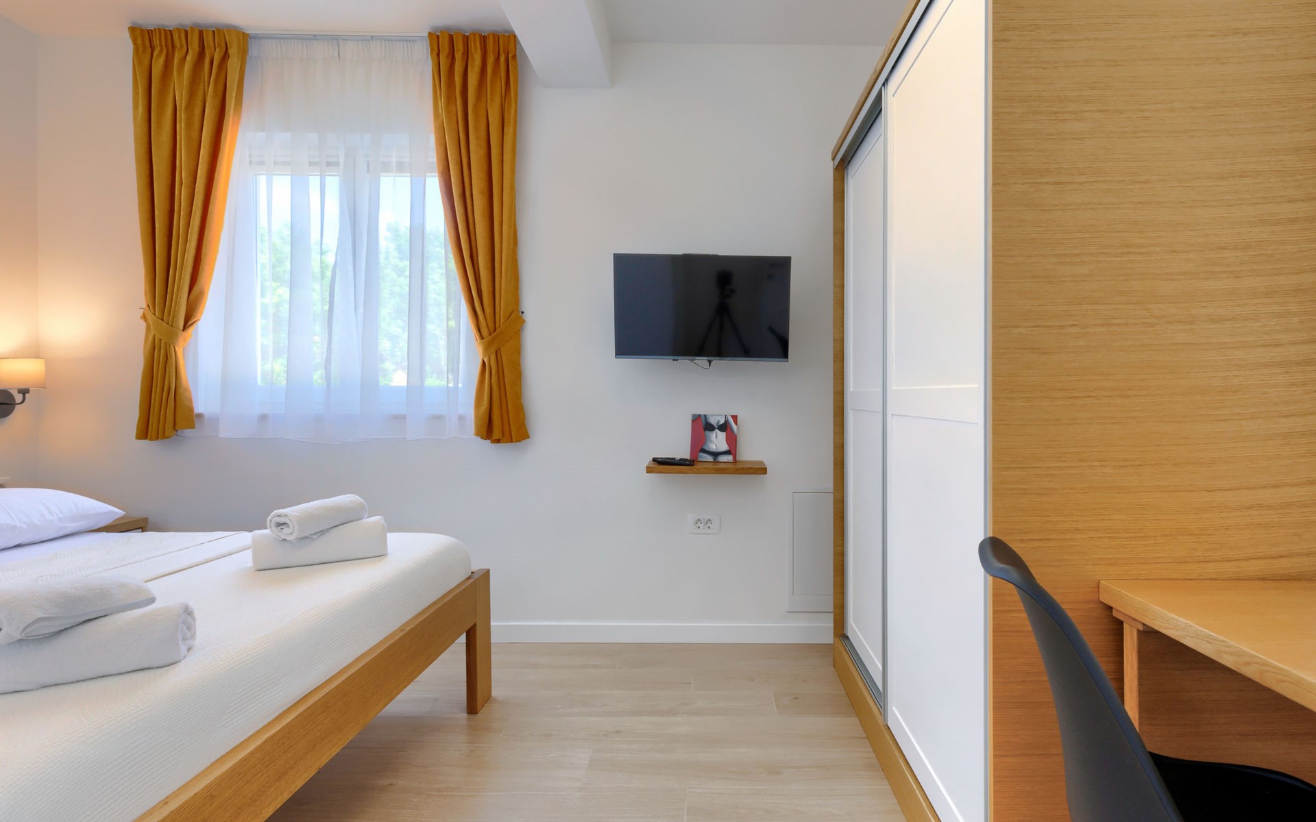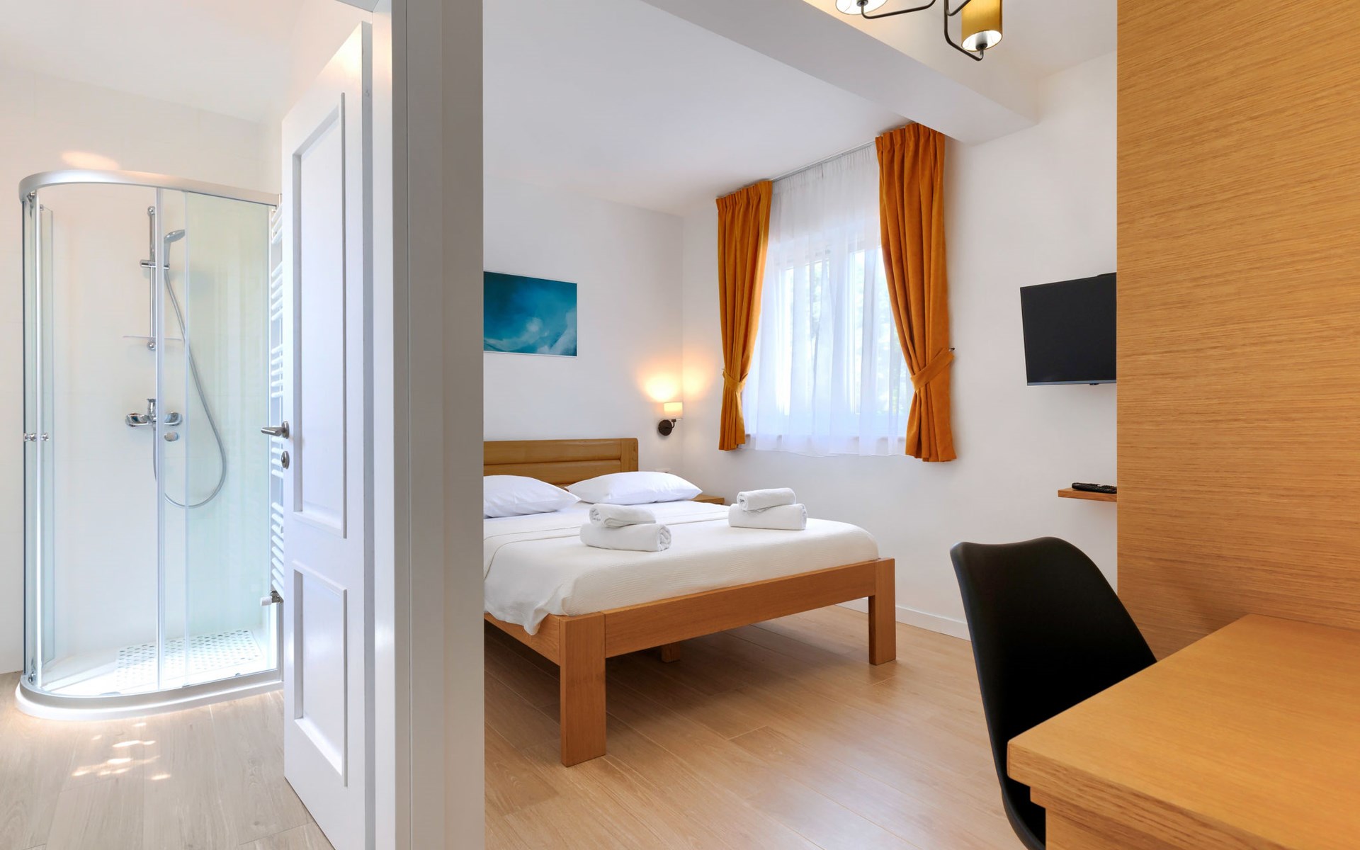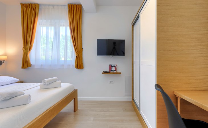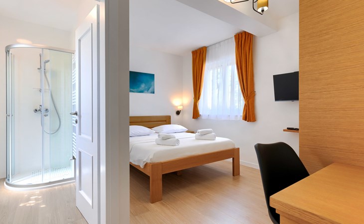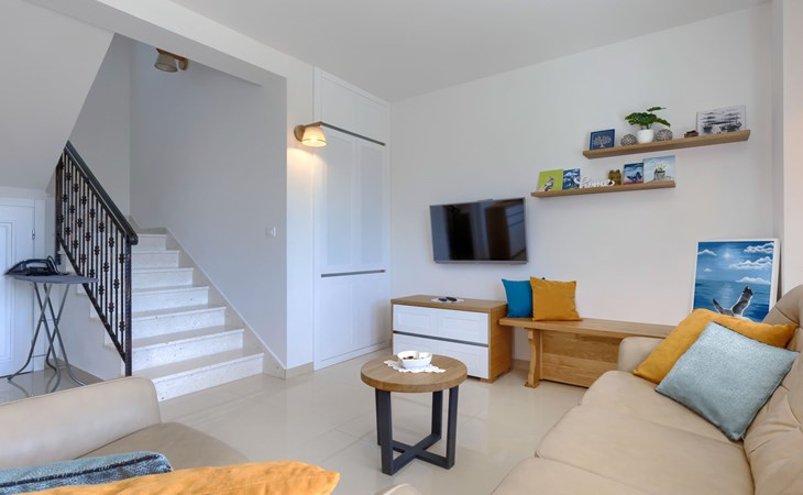 Mooi eengezinswoning "Villa Camellia", van 3 verdiepingen. 1.1 km van het centrum van Trget, buiten de plaats, rustige, zonnige, verhoogde ligging, 900 m van zee, 900 m van het strand. Voor alleengebruik: terrein 700 m2 (omheind), openluchtzwembad hoekig (8 x 4 m, 150 cm diepte, seizoensgebonden beschikbaarheid: 05.Apr. - 12.Okt.) met trap. Buitendouche, terras (13 m2), barbecue, onderhoud zwembad door de eigenaar/tuinman. In het huis: internetaansluiting, wasmachine. Parkeerplaats bij het huis op het terrein. Winkel 1.1 km, supermarkt 10 km, restaurant 600 m, bushalte 6.6 km, kiezelstrand 900 m. De eigenaar accepteert geen jeugdgroepen. Vliegveld 55 km van het huis.