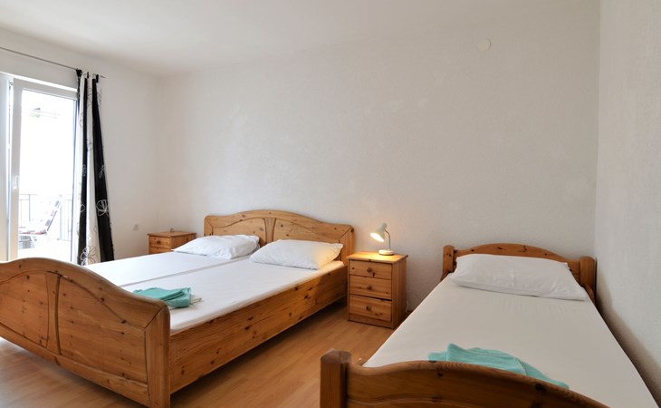 Flatgebouw "Josip". 2.5 km van het centrum van Vodice, 700 m van het centrum van Tribunj, 300 m van zee, 300 m van het strand, aan een doodlopende weg. Voor medegebruik: barbecue. In het huis: internetaansluiting, wasmachine (voor medegebruik, extra). Parkeerplaats op 250 m. Winkel 400 m, supermarkt 2.5 km, restaurant 3 km, bushalte "Tribunj" 700 m, kiezelstrand 300 m.