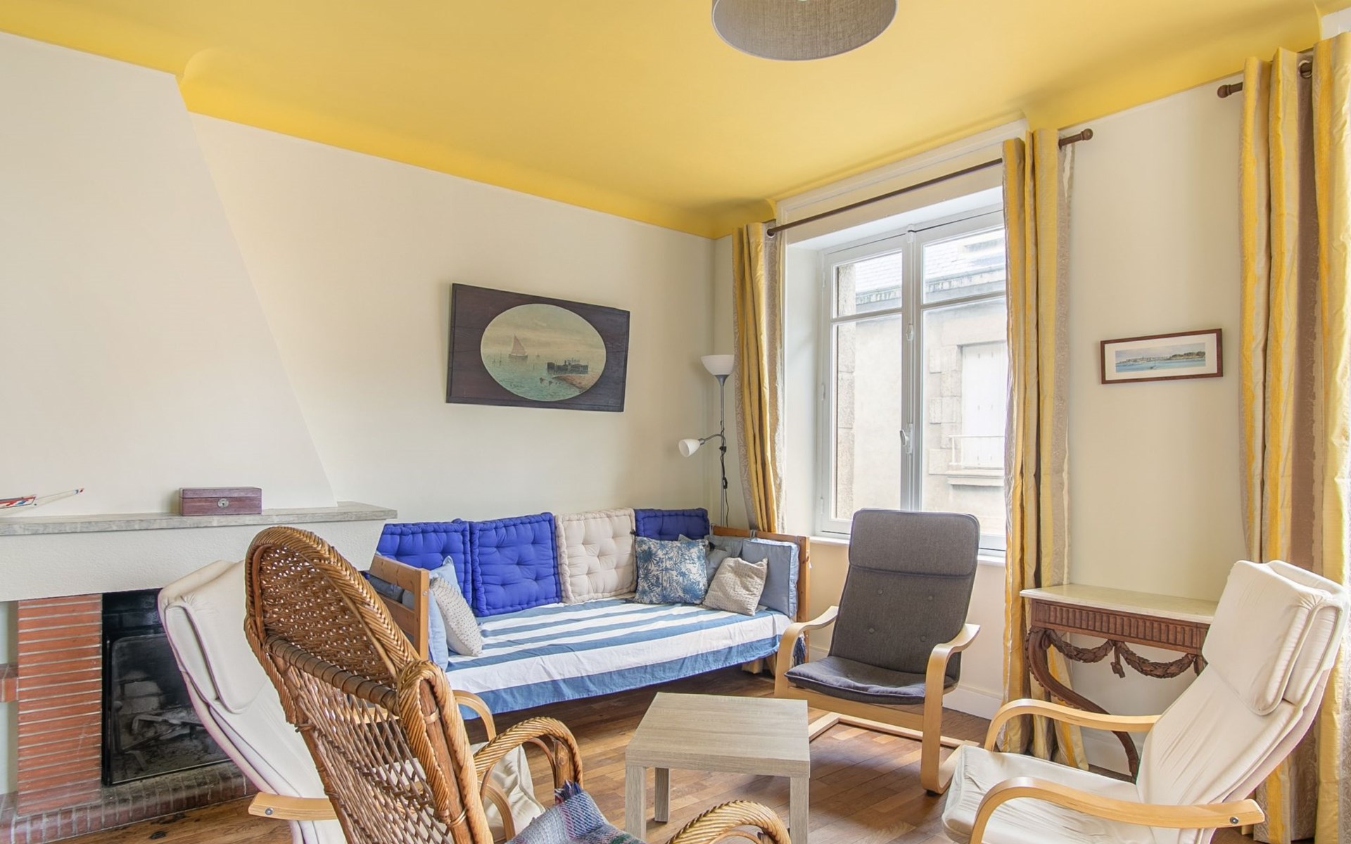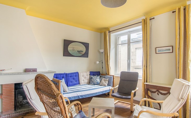 Oud, mooi appartementencomplex van 6 verdiepingen. In het centrum van Intramuros, perfecte locatie: in het centrum en toch rustig gelegen, in het centrum van de stad, 300 m van zee, 400 m van het strand. Betaald kortparkeren zone, maandag - zaterdag. Winkel 30 m, levensmiddelenwinkel 100 m, supermarkt 240 m, restaurant 50 m, bakkerij 240 m, café 30 m, bushalte "Intramuros" 250 m, station "Gare TGV de Saint Malo" 2 km, veerboot "Gare maritime du Naye" 1.3 km, zandstrand "Plage du Môle" 400 m, park "du grand bé" 450 m, thermaalbad "Thermes marins" 2.5 km. Jachthaven 2.2 km, zeilschool 2.4 km, tennishal 2 km. Attracties in de buurt: Grand aquarium de saint Malo 4 km, Dinan 25 km, Dinard 4 km, Cancale 15 km, Casino Saint-Malo 2 km, Le Mont Saint Michel 48 km. Geen lift.