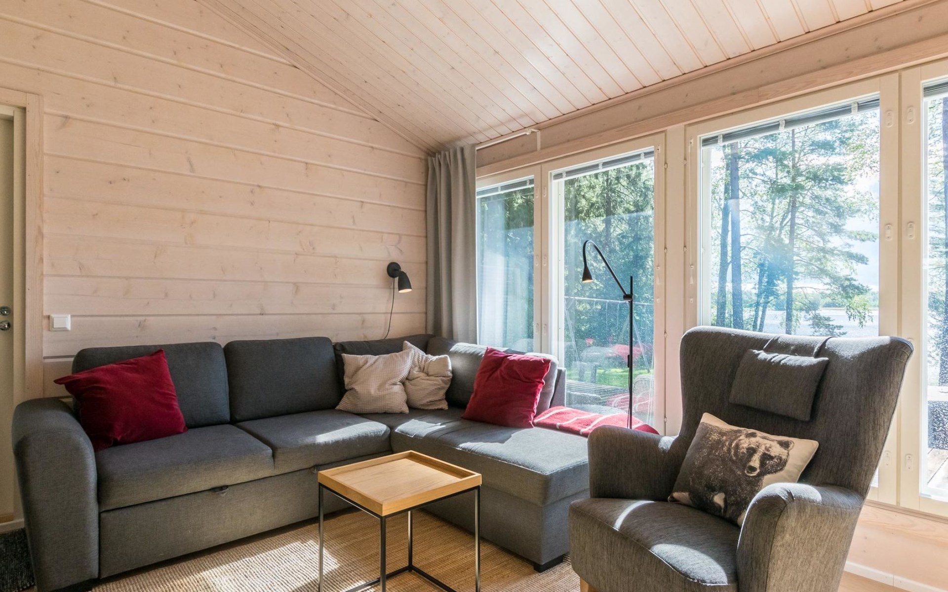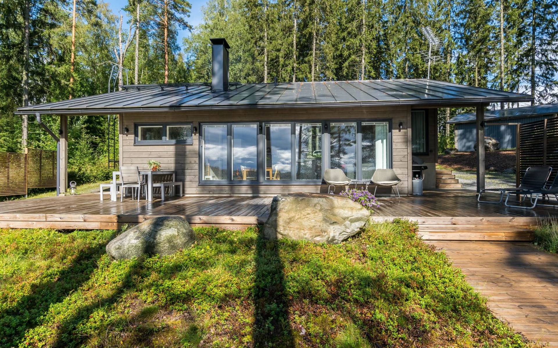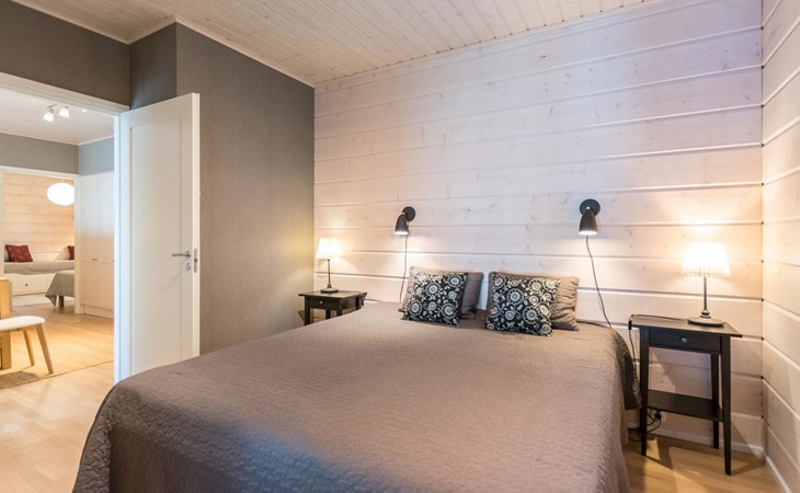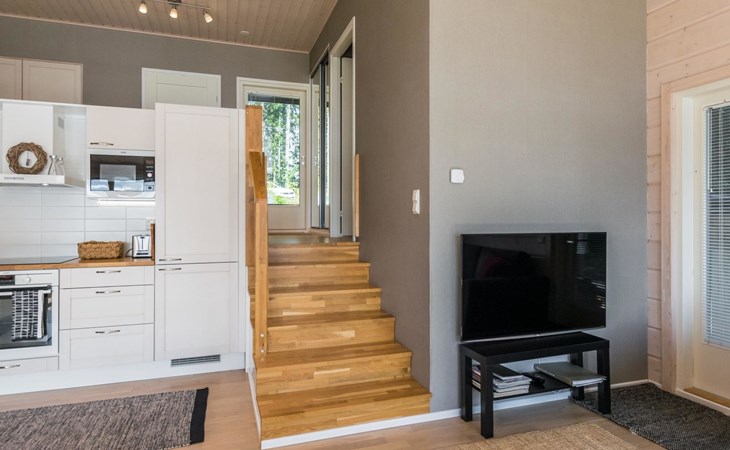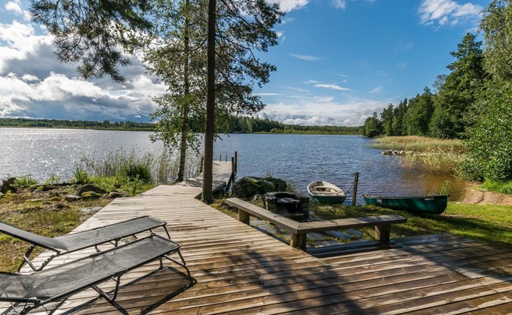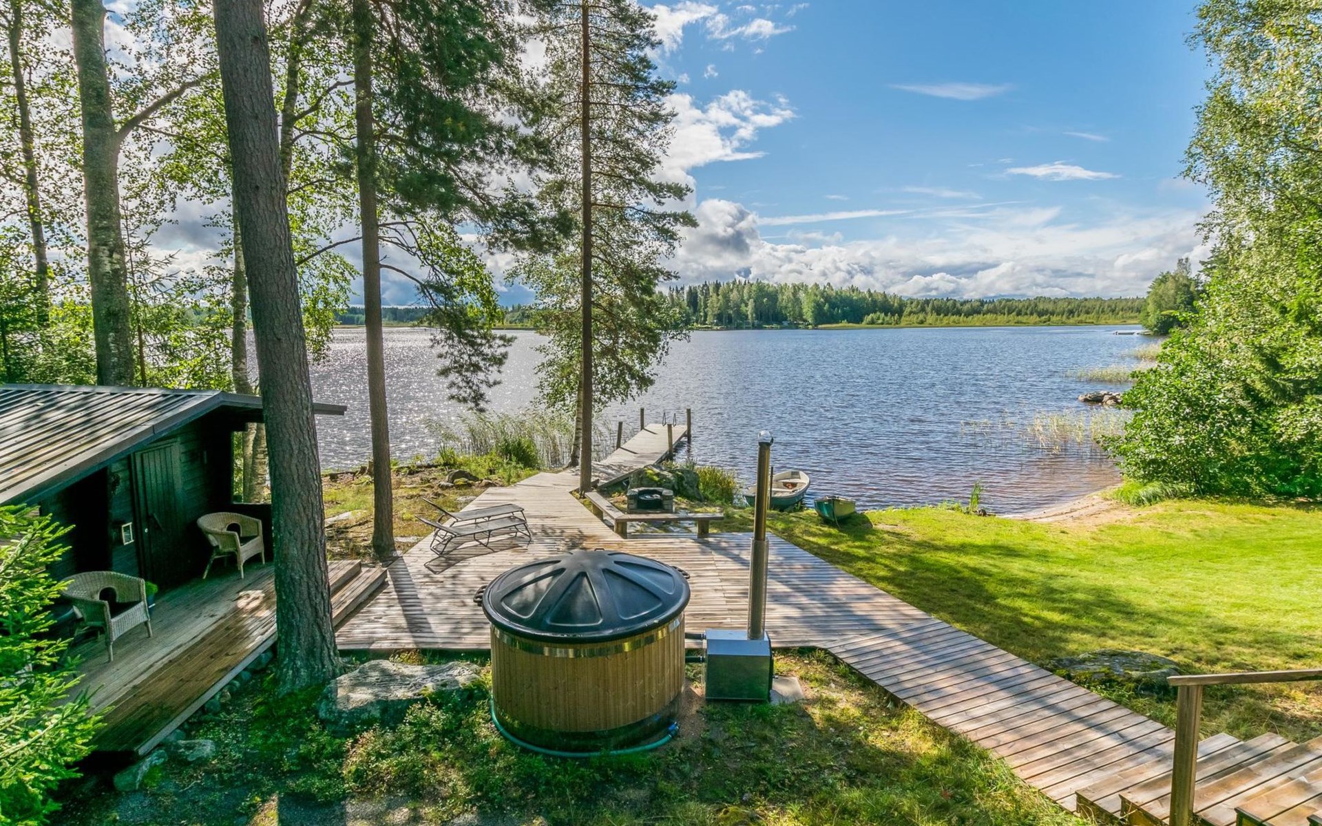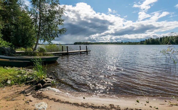Wooden villa 2016, large kitchen-living room (sofa bed), bedroom 2 beds, bedroom 2 beds, bedroom with one bed and sofa bed. Washroom (2 showers), sauna with views of the lake (wood stove), separate toilet. Extensive partly covered terrace spaces.