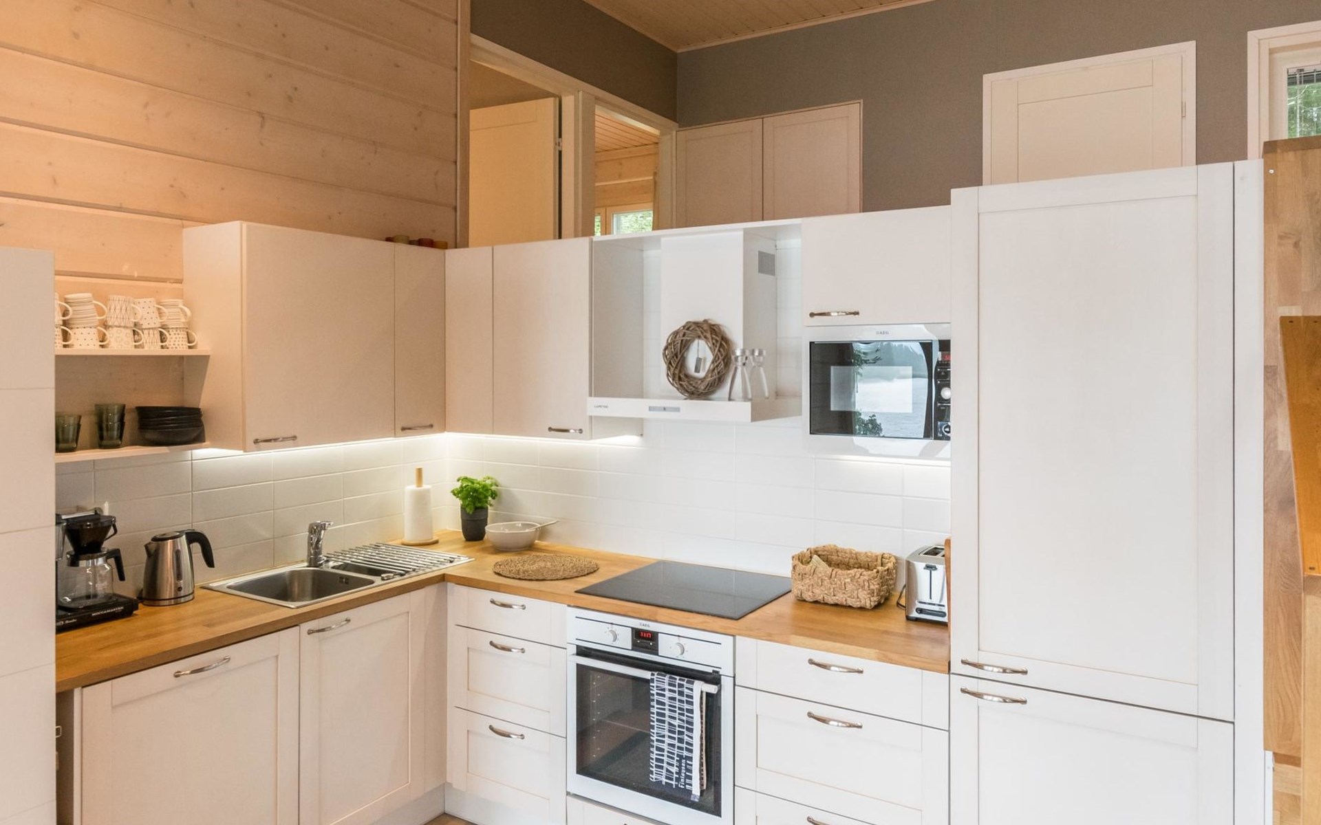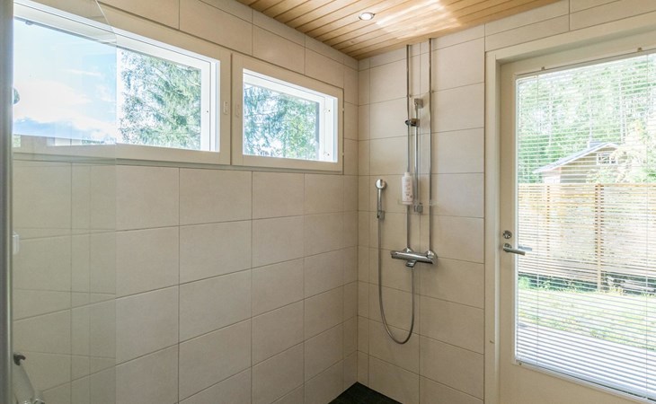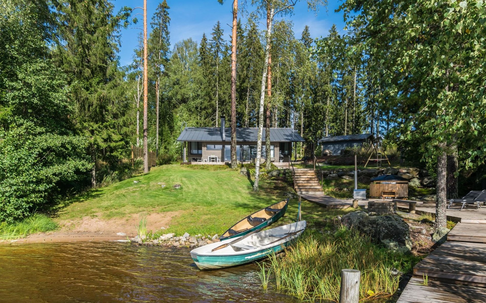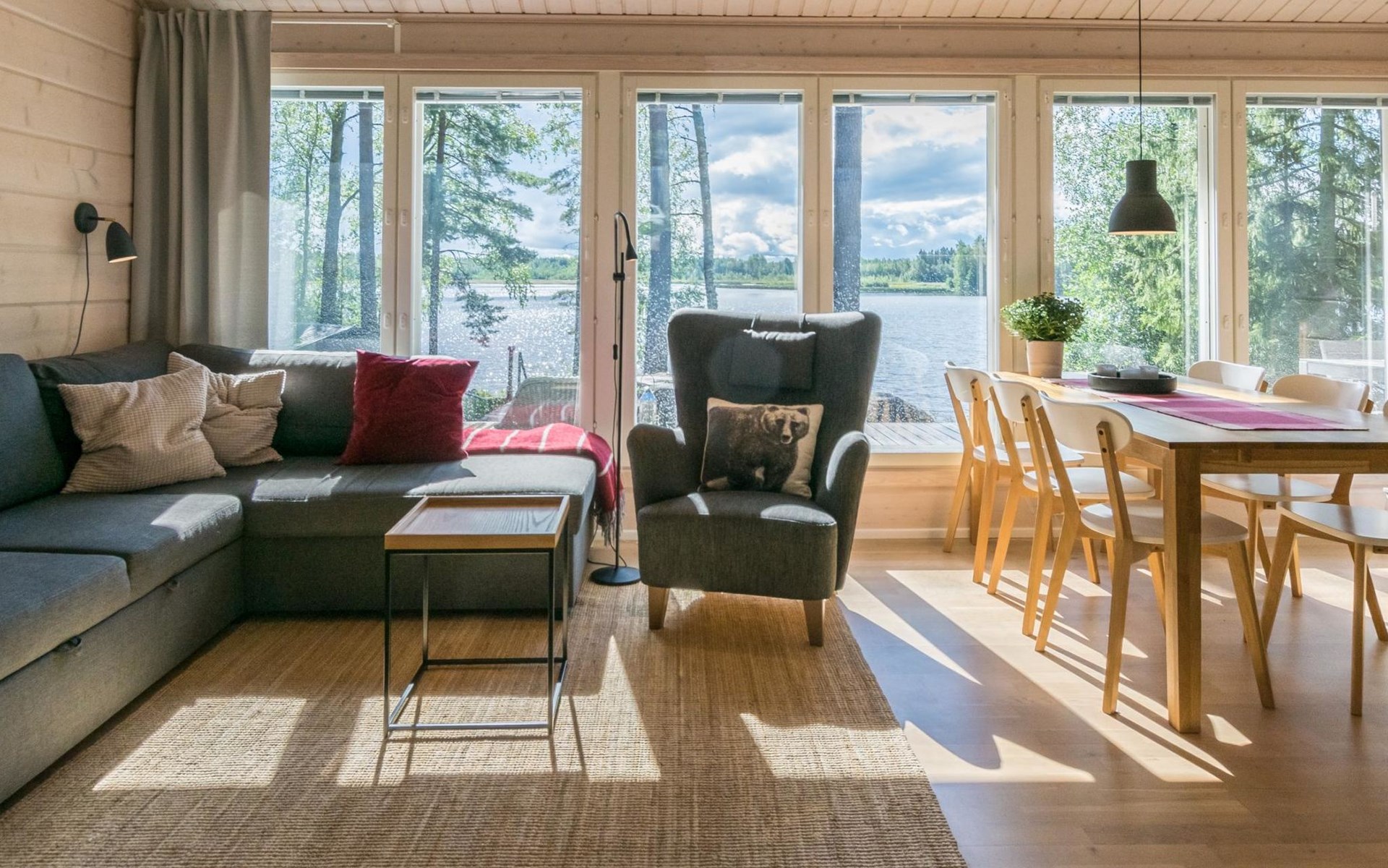 Wooden villa 2016, large kitchen-living room (sofa bed), bedroom 2 beds, bedroom 2 beds, bedroom with one bed and sofa bed. Washroom (2 showers), sauna with views of the lake (wood stove), separate toilet. Extensive partly covered terrace spaces.
