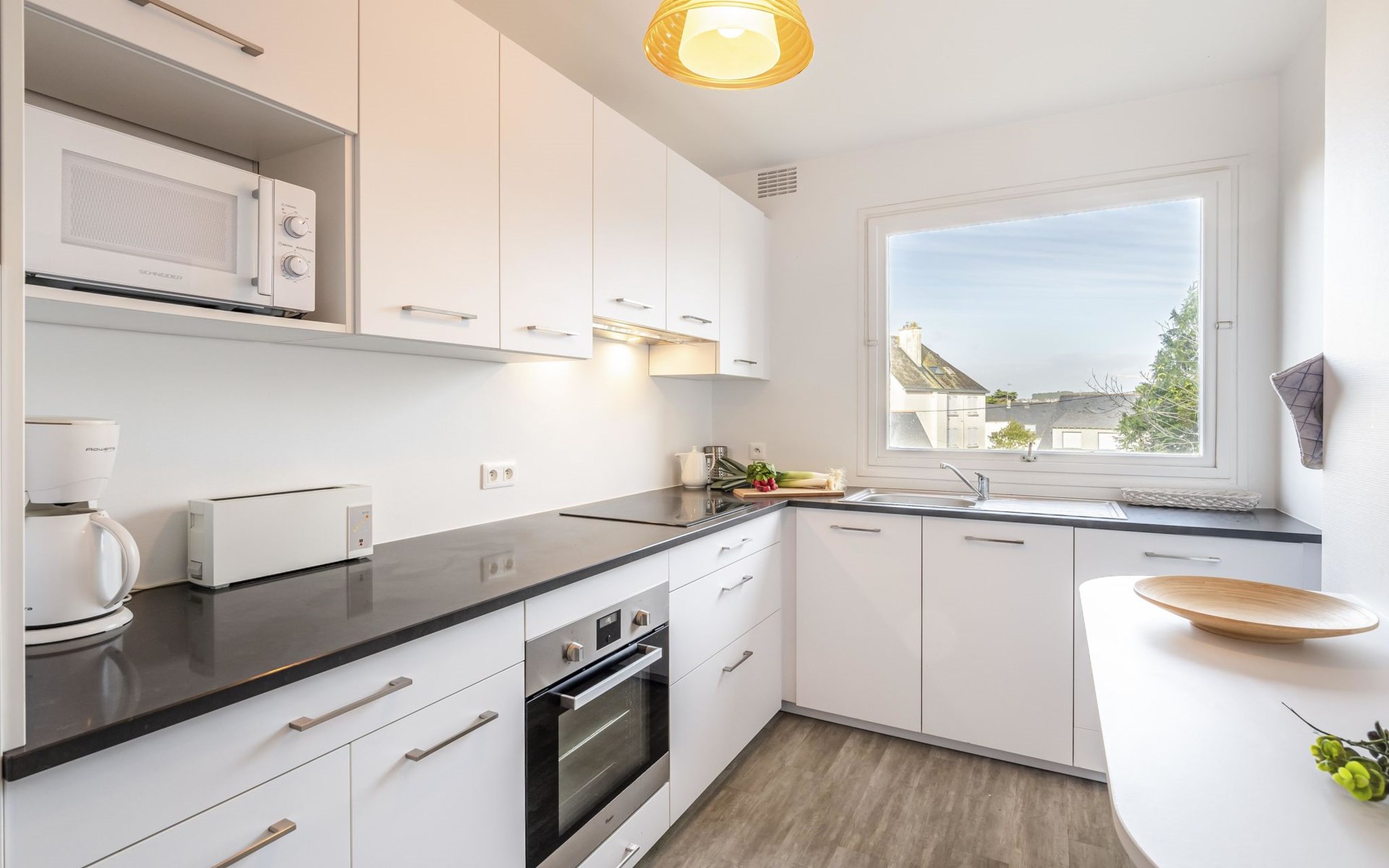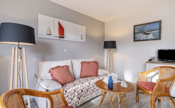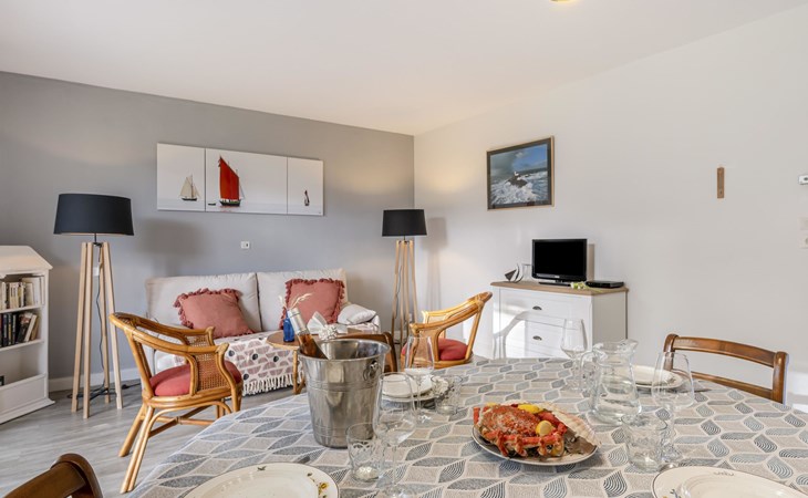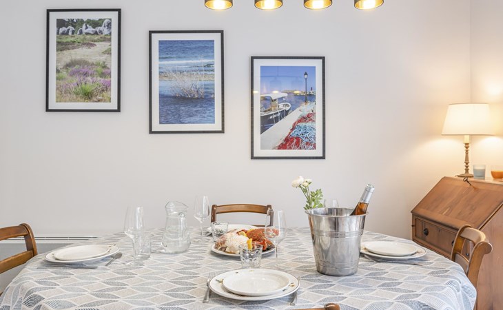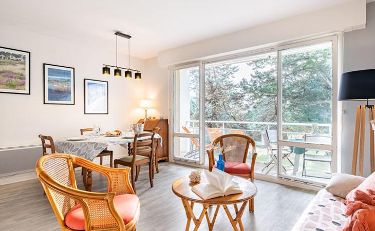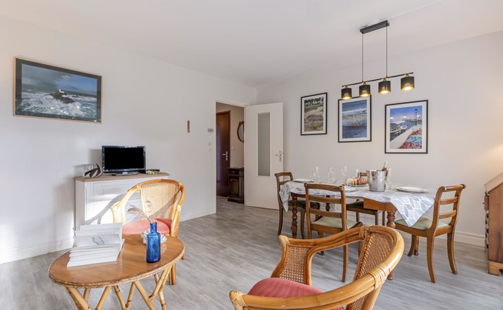 Residentie "Port An Dro", van 4 verdiepingen, omgeven door bomen. In de plaats, 100 m van het centrum, perfecte locatie: in het centrum en toch rustig gelegen, 100 m van zee, 100 m van het strand. Voor medegebruik: park (omheind). In het huis: bergruimte voor fietsen. Parkeerplaats. Winkel 100 m, levensmiddelenwinkel 200 m, supermarkt 1 km, restaurant 100 m, centrum te voet bereikbaar in 5 minuten, zandstrand "Grande Plage de Carnac", thermaalbad "Thalassothérapie Thalazur". Golfterrein (18 holes) 15 km, zeilschool 300 m, manege 4 km. Attracties in de buurt: La Trinité sur Mer 6 km, La Presqu'Ile de Quiberon 14 km, Alignements de Carnac 3 km, Auray 18 km, Vannes 33 km, Lorient 52 km. Wandelgebied le Golfe du Morbihan.