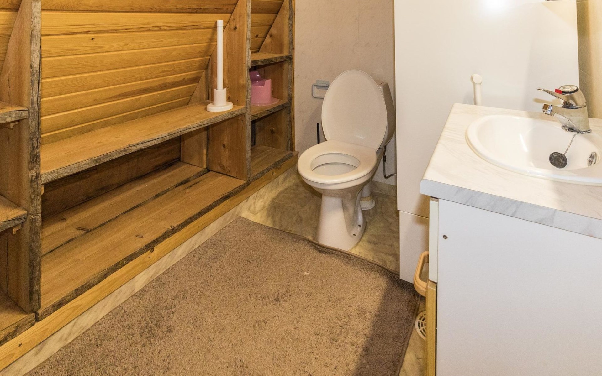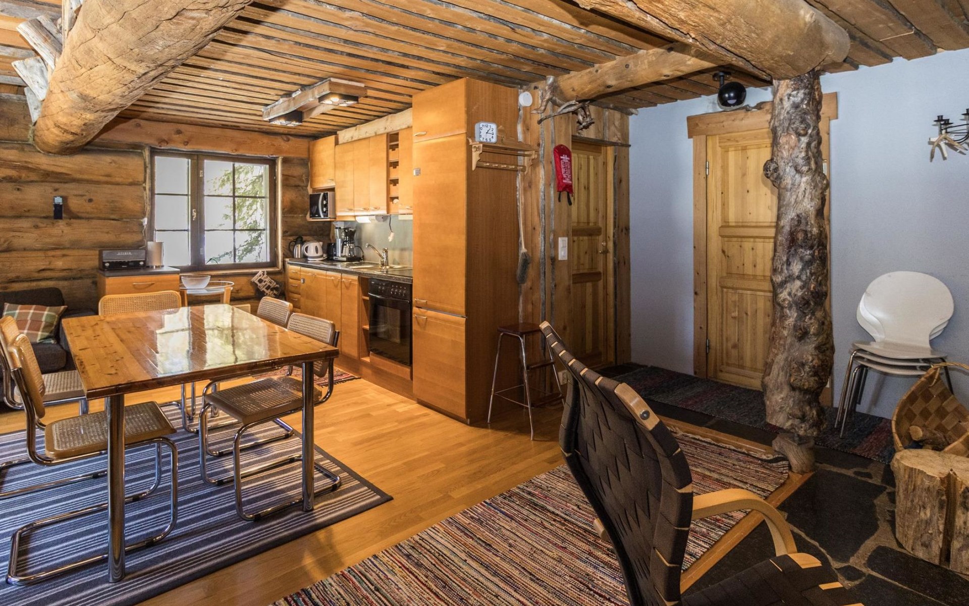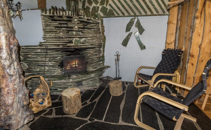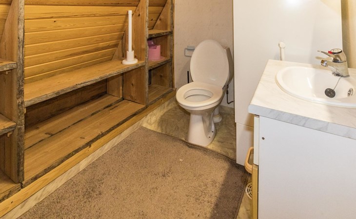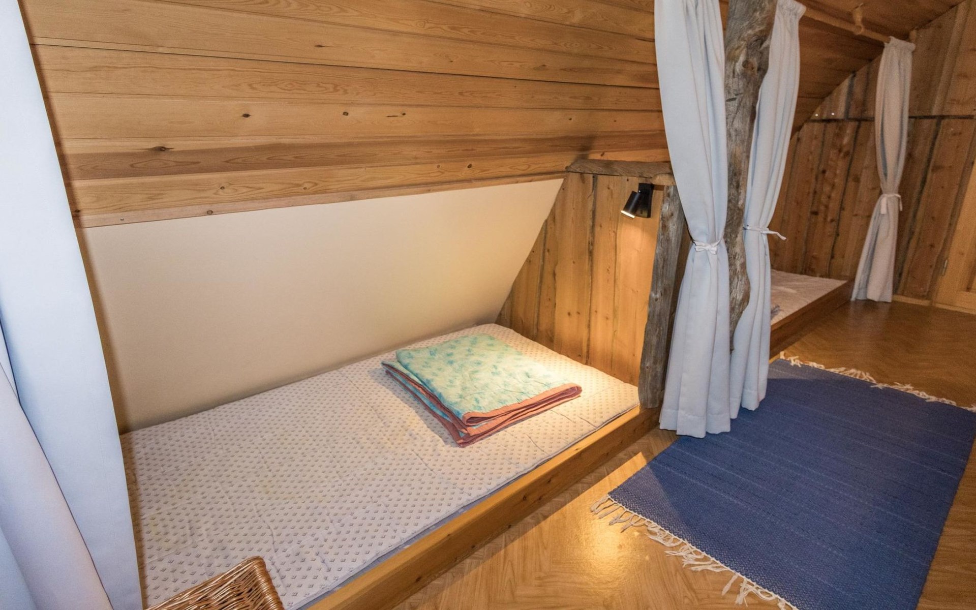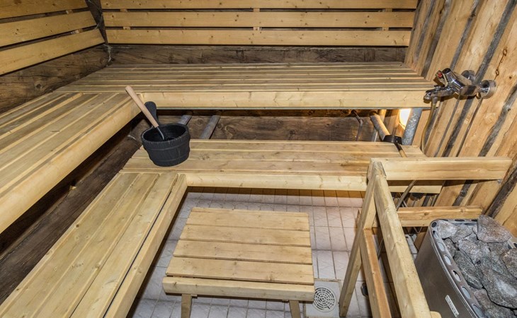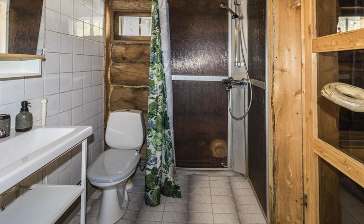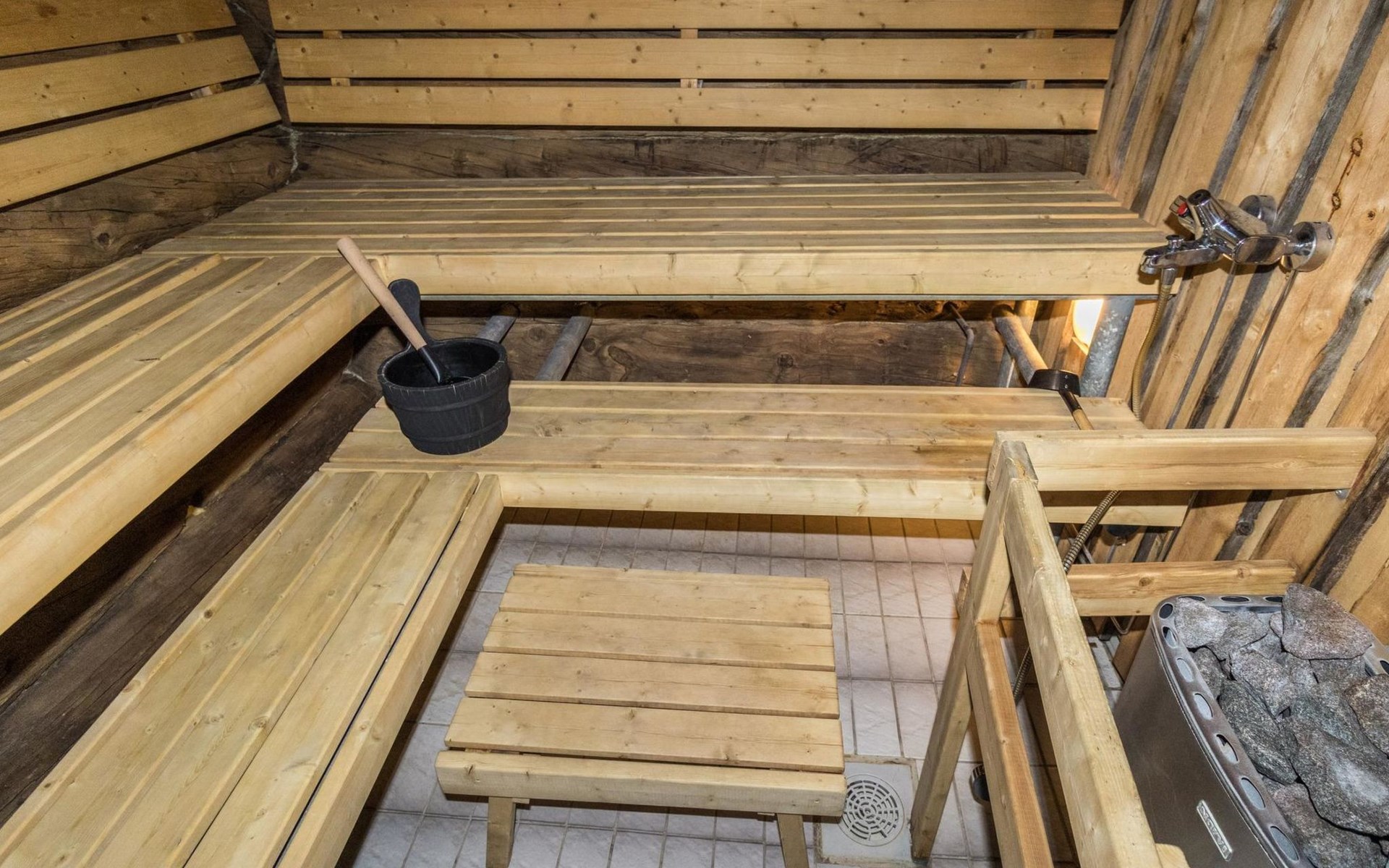 One half (apartment) of semi-detached silverlog house unit 1991, living room/kitchen convertible sofa/bed, bedroom double bed, upstairs 2 bedrooms with double bed in each, 2 alcoves to bedroom, both with mattresses, sauna, washroom, WC also upstairs, balcony. 2 mattresses provided as extra beds.