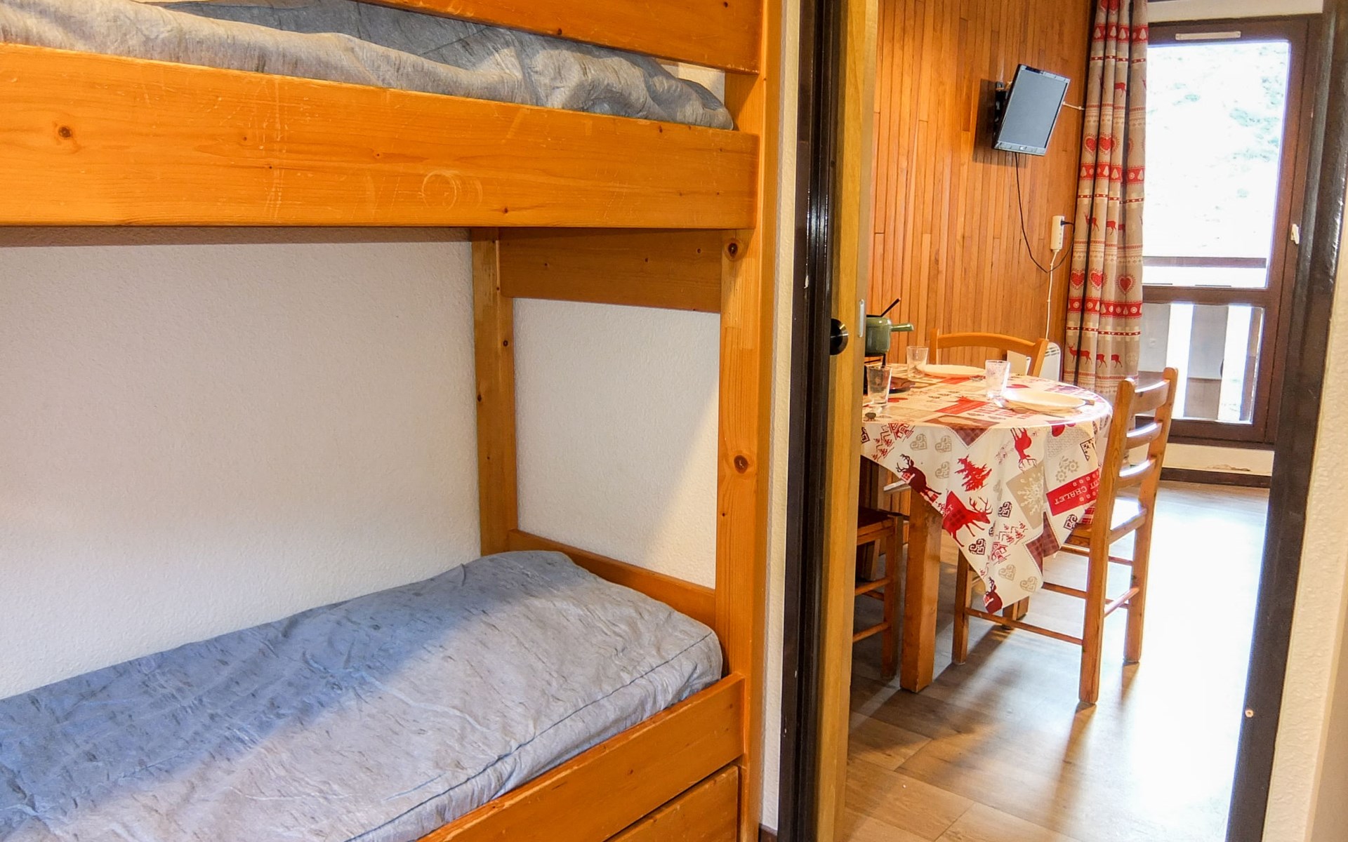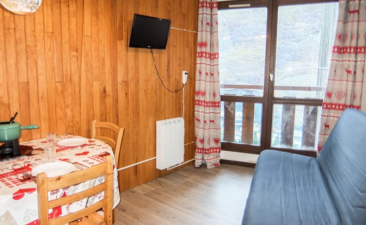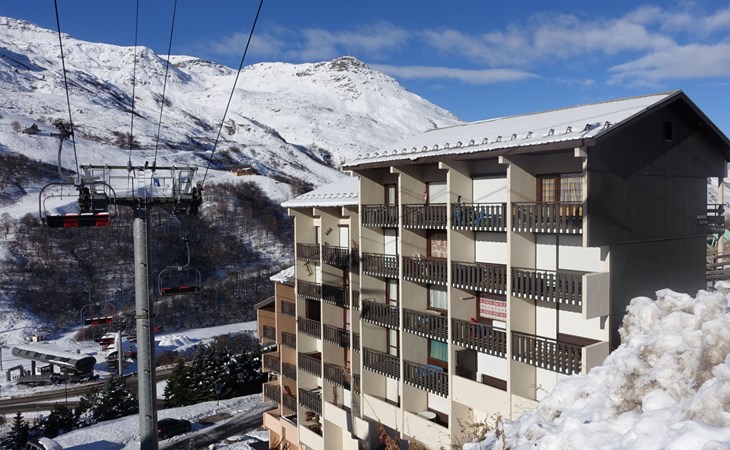 Residentie "L'Argousier", van 6 verdiepingen. In de wijk Fontanettes, 800 m van het centrum, 200 m van het skigebied. In het huis: lift, berging voor ski's. Openbare parkeerplaatsen in de straat. Bushalte "ARRET les fontanettes bas" 300 m. Stoeltjeslift 200 m, ski faciliteiten 200 m, skipisten 100 m, skibushalte 50 m, skischool, kinderoppasdienst 800 m. Bekende skigebieden kunnen gemakkelijk worden bereikt: 3 Vallées. De afgebeelde foto is slechts een voorbeeld. Vergelijkbare accommodaties kunnen worden geboekt.