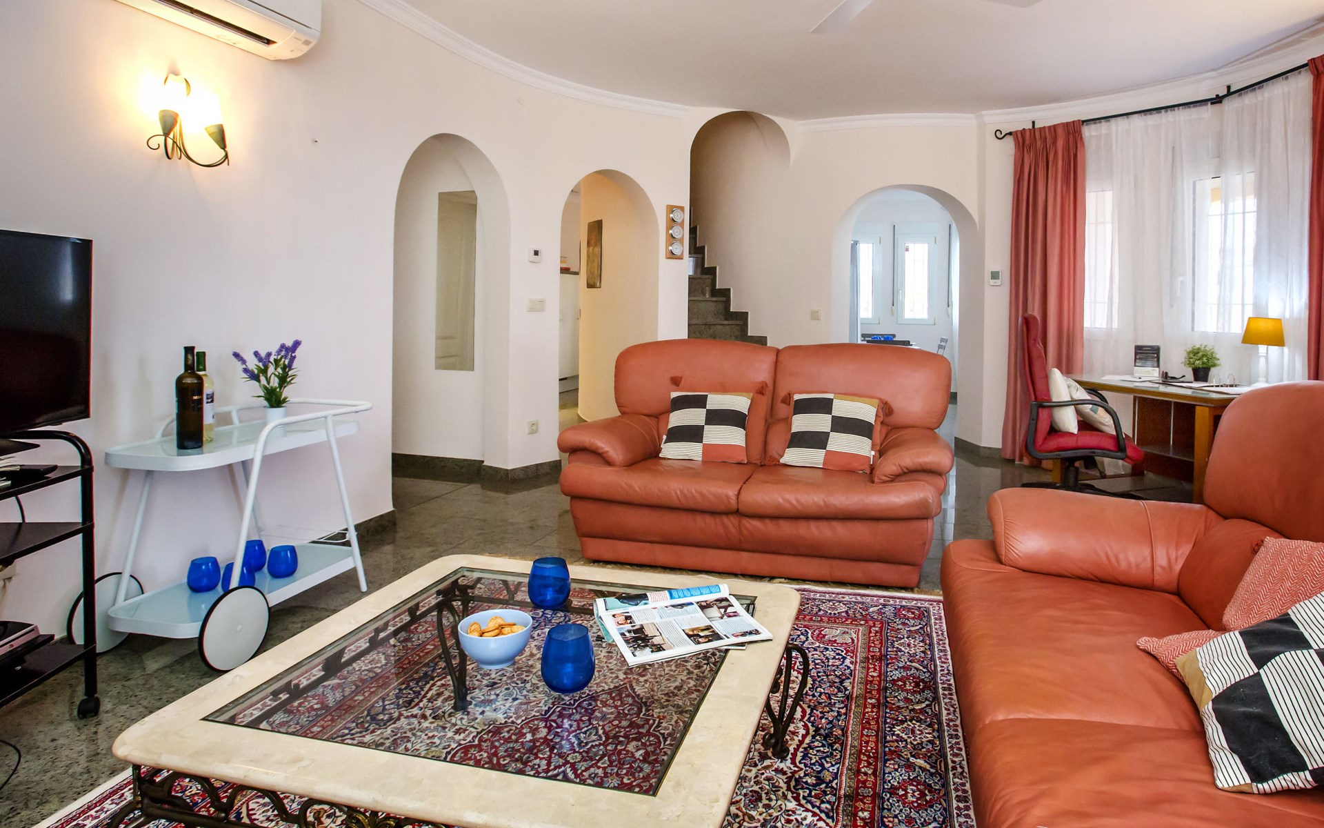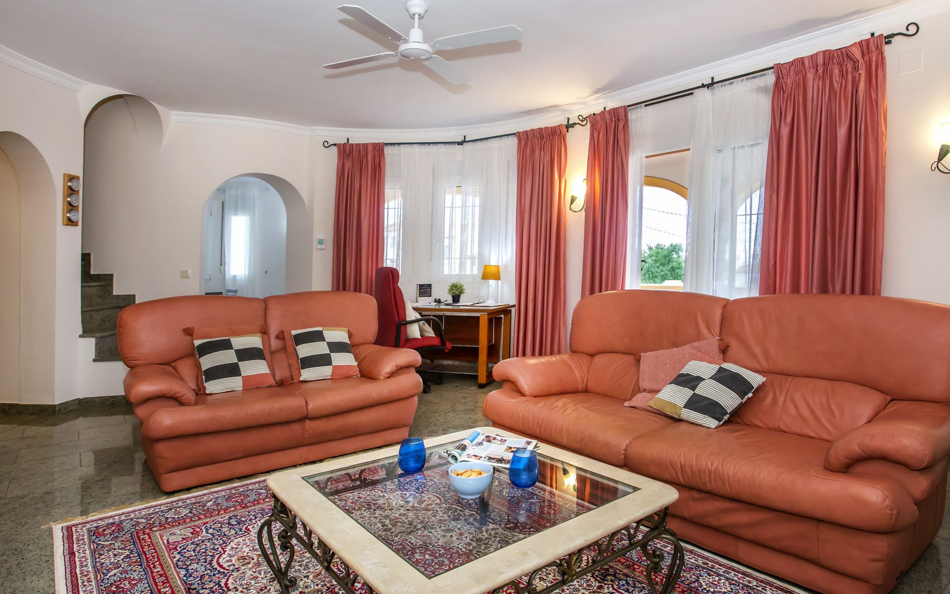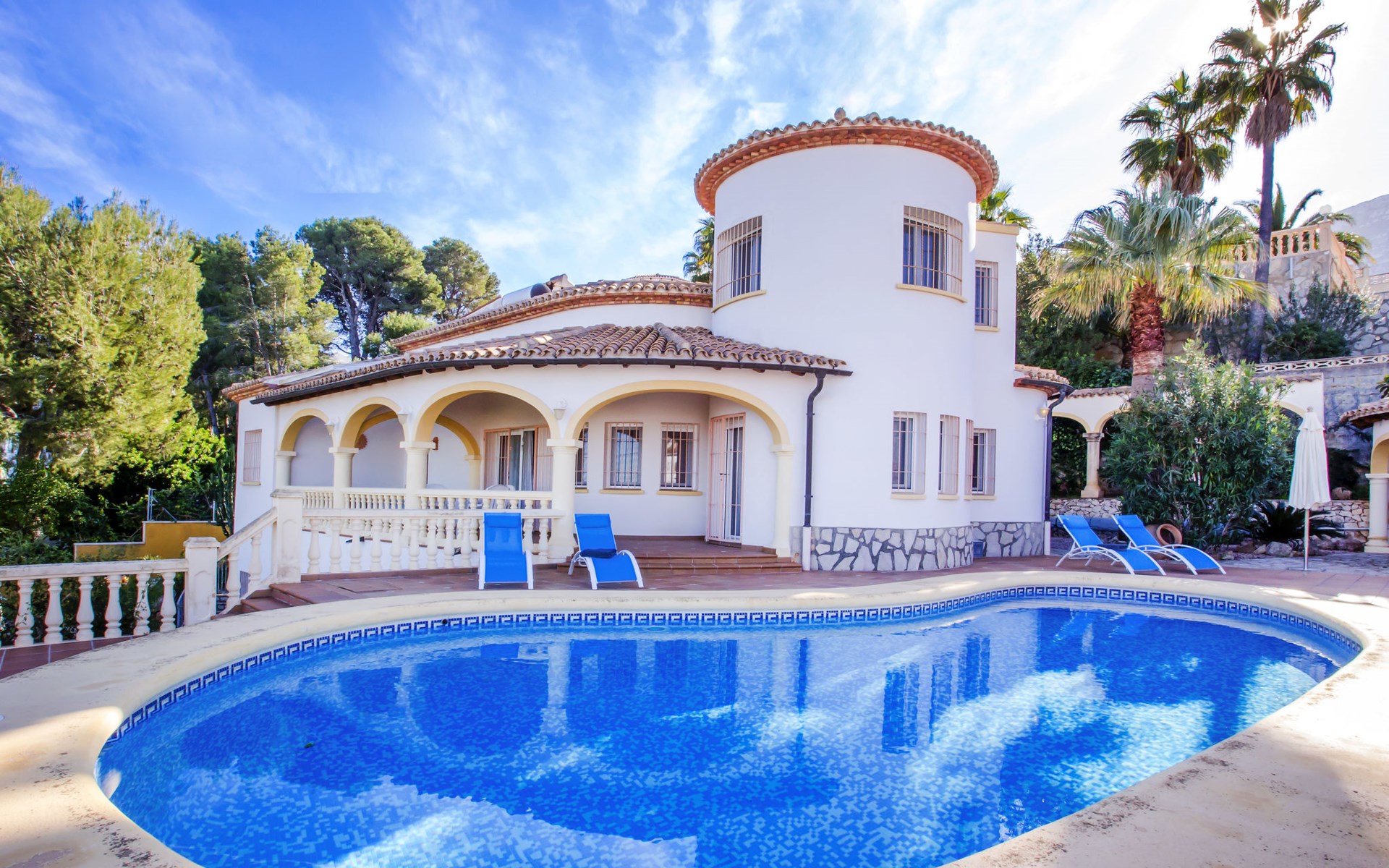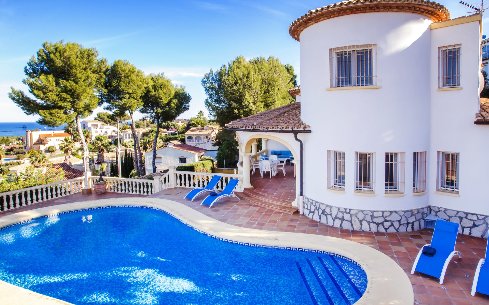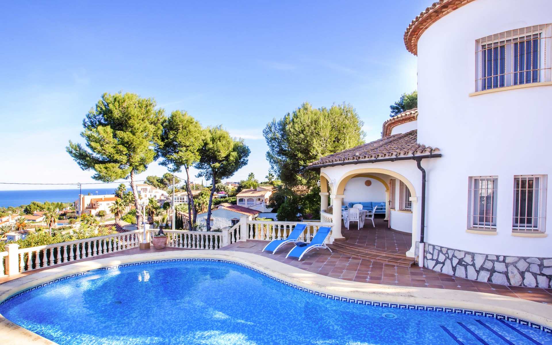 Zeer groot, gezellige, comfortabele villa "Rosa", van 2 verdiepingen. In de plaats, 3 km van het centrum van Dénia, rustige, zonnige ligging, 1.7 km van zee, 1.7 km van het strand. Voor alleengebruik: mooie, verzorgde tuin, openluchtzwembad niervormig (10 x 5 m, 110 - 210 cm diepte, seizoensgebonden beschikbaarheid: 01.Jan. - 31.Dec.) met trap. Buitendouche, prieel, tuinmeubelen, grill, parkeerplaats op het terrein. Supermarkt 2.5 km, restaurant 1.6 km, café 1.5 km, bushalte 3 km, station 3 km, veerboot 4.6 km, zandstrand "Marineta Cassiana" 1.7 km. Jachthaven 2.4 km, surfschool 1.7 km, zeilschool 1.7 km, tennis 5 km. De eigenaar accepteert geen jeugdgroepen.