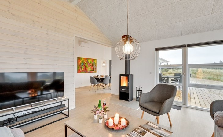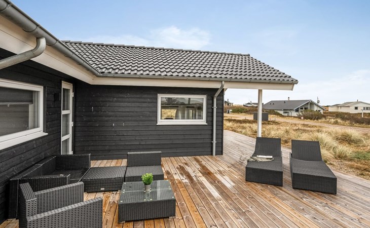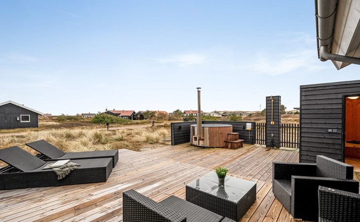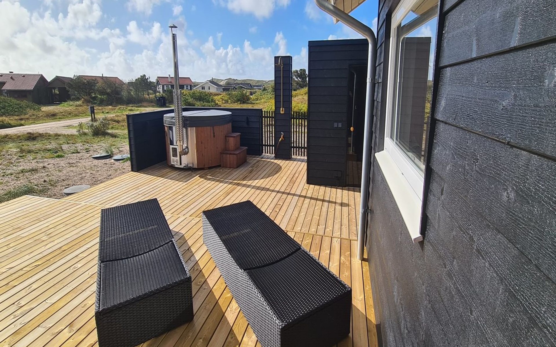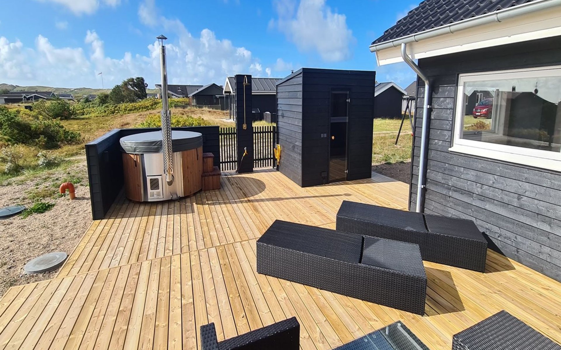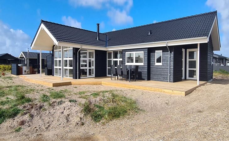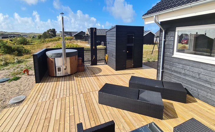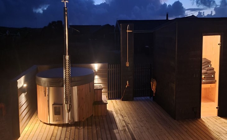 Eengezinswoning, bouwjaar 2022. 450 m van zee. Voor alleengebruik: wild terrein 1.524 m2. Buitendouche, kinderspeelplaats (schommel). In het huis: sauna, tafelvoetbal, wasmachine, droger. Parkeerplaats bij het huis. Oplaadstation. Levensmiddelenwinkel 2.0 km. De eigenaar accepteert geen jeugdgroepen.