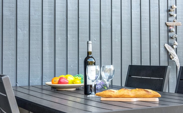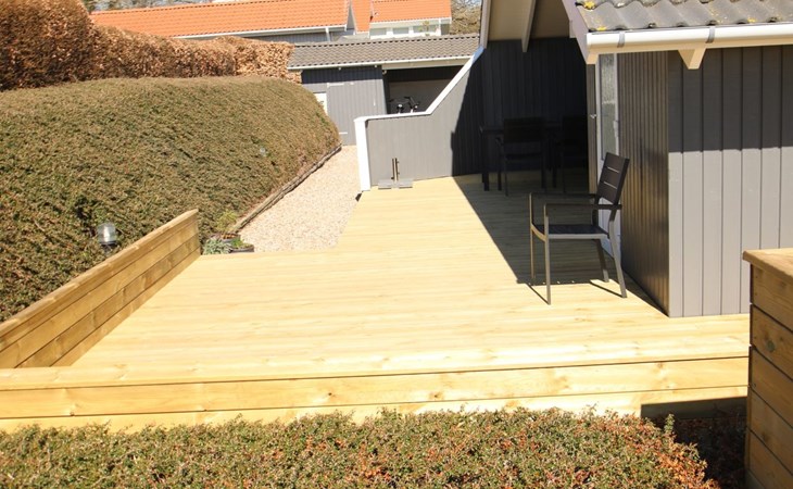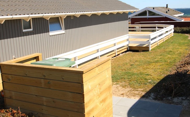 Eengezinswoning, bouwjaar 2000. 150 m van zee. Voor alleengebruik: terrein 725 m2, verzorgde tuin. Terras (40 m2), kinderspeelplaats (schommel). In het huis: sauna, wasmachine, droger. Carport. Levensmiddelenwinkel 400 m.