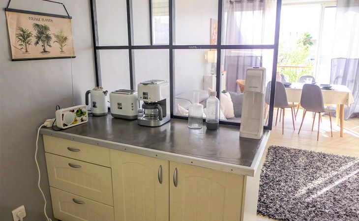 Residentie "Les Jardins du Vidourle". In de wijk Point Zéro, 2 km van het centrum, 100 m van zee, 80 m van het strand, directe toegang tot het strand. Parkeerplaats. Winkel 1 km, bushalte 200 m, station "Montpellier" 25 km, zandstrand 50 m, overdekt zwembad 1 km, thermaalbad "Thalasso Spa" 50 m. Jachthaven 2.5 km, golfterrein (18 holes) 1.5 km, zeilschool 2.5 km, tennis 1 km, manege 3.9 km. Attracties in de buurt: Le Seaquarium du Grau Du Roi 10 km, Les Remparts d'Aigues Mortes 12 km, Les Saintes Maries de la Mer 40 km. Vliegveld in de buurt 20 km van het huis.
