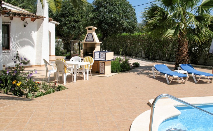 Huis "Jaen". In de wijk Camarrocha, 2 km van het centrum van Moraira, 130 km van het centrum van Valencia, 2 km van zee. Voor alleengebruik: terrein 800 m2, verzorgde tuin met bomen, openluchtzwembad hoekig (8 x 4 m, 120 - 180 cm diepte, seizoensgebonden beschikbaarheid: 01.Jan. - 31.Dec.). Buitendouche, parkeerplaats op het terrein. Winkel 1.5 km, restaurant 1 km, bushalte "Teulada" 750 m, treinstation "Teulada" 5.2 km, veerboot "Denia" 32 km, zandstrand 2 km. Tennis 1 km.
