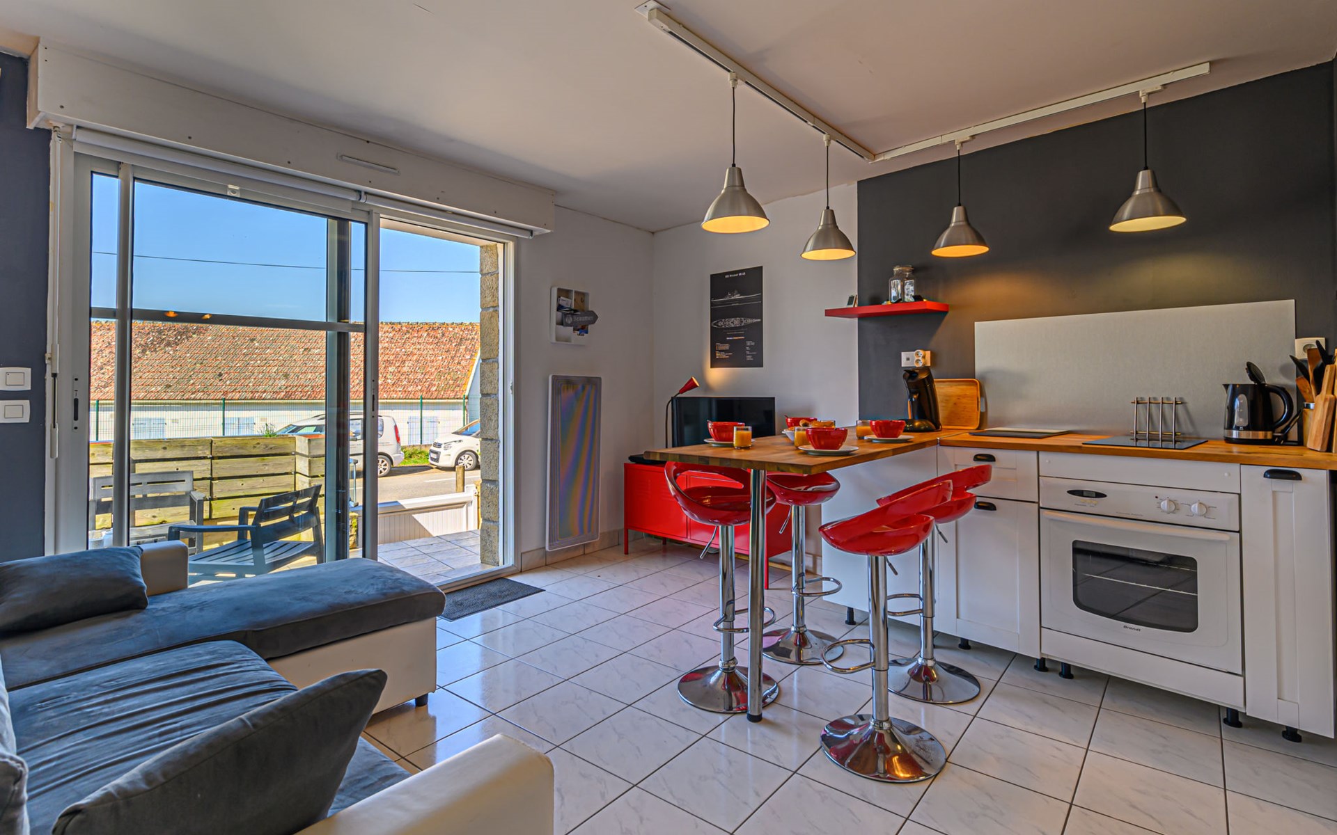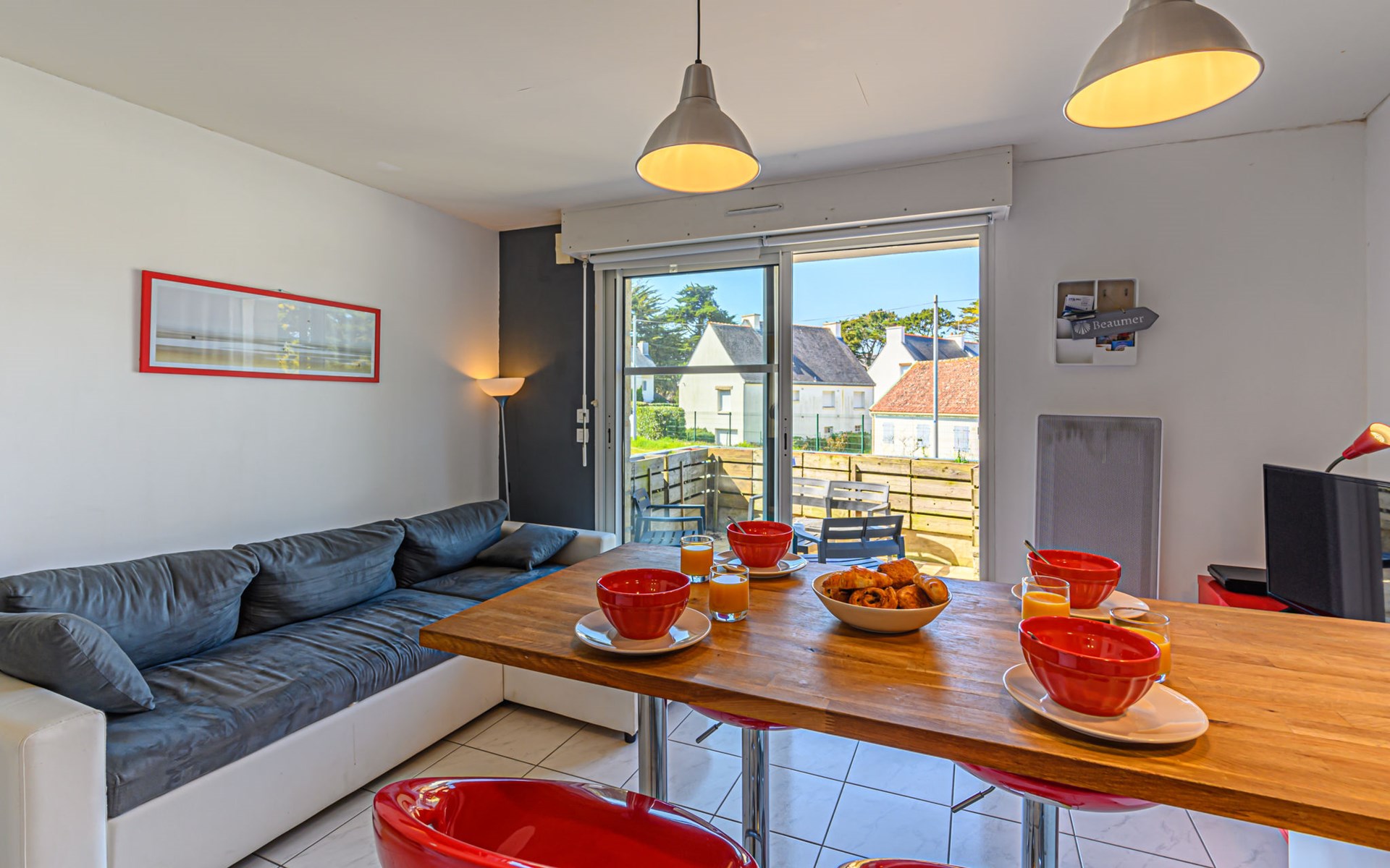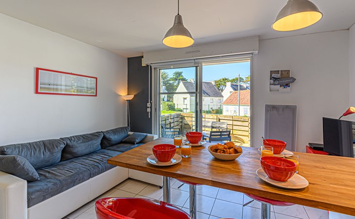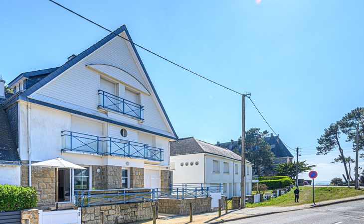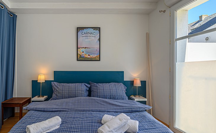 Carnac: Kleine residentie "Kermarine", van 2 verdiepingen. In de plaats, 1.7 km van het centrum, 100 m van zee. In het huis: bergruimte voor fietsen. Levensmiddelenwinkel 700 m, restaurant 850 m, bakkerij 1.4 km, zandstrand "Grande plage" 100 m, thermaalbad "Thalasso Thérapie" 2.1 km. Jachthaven 4 km, golfterrein (18 holes) 10 km, zeilschool 1.5 km, tennis 240 m. Attracties in de buurt: Les alignements de Carnac 4 km, La Trinité sur mer 4 km, Presqu'ile de Quiberon 18 km, Vannes 35 km, Lorient 45 m, Belle Ile en mer. Wandelgebied Le Golf du Morbihan.