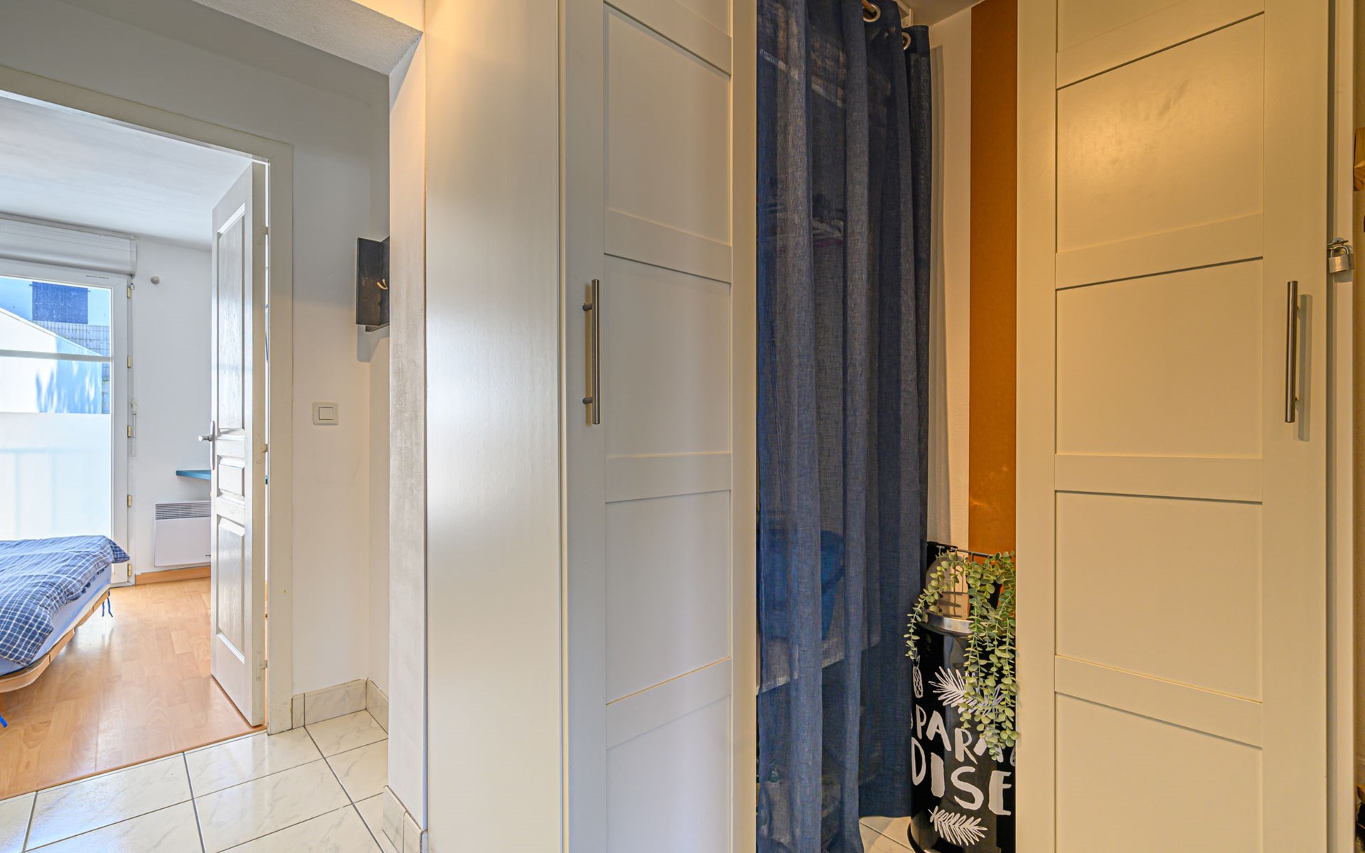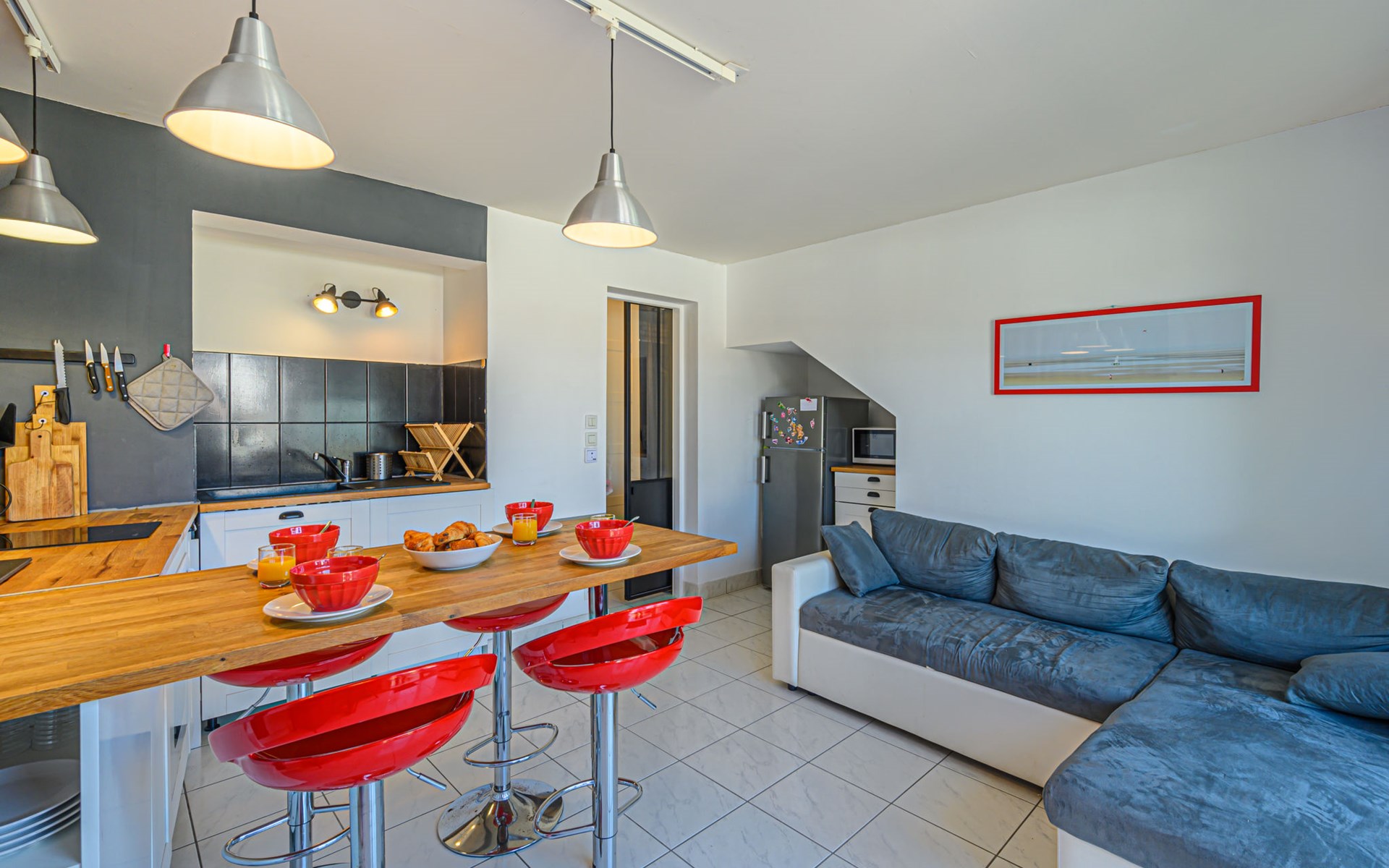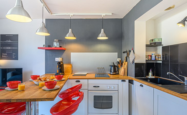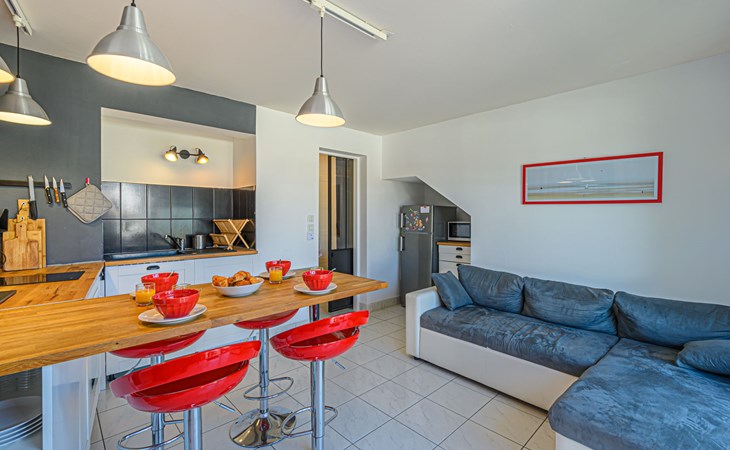 Carnac: Kleine residentie "Kermarine", van 2 verdiepingen. In de plaats, 1.7 km van het centrum, 100 m van zee. In het huis: bergruimte voor fietsen. Levensmiddelenwinkel 700 m, restaurant 850 m, bakkerij 1.4 km, zandstrand "Grande plage" 100 m, thermaalbad "Thalasso Thérapie" 2.1 km. Jachthaven 4 km, golfterrein (18 holes) 10 km, zeilschool 1.5 km, tennis 240 m. Attracties in de buurt: Les alignements de Carnac 4 km, La Trinité sur mer 4 km, Presqu'ile de Quiberon 18 km, Vannes 35 km, Lorient 45 m, Belle Ile en mer. Wandelgebied Le Golf du Morbihan.