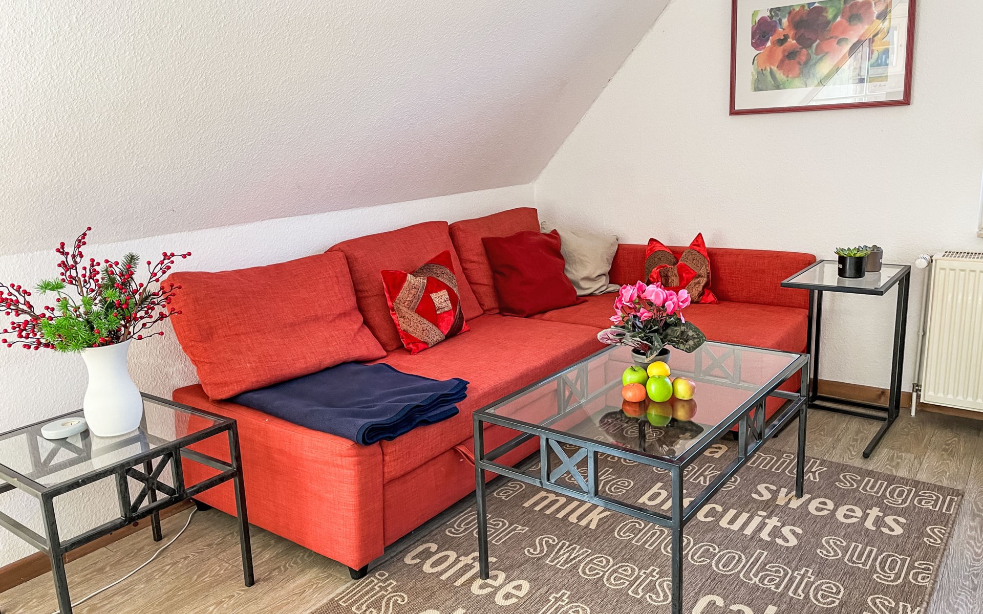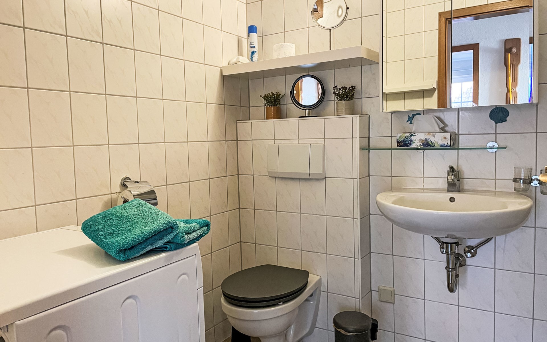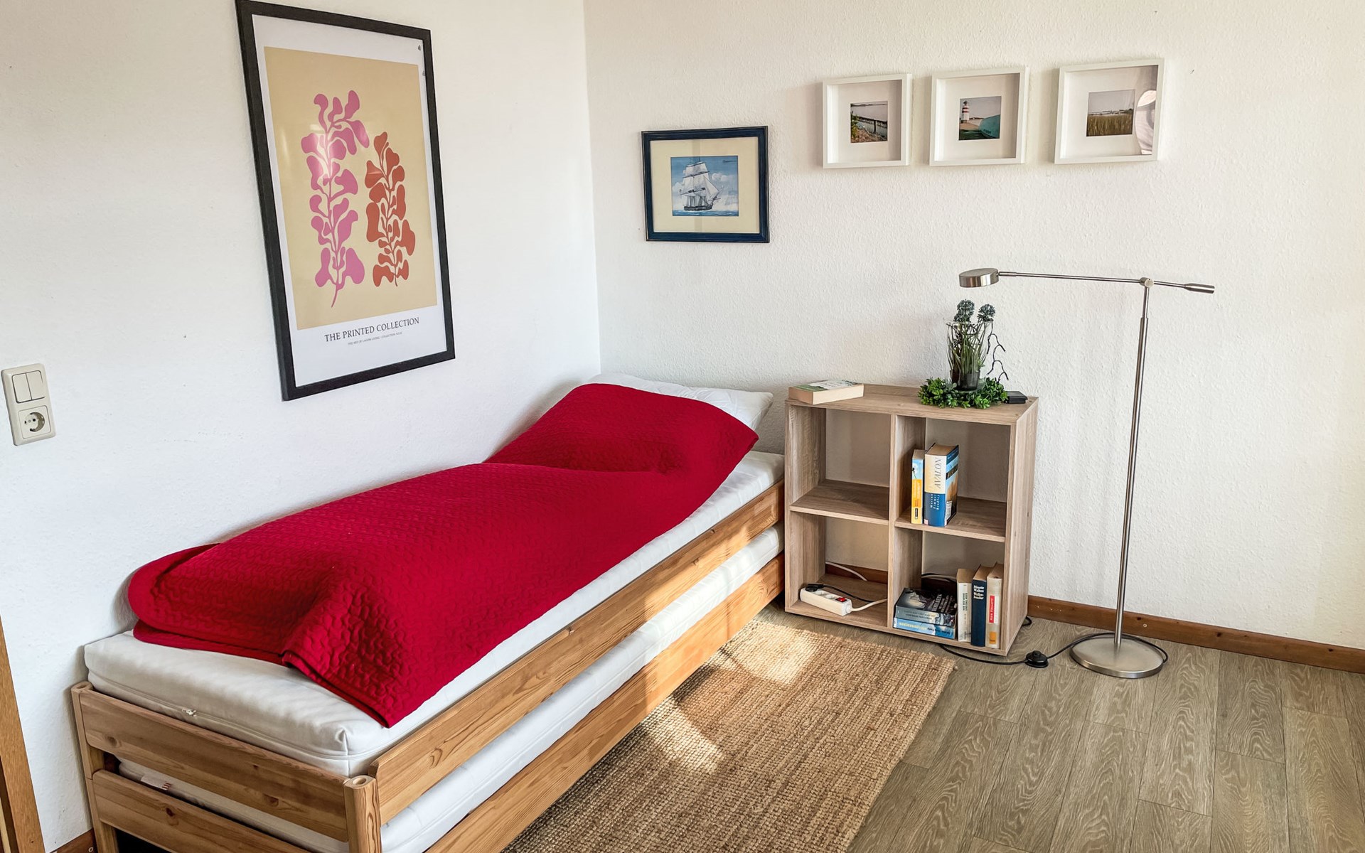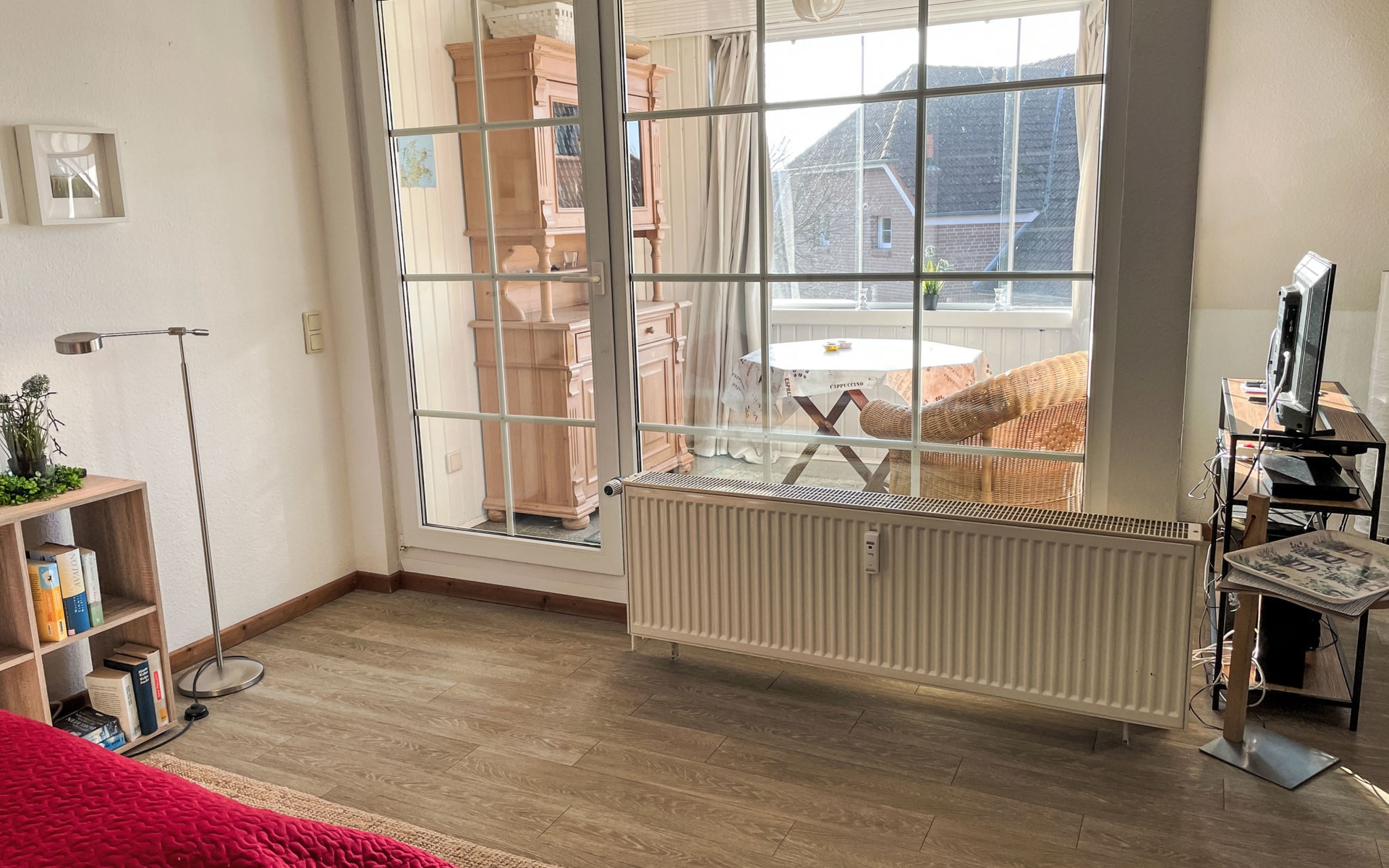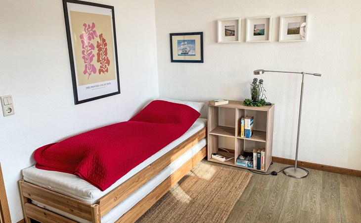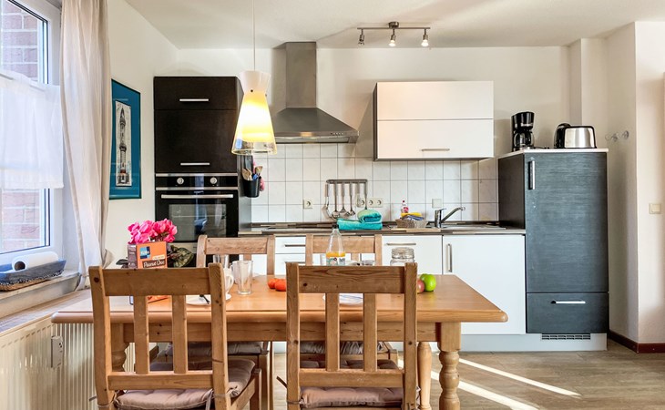 Residentie "Im Dörp, Am Bodden, Jollekieker". 300 m van het centrum van Waase, aan de rand van de plaats, 6 km van het centrum van Gingst, 20 km van het centrum van Bergen auf Rügen, 300 m van zee. Voor medegebruik: terrein 3.500 m2 met gazon en planten. Supermarkt 6 km, restaurant 6 km, zandstrand "Schaabe" 35 km, grasstrand 400 m, overdekt zwembad 35 km. Attracties in de buurt: Wassersportzentrum Suhrendorf 3 km.
