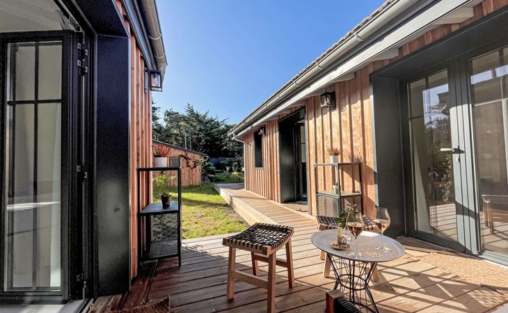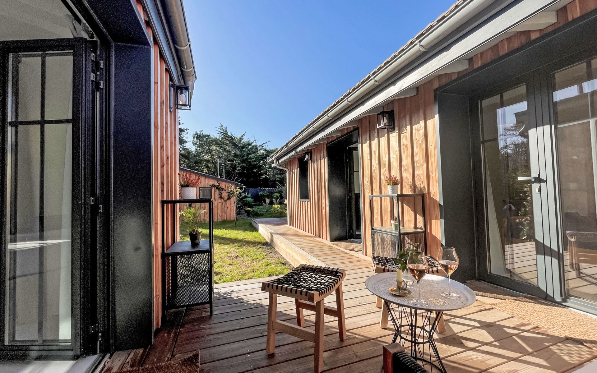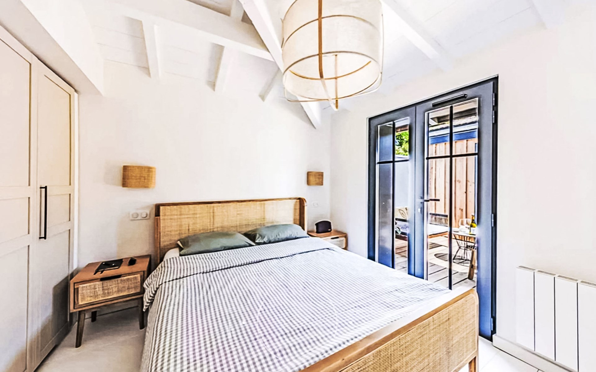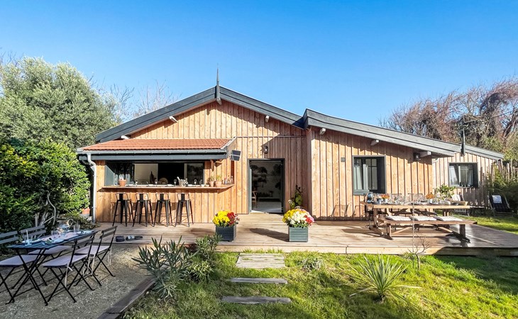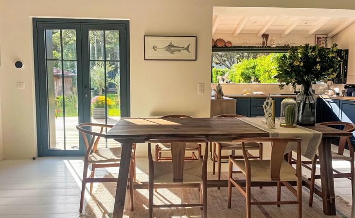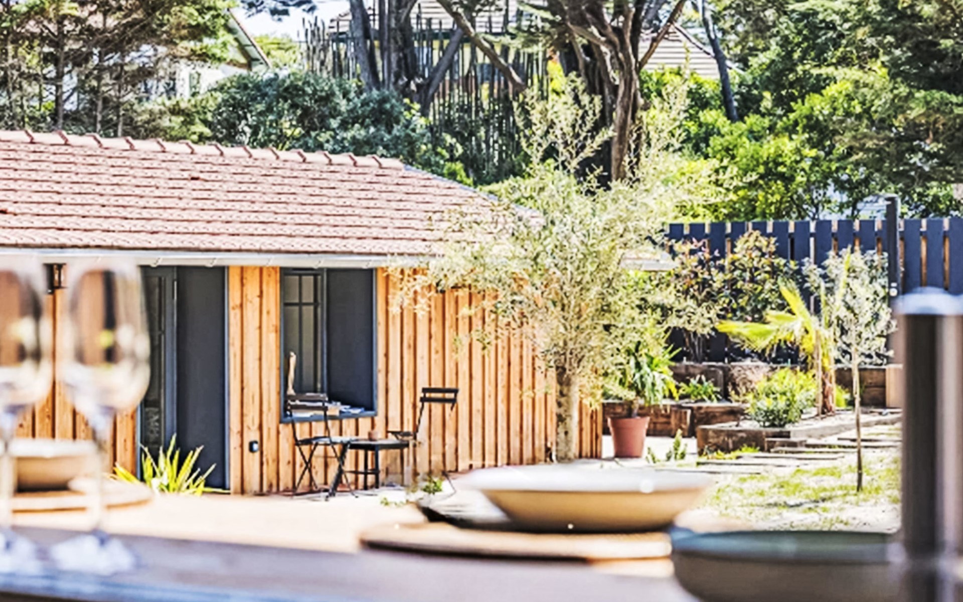 Huis "Les Villas de Rêve à la Mer". Huurobject bestaande uit hoofd-/ bijgebouw, in de plaats, rustige ligging, 100 m van zee, 100 m van het strand. Voor alleengebruik: tuin 530 m2 (omheind), parkeerplaats op het terrein. Levensmiddelenwinkel 1.4 km, supermarkt 1.5 km, restaurant 600 m, bakkerij 1.5 km, bushalte 160 m, treinstation "Arcachon" 8 km, zandstrand "Horizon" 100 m, thermaalbad 30 km. Jachthaven 1.6 km, golfterrein 2.3 km, surfschool 850 m, zeilschool 2 km, tennis 2.4 km, manege 9.5 km. Attracties in de buurt: Arcachon 72 km, Andernos 25 km, Biganos 49 km, Bordeaux 70 km, Phare Cap Ferret 1.7 km.