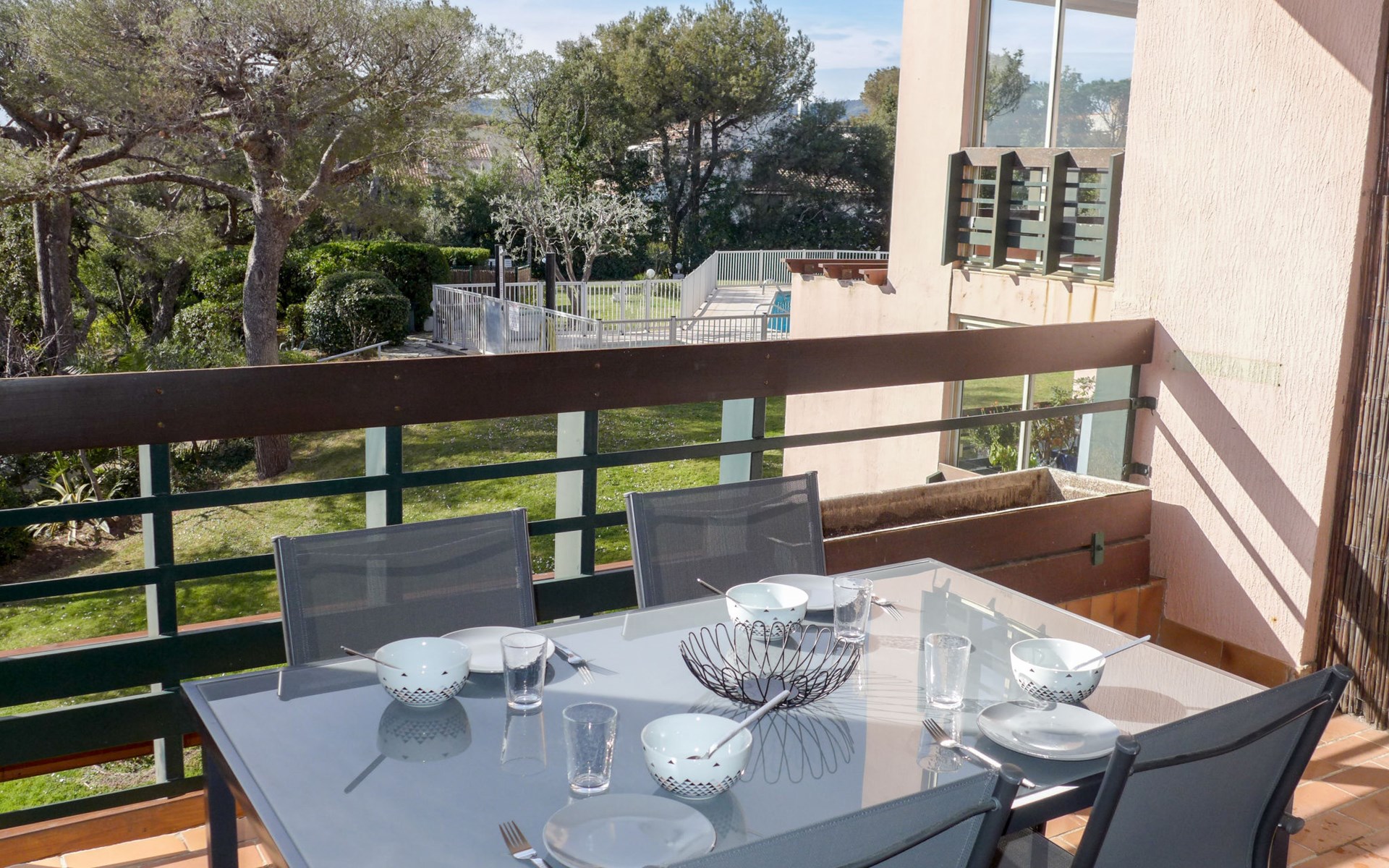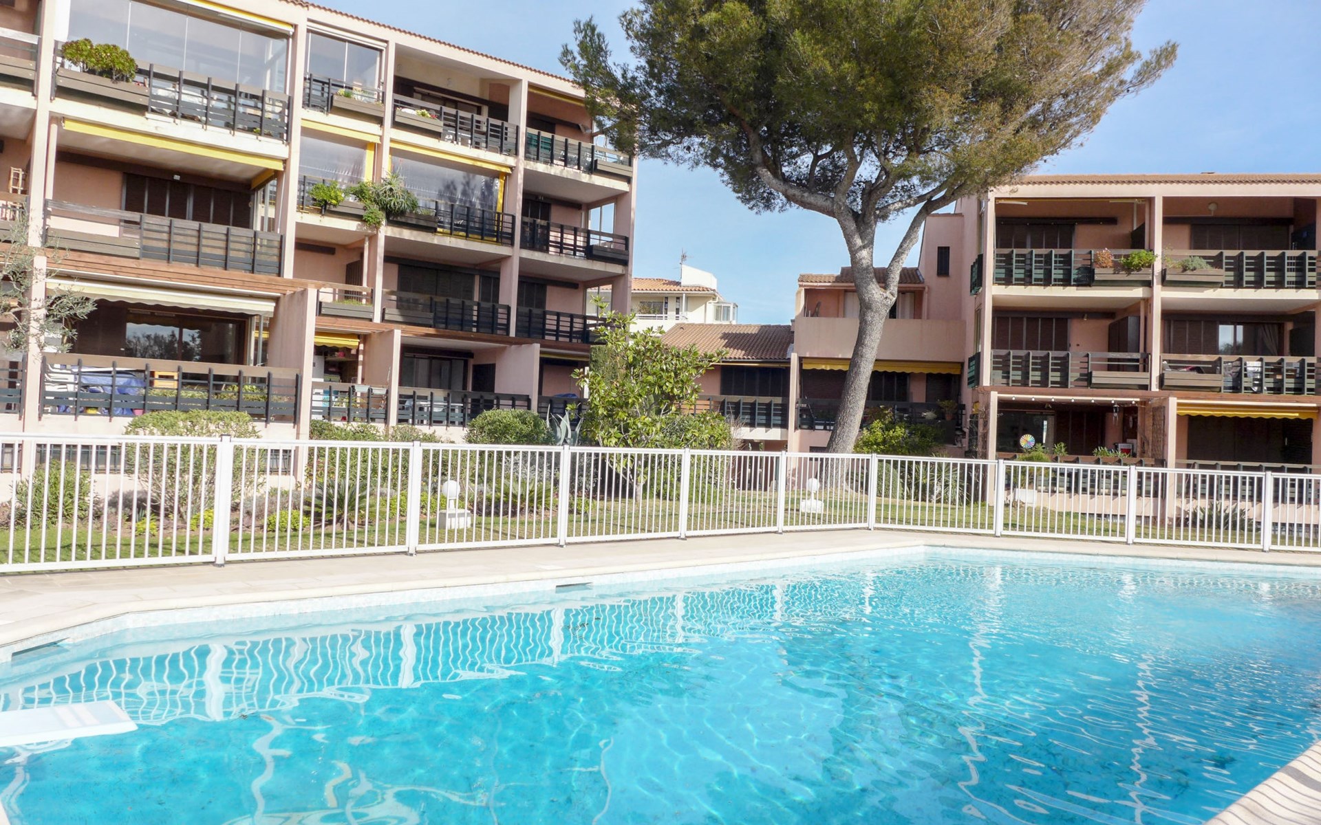 Residentie "Les Caroubiers", van 3 verdiepingen. In de plaats, 300 m van het centrum van Saint Aygulf, 200 m van zee, 200 m van het strand. Voor medegebruik: openluchtzwembad hoekig verwarmd, omheind (6 x 12 m, 80 - 180 cm diepte, seizoensgebonden beschikbaarheid: 15.Mei. - 15.Okt. openingstijden zwembad: 09:00-20:00). Kinderzwembad, buitendouche, jeu de boules. In het huis: bergruimte voor fietsen. Winkel, levensmiddelenwinkel 200 m, supermarkt 300 m, winkelcentrum 4.5 km, restaurant 200 m, bar 400 m, bakkerij, café 200 m, centrum te voet bereikbaar in 5 minuten, bushalte "Saint-Aygulf La Poste" 400 m, zandstrand "Saint Aygulf" 1.5 km kiezelstrand "Calanque des Corailleurs" 200 m, park "Areca" 900 m, thermaalbad "Thalasso de Port Fréjus" 5 km. Jachthaven 1.6 km, golfterrein (18 holes) 7.5 km, zeilschool 6 km, manege 7 km. Attracties in de buurt: Lunapark, Aqualand 4.5 km, Nice 71 km, Fréjus 5 km, Saint Raphaël 7 km, Saint Tropez 30 km, Cannes 47 km. Bekende skigebieden kunnen gemakkelijk worden bereikt: Auron, Isola 2000 150 km. Bekende meren kunnen gemakkelijk worden bereikt: Lac de St Cassien 45 km, Lac du Du Verdon 90 km. Wandelgebied Estérel 16 km, Sentier du Littoral 200 m. Gesloten residentie met een elektrische deur. De sleuteloverdracht vindt plaats bij het agentschap Interhome in Saint Aygulf.