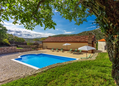 Moderne villa "Luna Rossa", van 2 verdiepingen. 6 km van het centrum van Žminj, 13 km van het centrum van Pazin, rustige, zonnige ligging, 27 km van zee. Voor alleengebruik: terrein 600 m2, mooie, verzorgde tuin, openluchtzwembad hoekig (5 x 10 m, 140 cm diepte, seizoensgebonden beschikbaarheid: 01.Jan. - 31.Dec.) met trap. Buitendouche, terras (20 m2), tuinmeubelen, barbecue. In het huis: internetaansluiting, wasmachine, droger. Overdekte parkeerplaats (voor 3 auto's) bij het huis op het terrein. Winkel 600 m, supermarkt 6 km, restaurant 1 km, café 400 m, bushalte 7 km, treinstation 500 m, kiezelstrand 27 km. Manege 7 km, wandelroutes 1 km vanaf het huis, fietspad 1 km. Groepen jongeren uitsluitend op aanvraag.