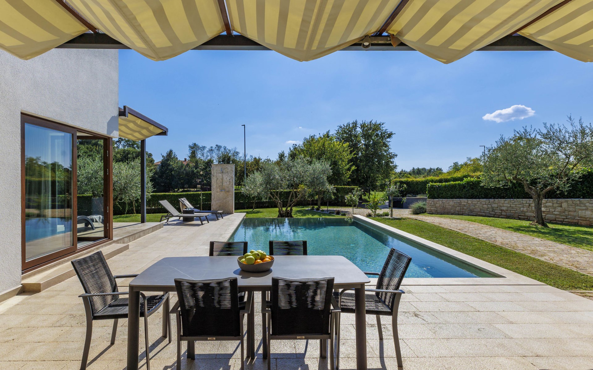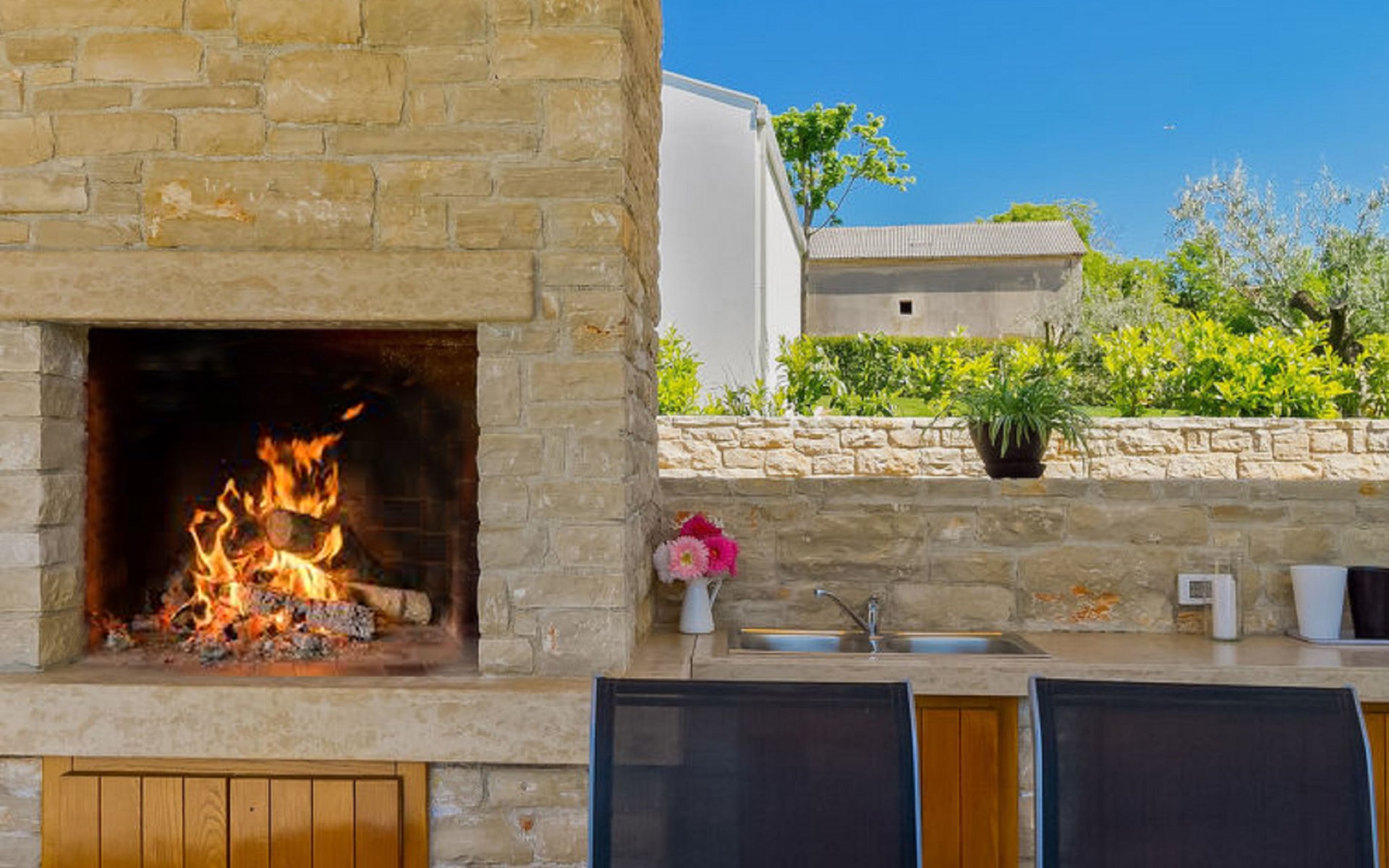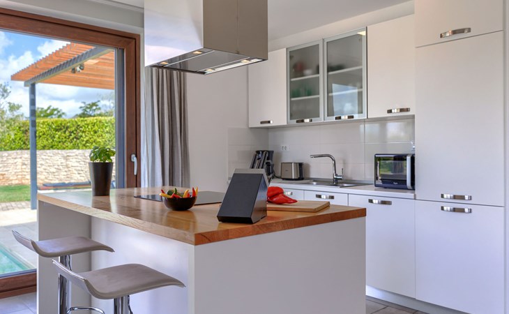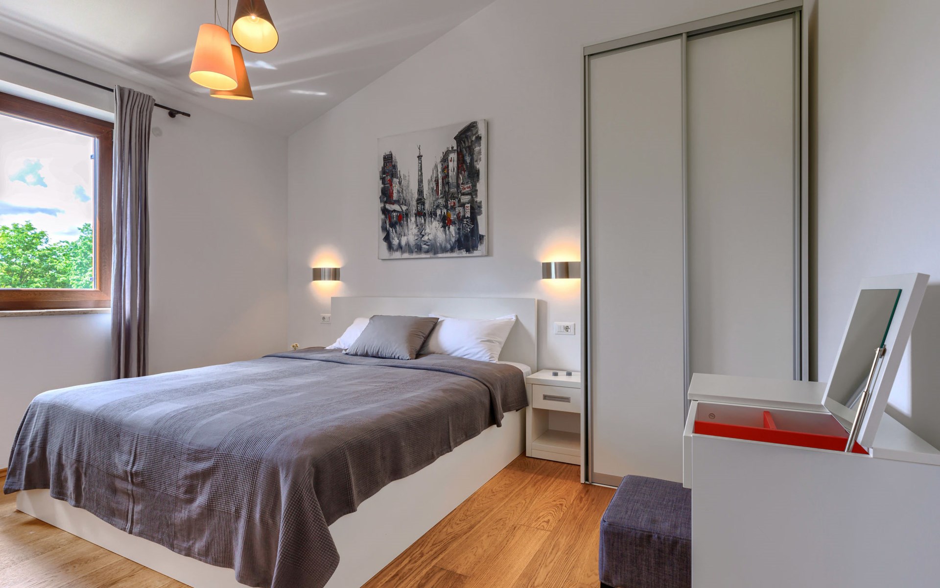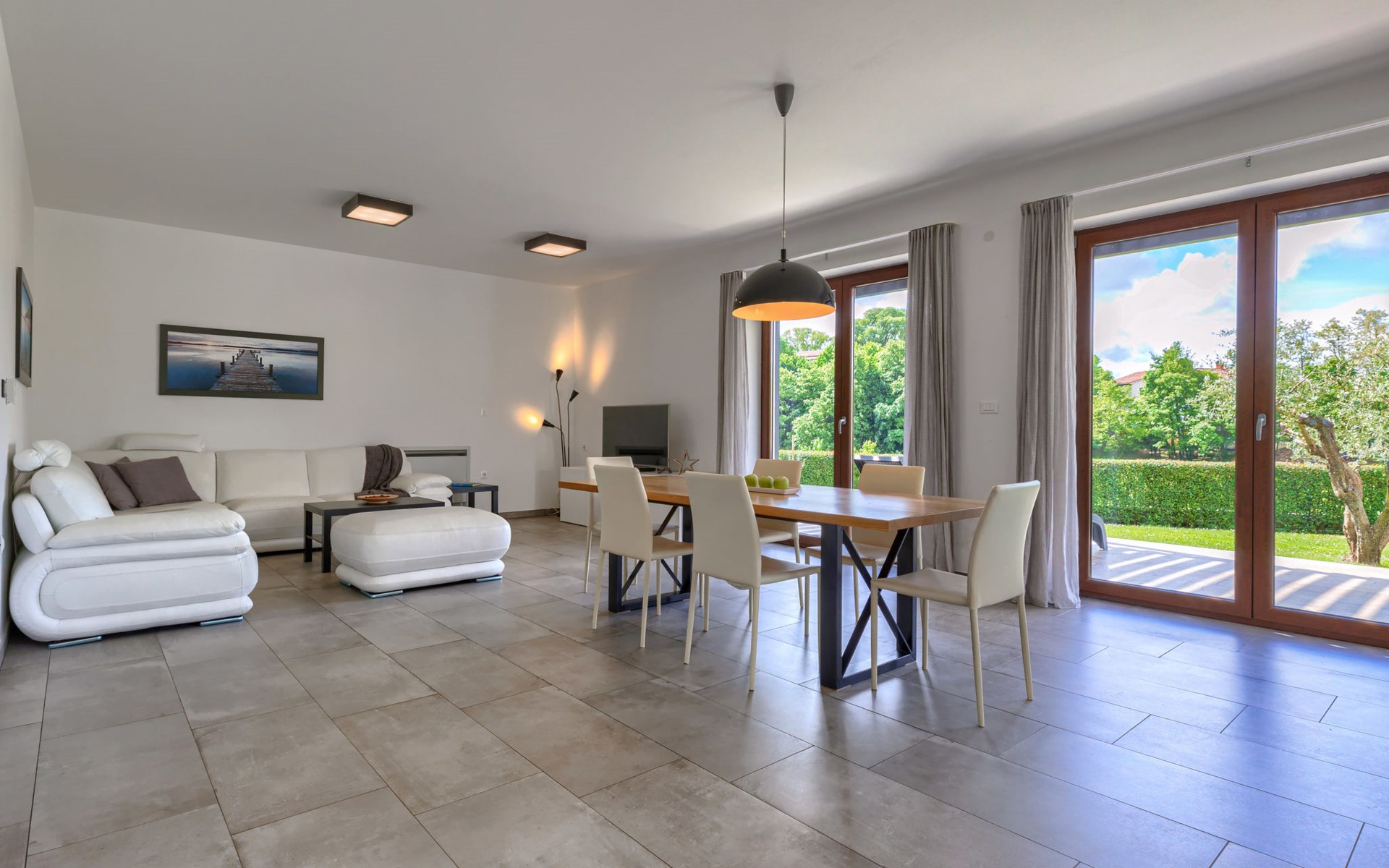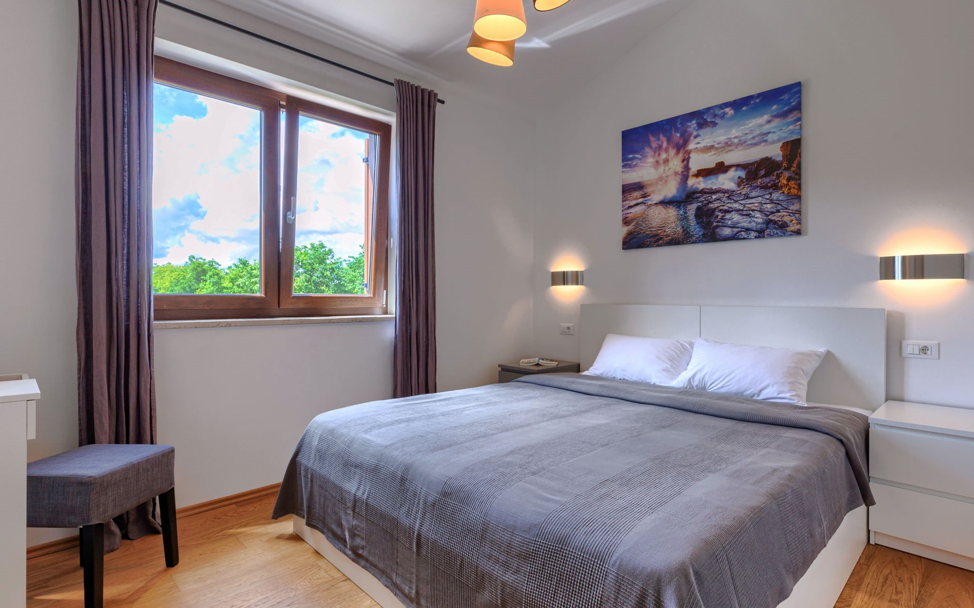 Moderne villa "Luna Nera", van 2 verdiepingen. 6 km van het centrum van Žminj, 13 km van het centrum van Pazin, rustige, zonnige ligging, 27 km van zee. Voor alleengebruik: terrein 1.000 m2, mooie, verzorgde tuin met gazon en planten, openluchtzwembad hoekig (10 x 5 m, 140 cm diepte, seizoensgebonden beschikbaarheid: 01.Jan. - 31.Dec.) met trap. Buitendouche, prieel (30 m2), tuinmeubelen, barbecue. In het huis: internetaansluiting, wasmachine, droger. Parkeerplaats bij het huis op het terrein. Winkel 600 m, supermarkt 6 km, restaurant 1 km, café 400 m, bushalte 6.6 km, treinstation 500 m, kiezelstrand 27 km. Manege 7 km, wandelroutes 1 km vanaf het huis, fietspad 1 km. Groepen jongeren uitsluitend op aanvraag.