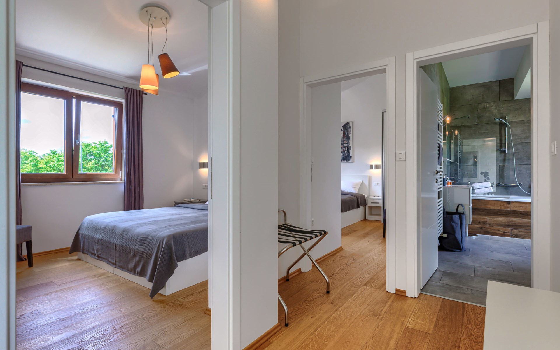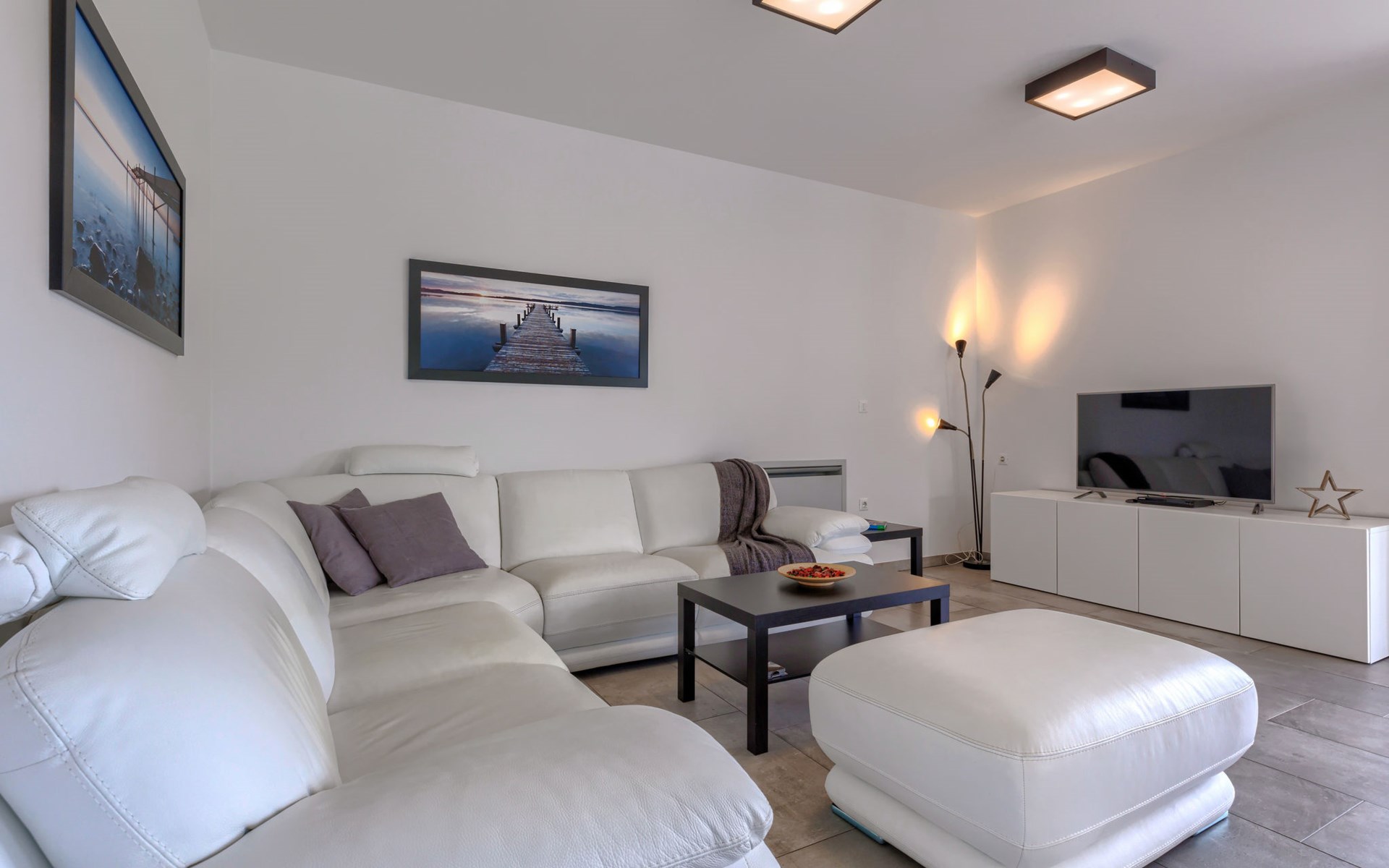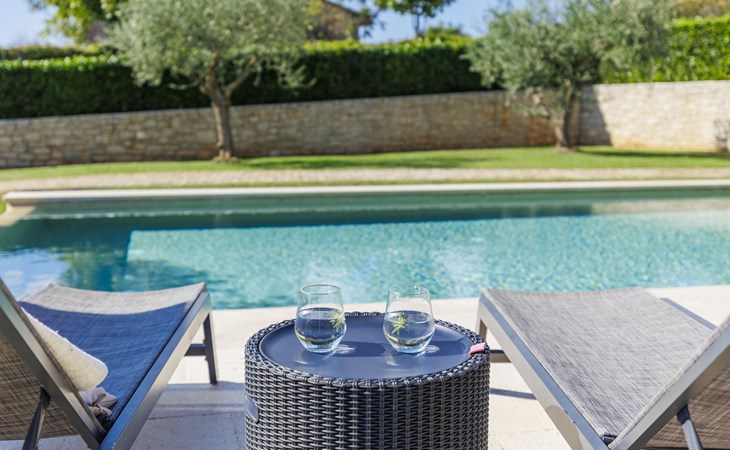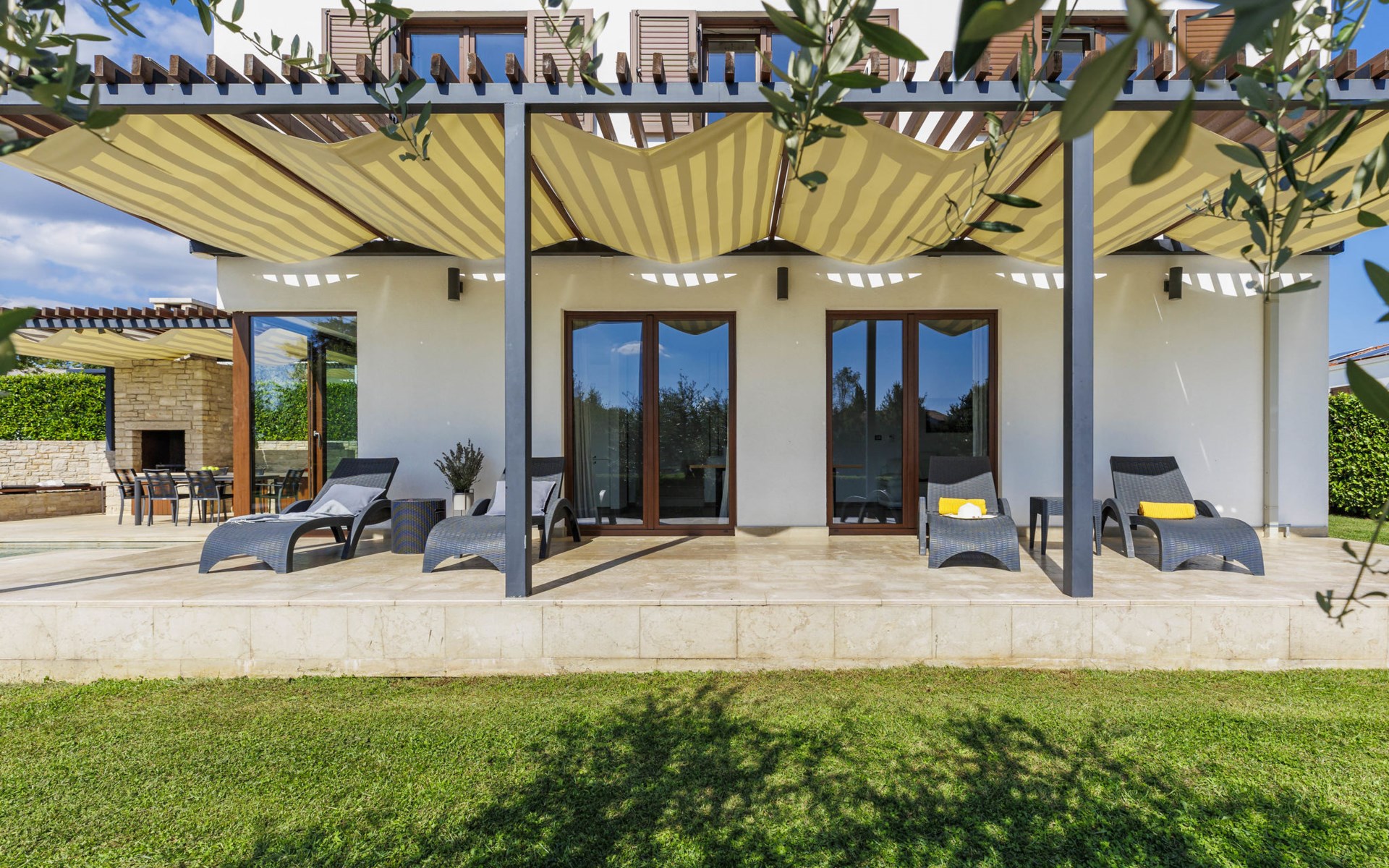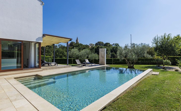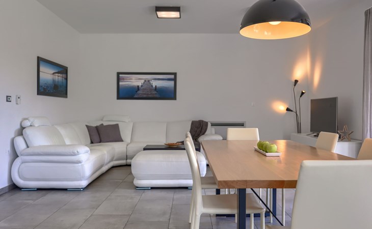 Moderne villa "Luna Nera", van 2 verdiepingen. 6 km van het centrum van Žminj, 13 km van het centrum van Pazin, rustige, zonnige ligging, 27 km van zee. Voor alleengebruik: terrein 1.000 m2, mooie, verzorgde tuin met gazon en planten, openluchtzwembad hoekig (10 x 5 m, 140 cm diepte, seizoensgebonden beschikbaarheid: 01.Jan. - 31.Dec.) met trap. Buitendouche, prieel (30 m2), tuinmeubelen, barbecue. In het huis: internetaansluiting, wasmachine, droger. Parkeerplaats bij het huis op het terrein. Winkel 600 m, supermarkt 6 km, restaurant 1 km, café 400 m, bushalte 6.6 km, treinstation 500 m, kiezelstrand 27 km. Manege 7 km, wandelroutes 1 km vanaf het huis, fietspad 1 km. Groepen jongeren uitsluitend op aanvraag.