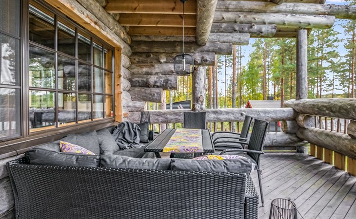 122 km to the north from Jyväskylä, lake Keitele 30 m, shallow sand-bottomed beach with some stones and gravel, 2 own piers and rowing boat. Kelo-log cabin (2021). On the ground floor, living room / sauna facilities (electric sauna stove), shower, hydro massage bath, WC and washing machine with drying functionality. In the living room, there is sofa, fireplace, 70" TV.