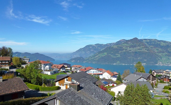 Emmetten 28 km van Luzern: Moderne, mooi, comfortabel appartementencomplex "ELFE Apartments", 780 m boven zeeniveau, van 3 verdiepingen, omgeven door bomen. 3 huizen in de woning. Boven Beckenried, aan de rand van de plaats, 400 m van het centrum van Emmetten, in het district Vierwaldstättersee, rustige, verhoogde ligging, perfecte locatie: in het centrum en toch rustig gelegen, 6 km van het meer, 300 m van het skigebied, te midden van groen. Voor medegebruik: terrein. In het huis: bergruimte voor fietsen, berging voor ski's, centrale verwarming, wasmachine (voor medegebruik, extra), droogruimte. Toegangsweg tot aan het huis. 's winters 4x4 aanbevolen. Parkeerplaats (beperkt aantal) bij het huis, in de winter 30 m gemeenschappelijke garage (extra) bij het huis. Winkel 500 m, levensmiddelenwinkel, restaurant 300 m, bakkerij 500 m, bushalte 500 m, station "Stans SBB" 12 km, openluchtzwembad 6 km, meer Vierwaldstätersee 6 km. Midgetgolf 6 km, wandelroutes 1 m vanaf het huis, bergtrein 300 m. Attracties in de buurt: Rigi, Pilatus, Stanserhorn (Cabriobahn), Bürgerstock, Niederbauen, Glasi, Hergiswil, Bike-Arena, Emmetten, Tritt - Hütte 1600 m.ü.M. Bekende skigebieden kunnen gemakkelijk worden bereikt: Stockhütte 7 km, Klewenalp 19 km, Seelisberg 8 km. Bekende meren kunnen gemakkelijk worden bereikt: Vierwaldstättersee 4 km, Urnersee, Seelisbergsee. Wandelgebied Route 1 Klewenalp-Stockhütte ca. 2h, Route 2 Panoramarundwanderweg ca. 1,5h, Route 6 Klewenalp-Gitschenen ca. 3,5h. Auto noodzakelijk. Geschikt voor families, geschikt voor senioren. Bij goede skicondities is het huis bereikbaar per ski. Autobaan 5 km van het huis. De afgebeelde foto is slechts een voorbeeld. Vergelijkbare accommodaties kunnen worden geboekt. Object referentie: CH6376.400 is gelegen op hetzelfde terrein.