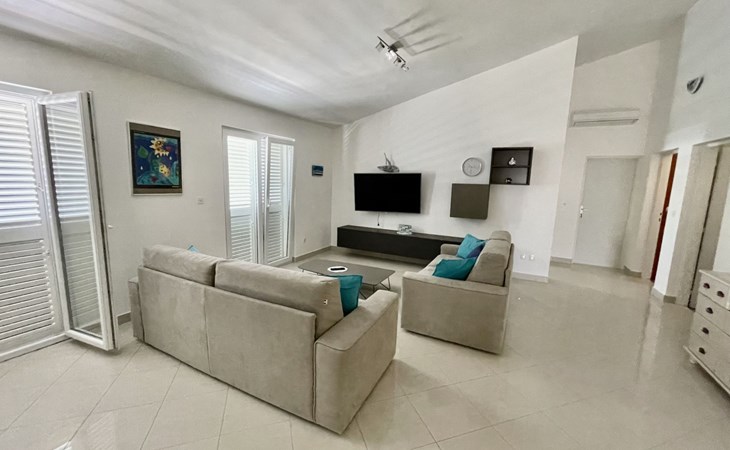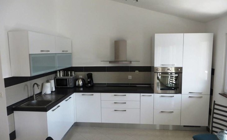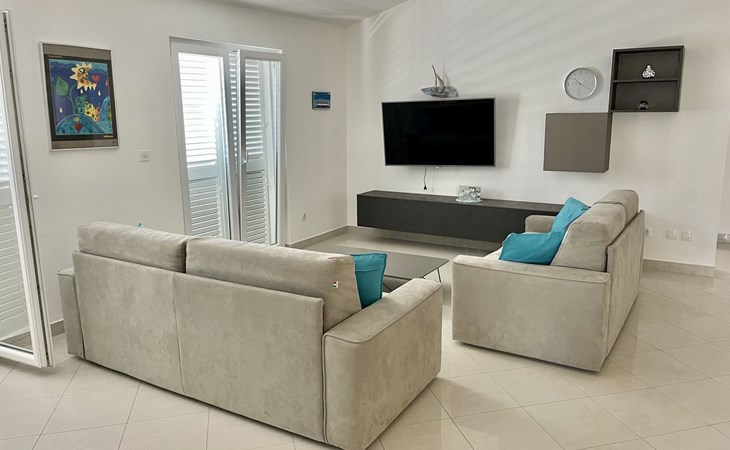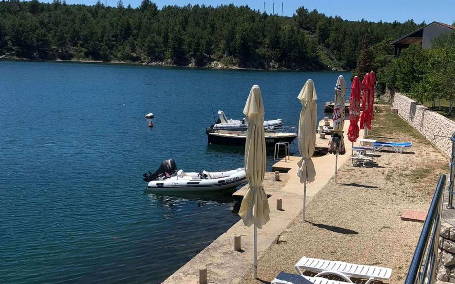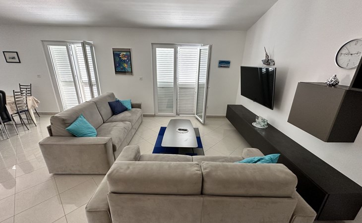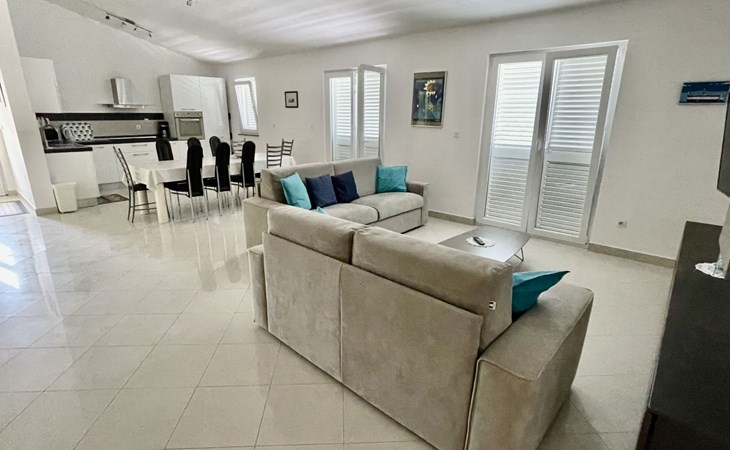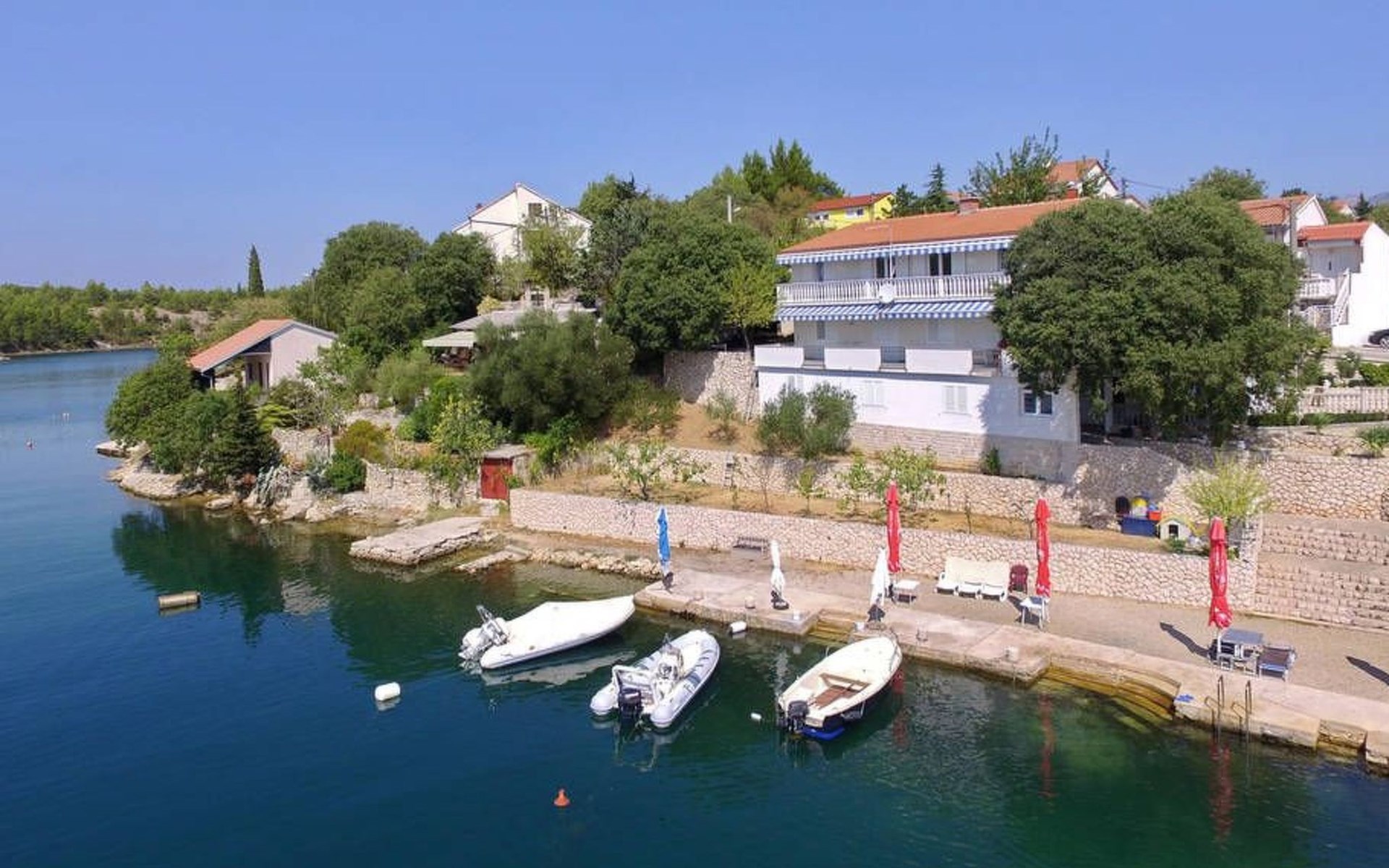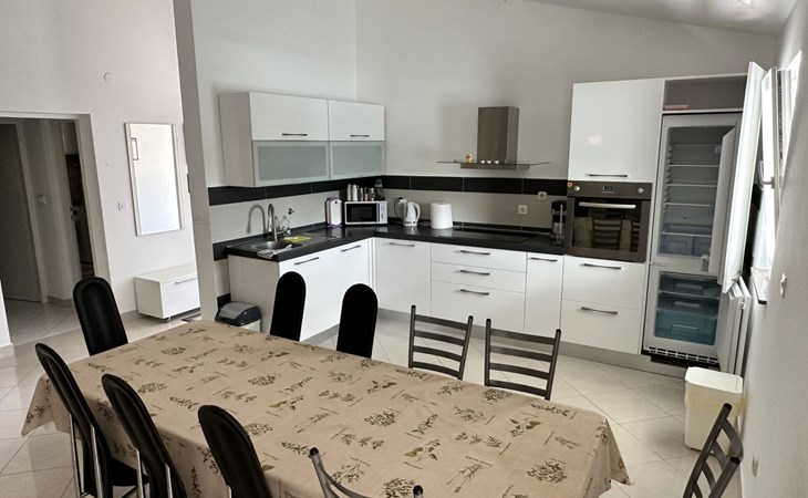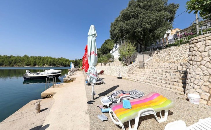 The flat is located in Kruševo, district Ribnica on Karinsko sea.Concrete beach with large parasols, sunbeds and garden shower.Our guests can use the beach as well as our parasols and free sunbeds on the beach in front of the accommodation.Outdoor barbecue with a terrace in the yard are also free to use.All our guests have a berth for the boat directly in front of the house.The flat is located on the 1st floor of the house near the sea, has 120m² and consists of 4 double bedrooms, a 50m² living room with kitchen and dining room, bathroom with shower and toilet, extra toilet, balcony, garden shower and much more. The flat is air-conditioned and comfortably equipped and cosily furnished: with satellite TV, internet, air conditioning, ceramic hob with 4 ceramic hotplates, oven, fridge, coffee pod machine and filter coffee machine with thermos, kettle, dishwasher, crockery and cutleryIt is possible to organise excursions by boat (river Zrmanja, Novigrad, Maslenica). As well as the possibility of going to the Paklenica National Park, bungee jumping from the Maslenica Bridge or visiting the Krka waterfalls. Take a boat trip to the Kornati National Park or the Zrmanja waterfalls.Countless excursion options are on offer: Paklenica NP, Zrmanja River, North Velebit Nature Park, Modric Cave, Zadar, Nin, Plitvice Lakes NP, Krka Waterfalls NP, Kornati NP etc.