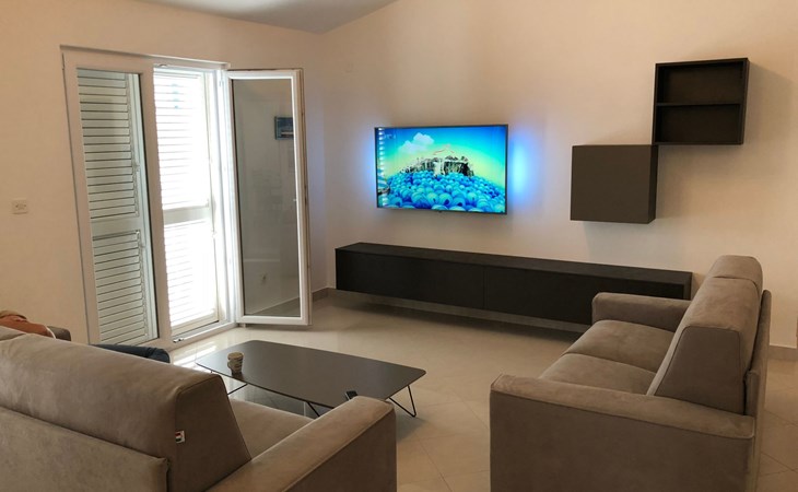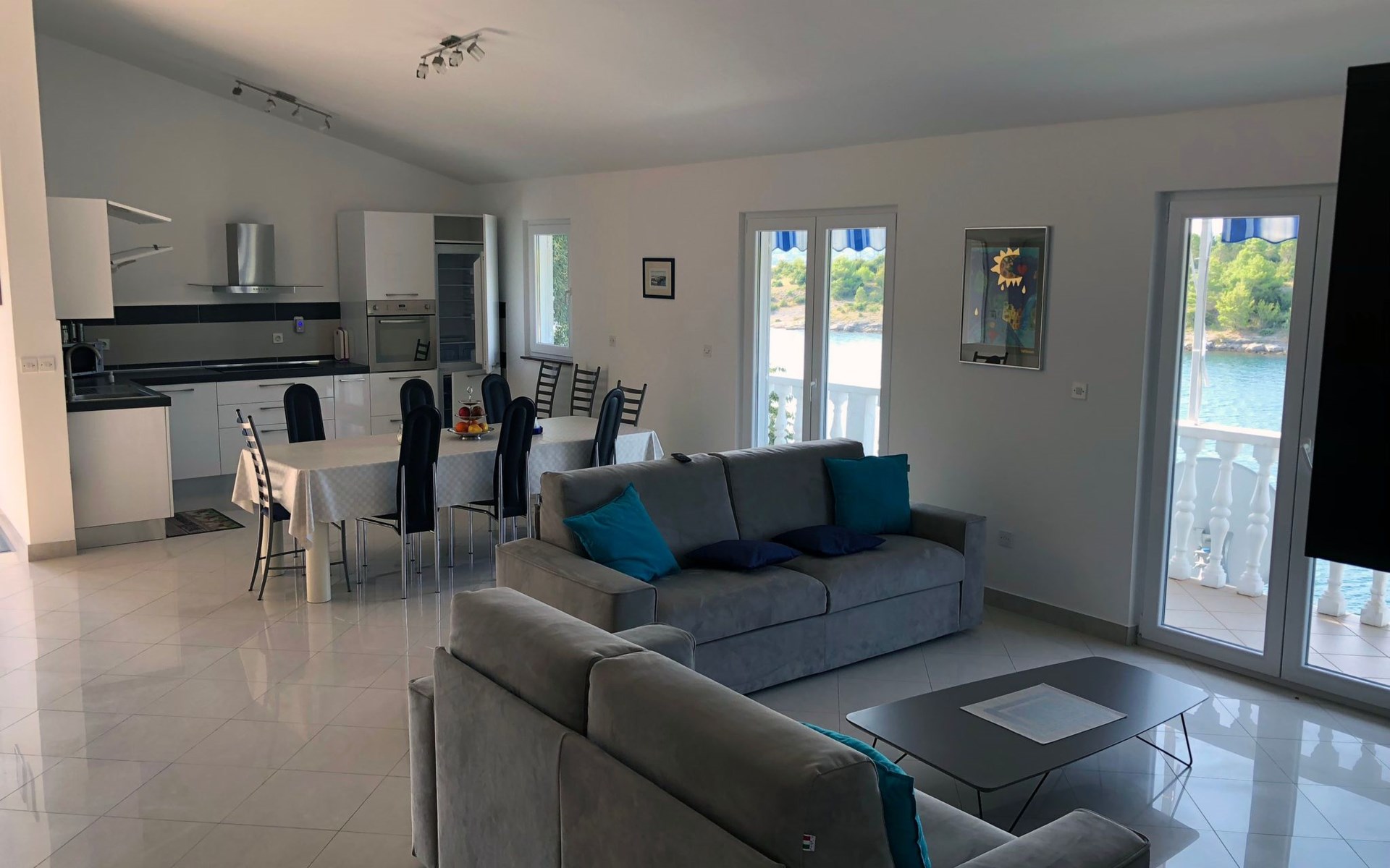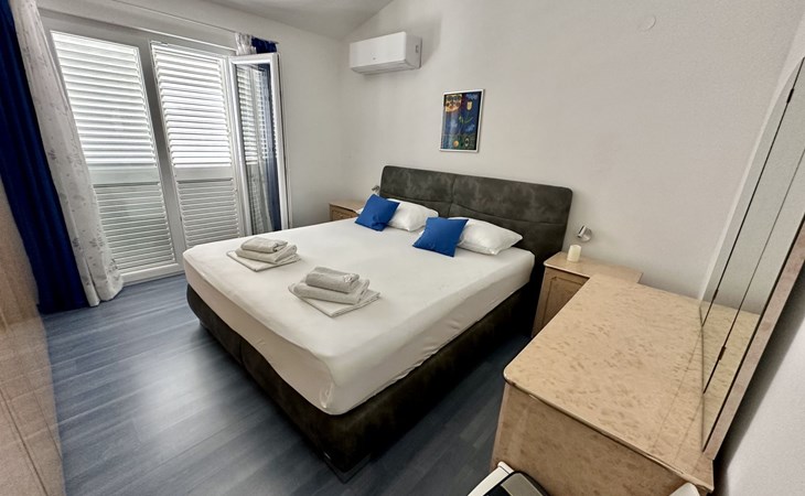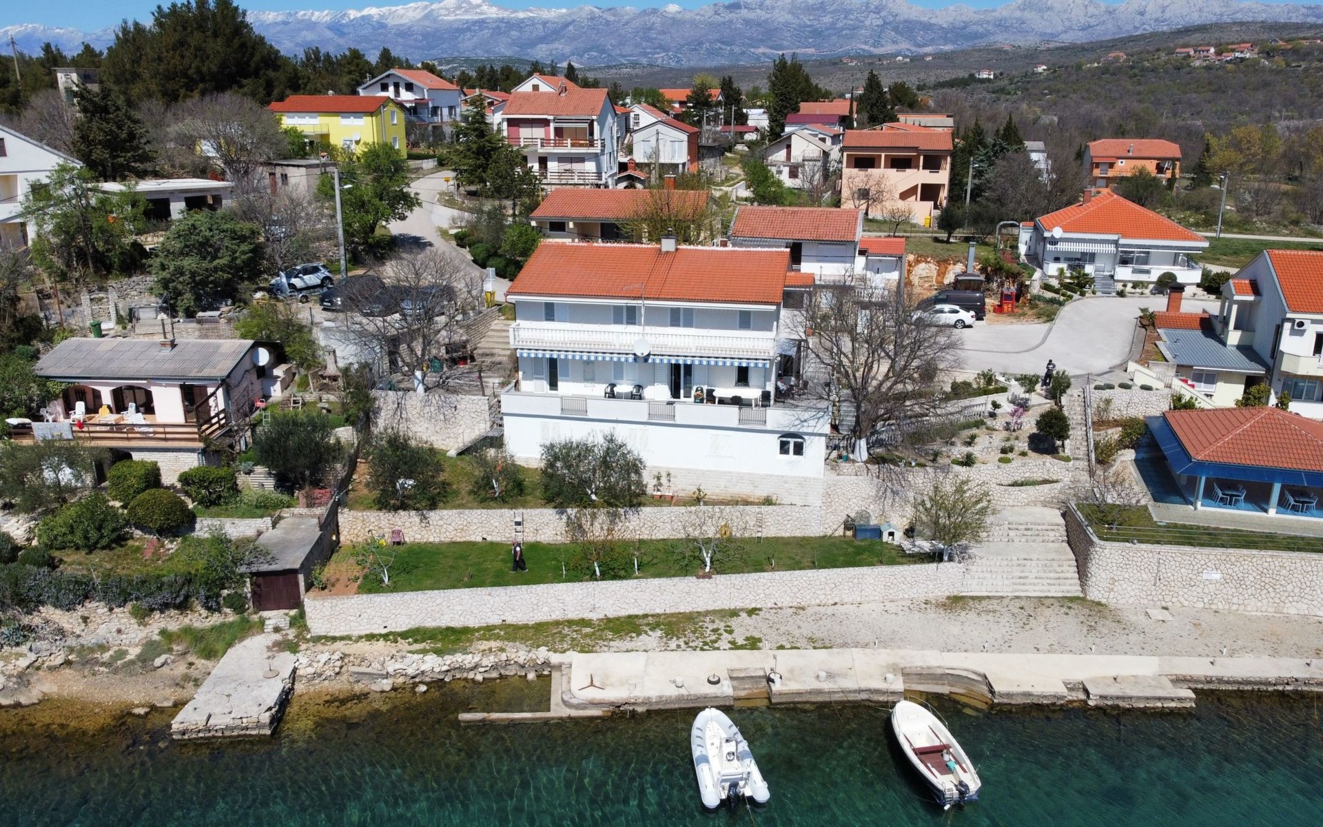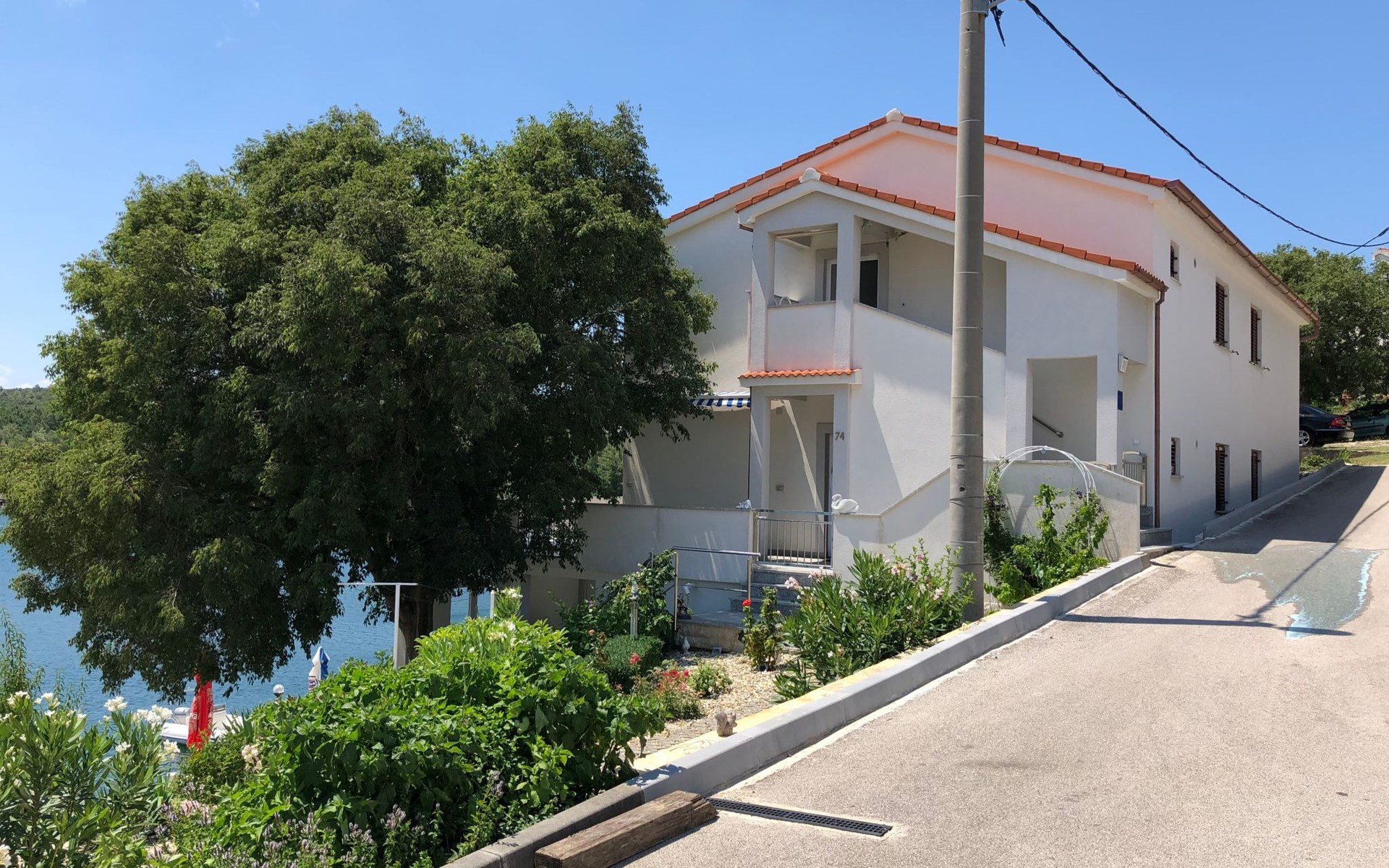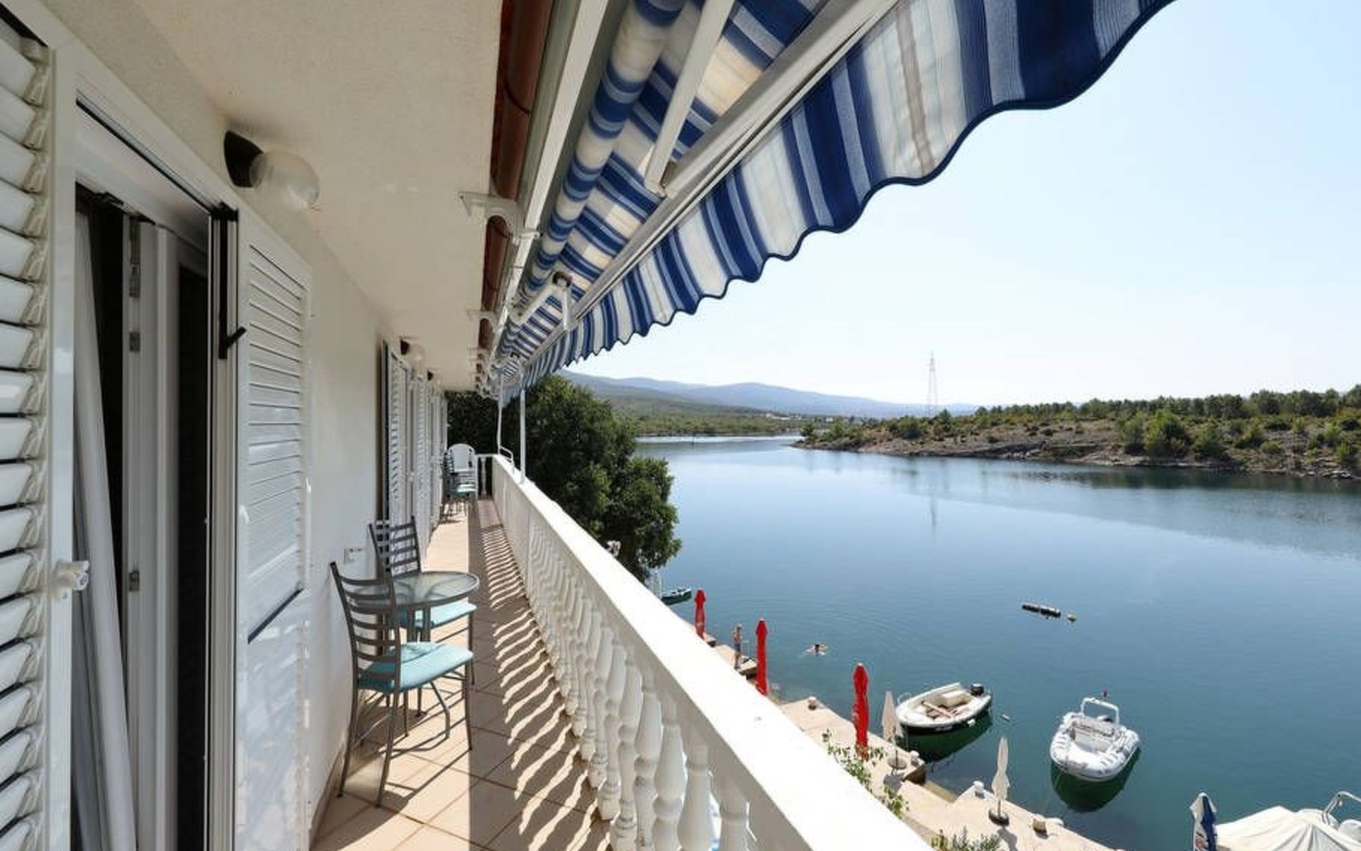 The flat is located in Kruševo, district Ribnica on Karinsko sea.Concrete beach with large parasols, sunbeds and garden shower.Our guests can use the beach as well as our parasols and free sunbeds on the beach in front of the accommodation.Outdoor barbecue with a terrace in the yard are also free to use.All our guests have a berth for the boat directly in front of the house.The flat is located on the 1st floor of the house near the sea, has 120m² and consists of 4 double bedrooms, a 50m² living room with kitchen and dining room, bathroom with shower and toilet, extra toilet, balcony, garden shower and much more. The flat is air-conditioned and comfortably equipped and cosily furnished: with satellite TV, internet, air conditioning, ceramic hob with 4 ceramic hotplates, oven, fridge, coffee pod machine and filter coffee machine with thermos, kettle, dishwasher, crockery and cutleryIt is possible to organise excursions by boat (river Zrmanja, Novigrad, Maslenica). As well as the possibility of going to the Paklenica National Park, bungee jumping from the Maslenica Bridge or visiting the Krka waterfalls. Take a boat trip to the Kornati National Park or the Zrmanja waterfalls.Countless excursion options are on offer: Paklenica NP, Zrmanja River, North Velebit Nature Park, Modric Cave, Zadar, Nin, Plitvice Lakes NP, Krka Waterfalls NP, Kornati NP etc.