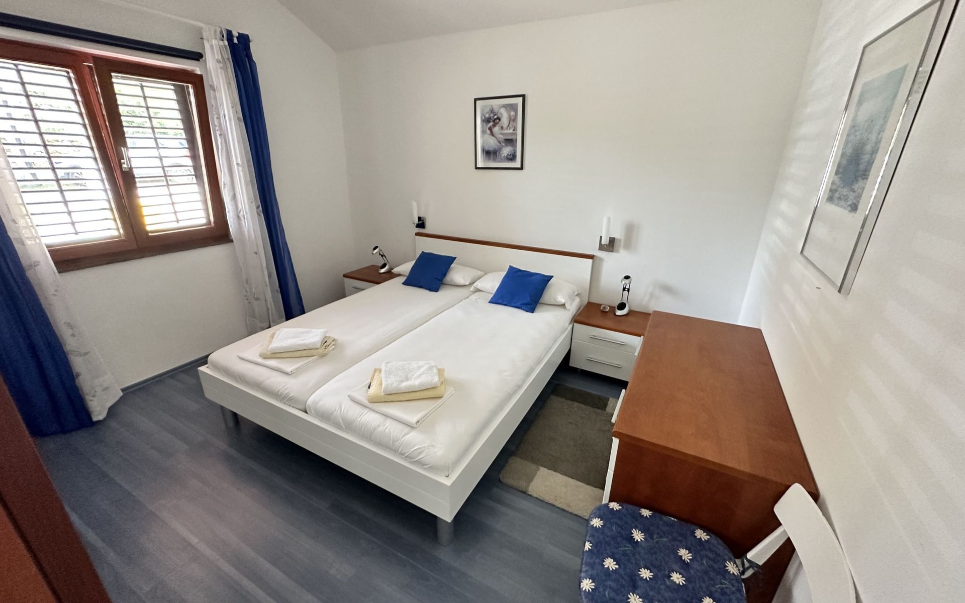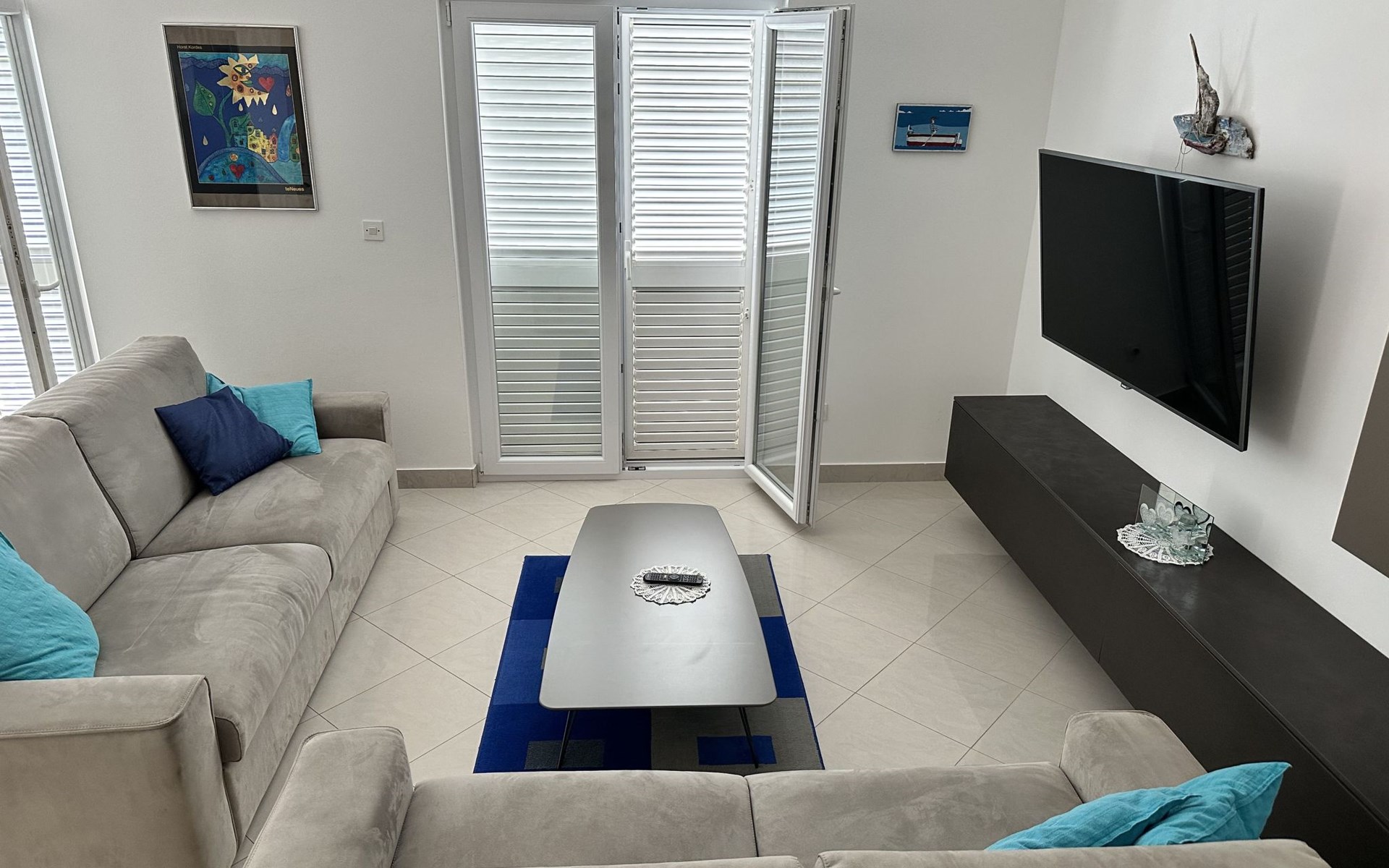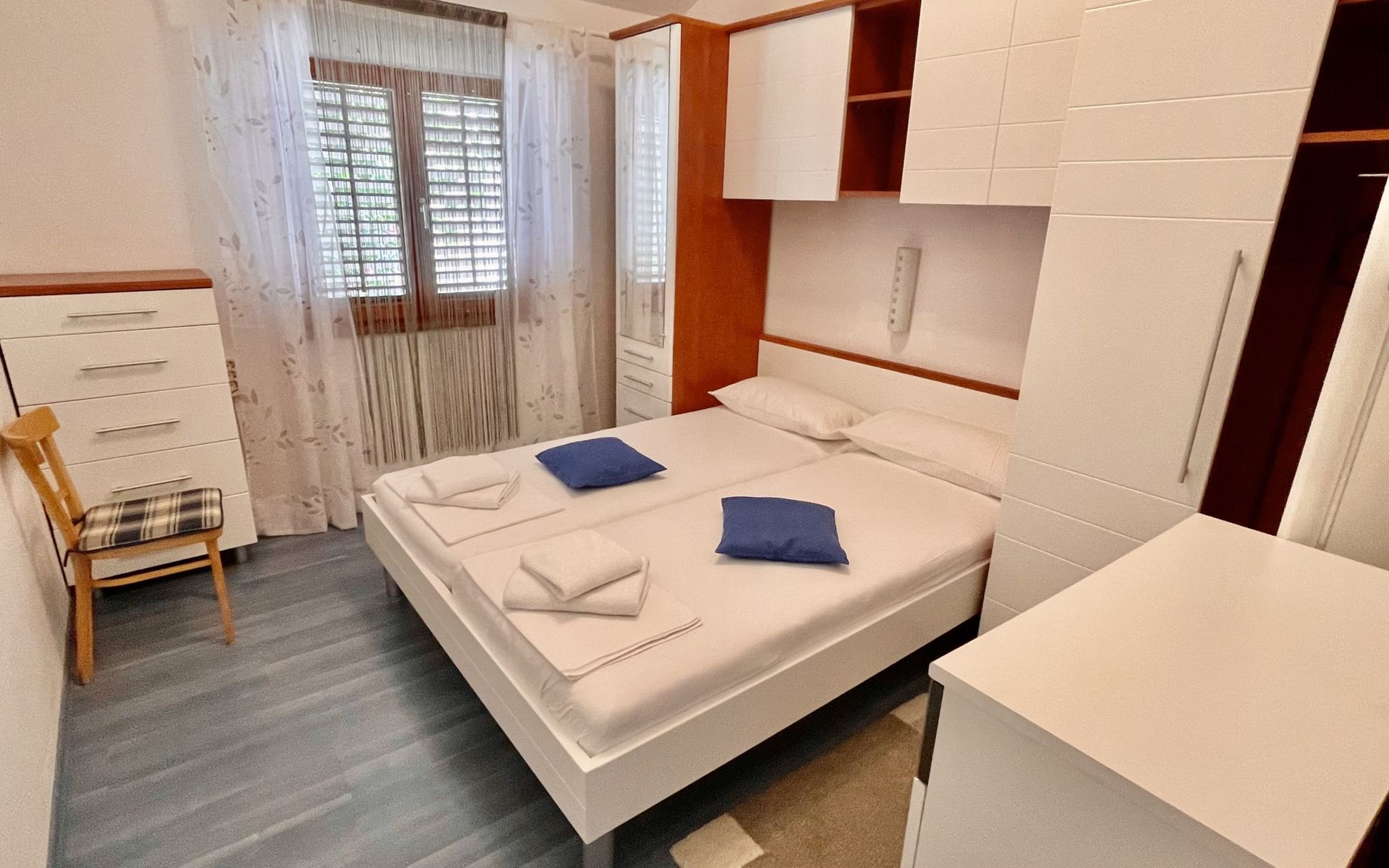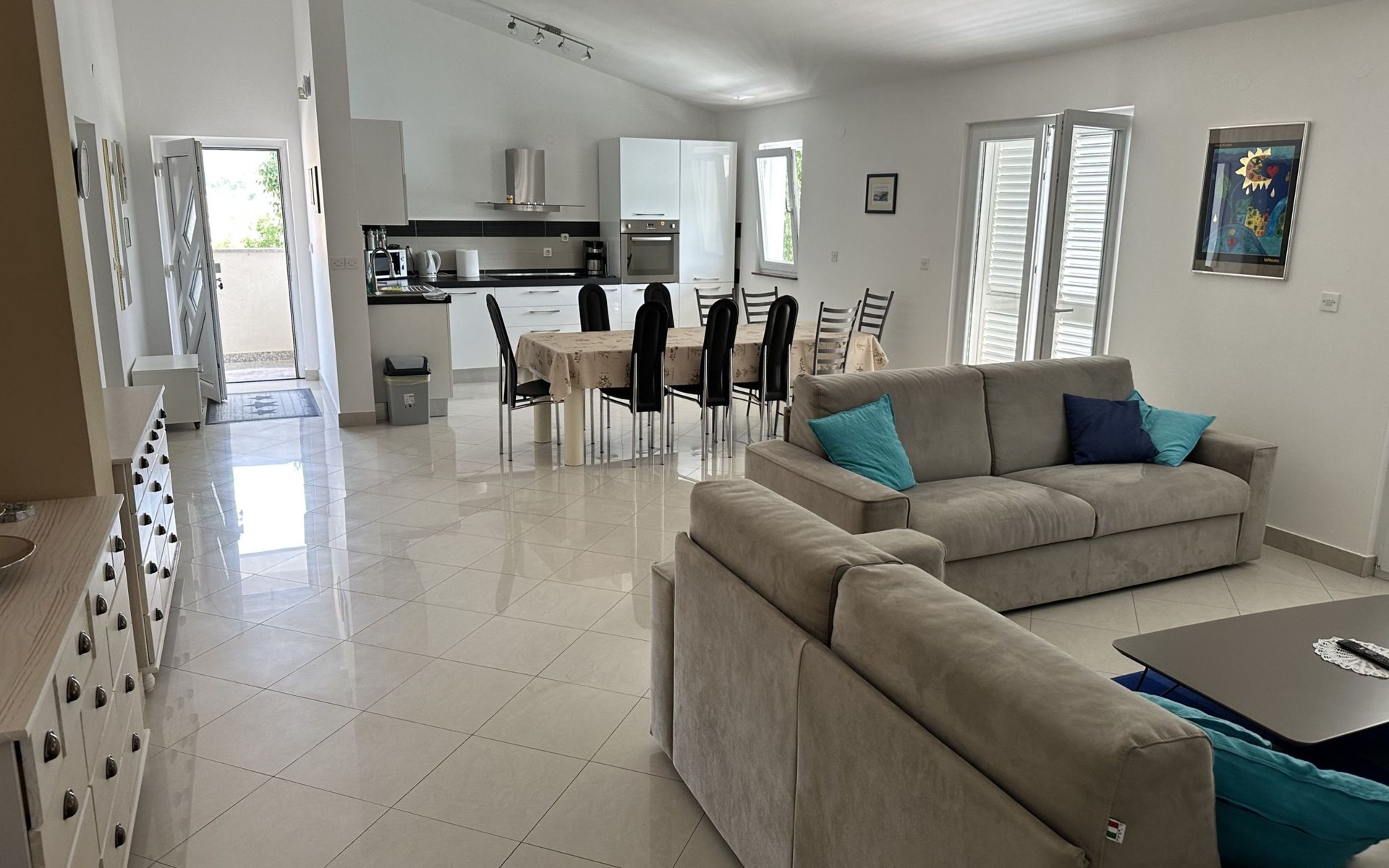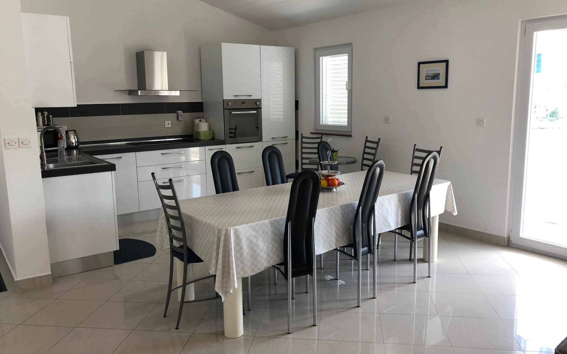 The flat is located in Kruševo, district Ribnica on Karinsko sea.Concrete beach with large parasols, sunbeds and garden shower.Our guests can use the beach as well as our parasols and free sunbeds on the beach in front of the accommodation.Outdoor barbecue with a terrace in the yard are also free to use.All our guests have a berth for the boat directly in front of the house.The flat is located on the 1st floor of the house near the sea, has 120m² and consists of 4 double bedrooms, a 50m² living room with kitchen and dining room, bathroom with shower and toilet, extra toilet, balcony, garden shower and much more. The flat is air-conditioned and comfortably equipped and cosily furnished: with satellite TV, internet, air conditioning, ceramic hob with 4 ceramic hotplates, oven, fridge, coffee pod machine and filter coffee machine with thermos, kettle, dishwasher, crockery and cutleryIt is possible to organise excursions by boat (river Zrmanja, Novigrad, Maslenica). As well as the possibility of going to the Paklenica National Park, bungee jumping from the Maslenica Bridge or visiting the Krka waterfalls. Take a boat trip to the Kornati National Park or the Zrmanja waterfalls.Countless excursion options are on offer: Paklenica NP, Zrmanja River, North Velebit Nature Park, Modric Cave, Zadar, Nin, Plitvice Lakes NP, Krka Waterfalls NP, Kornati NP etc.