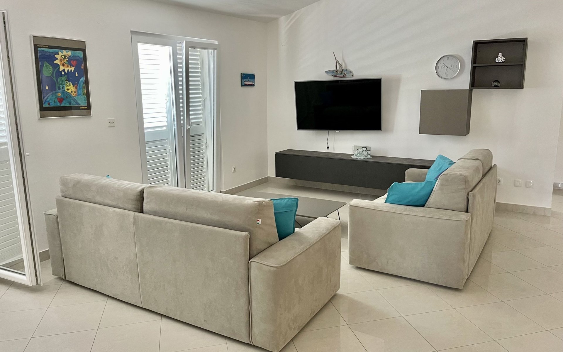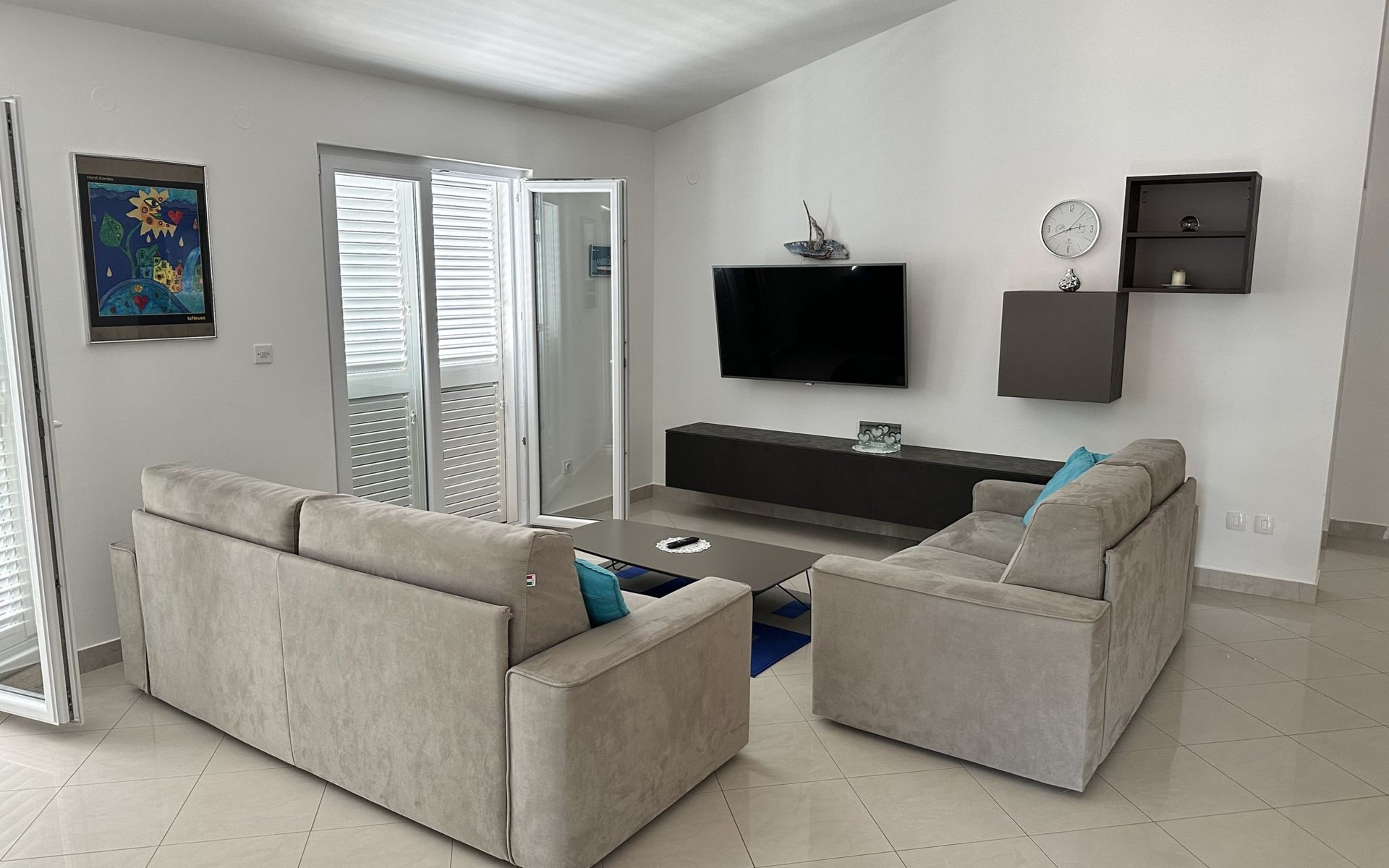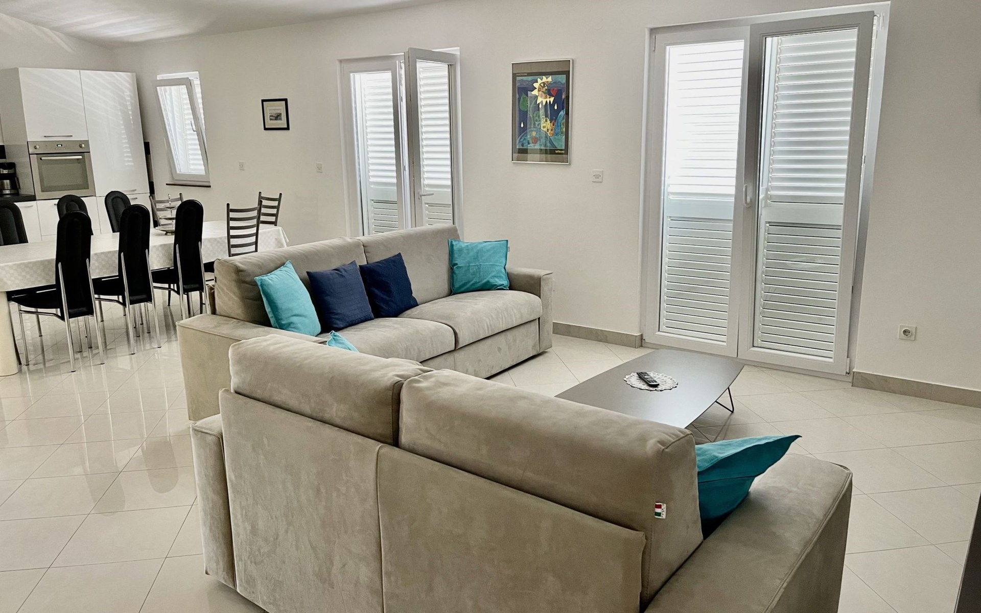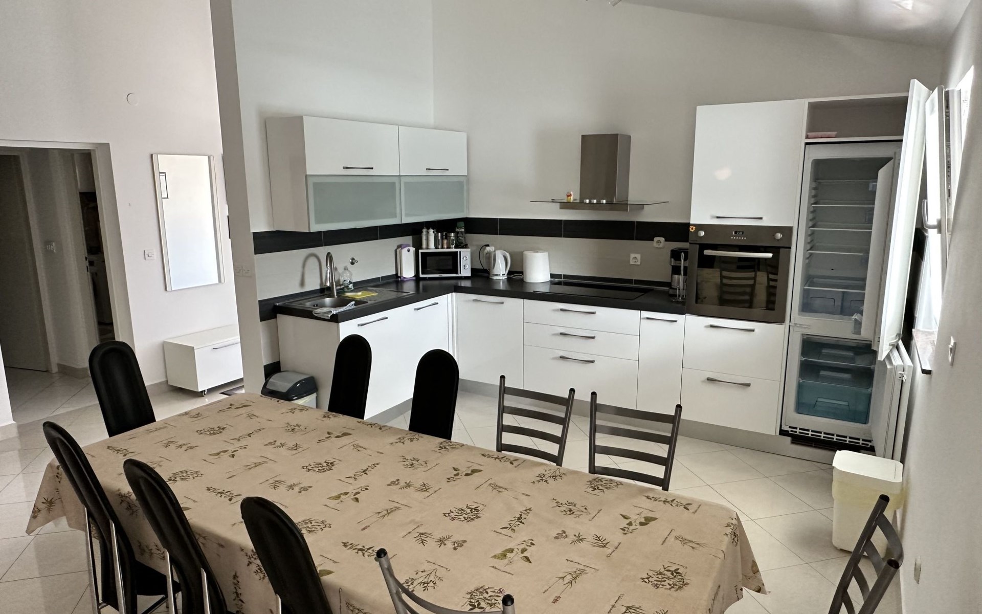 The flat is located in Kruševo, district Ribnica on Karinsko sea.Concrete beach with large parasols, sunbeds and garden shower.Our guests can use the beach as well as our parasols and free sunbeds on the beach in front of the accommodation.Outdoor barbecue with a terrace in the yard are also free to use.All our guests have a berth for the boat directly in front of the house.The flat is located on the 1st floor of the house near the sea, has 120m² and consists of 4 double bedrooms, a 50m² living room with kitchen and dining room, bathroom with shower and toilet, extra toilet, balcony, garden shower and much more. The flat is air-conditioned and comfortably equipped and cosily furnished: with satellite TV, internet, air conditioning, ceramic hob with 4 ceramic hotplates, oven, fridge, coffee pod machine and filter coffee machine with thermos, kettle, dishwasher, crockery and cutleryIt is possible to organise excursions by boat (river Zrmanja, Novigrad, Maslenica). As well as the possibility of going to the Paklenica National Park, bungee jumping from the Maslenica Bridge or visiting the Krka waterfalls. Take a boat trip to the Kornati National Park or the Zrmanja waterfalls.Countless excursion options are on offer: Paklenica NP, Zrmanja River, North Velebit Nature Park, Modric Cave, Zadar, Nin, Plitvice Lakes NP, Krka Waterfalls NP, Kornati NP etc.