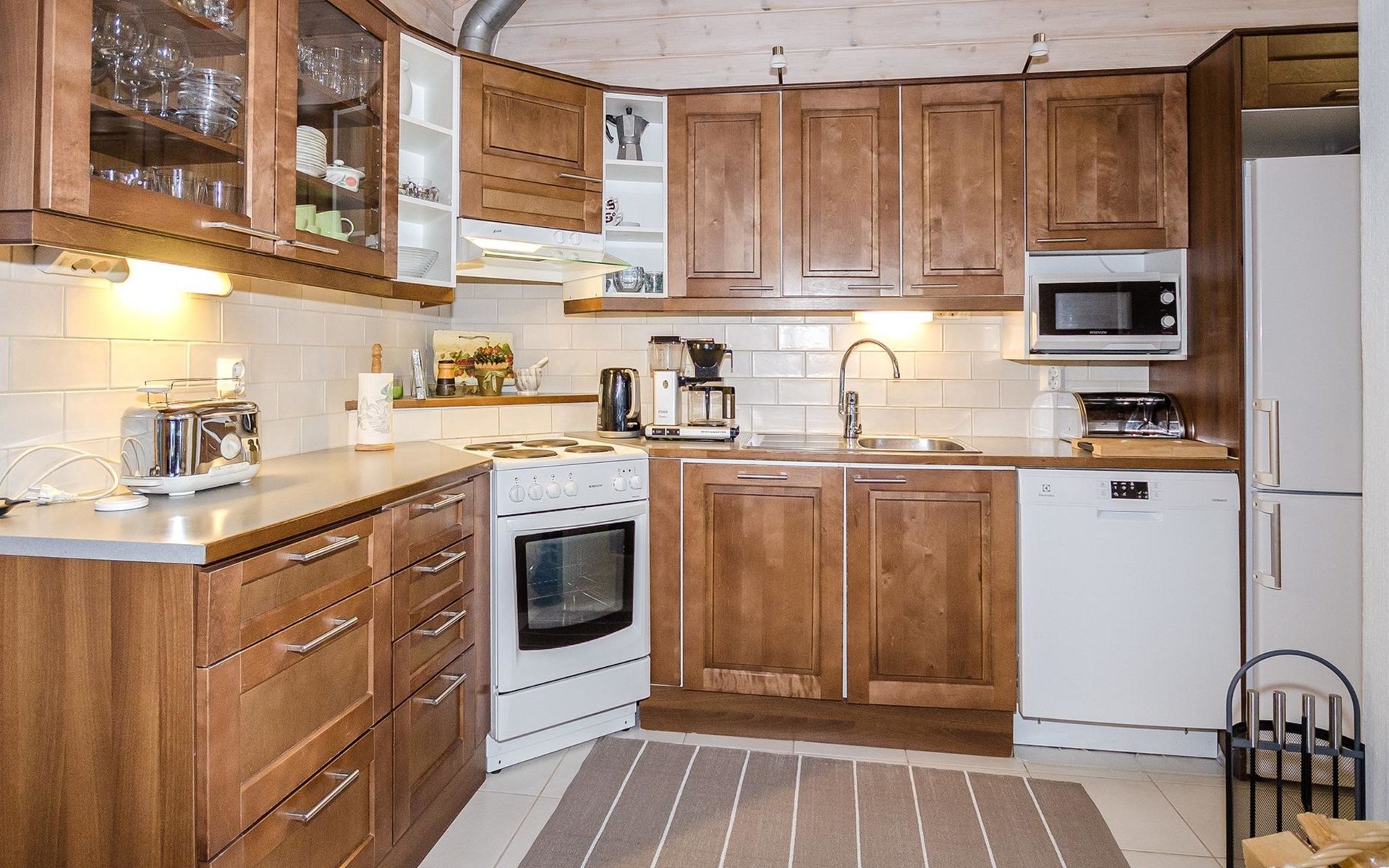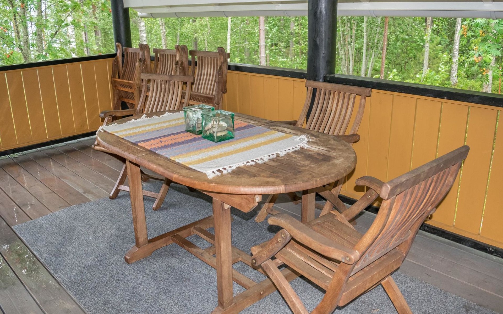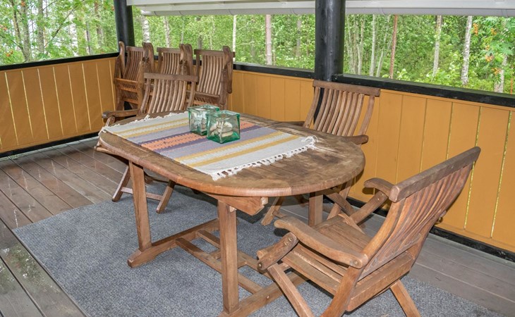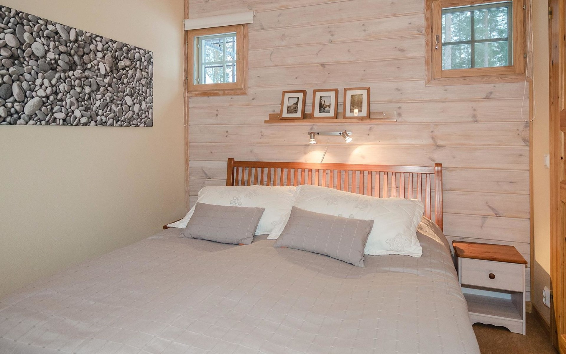 Living room, kitchen, one bedroom with double bed, sleeping gallery with 2 beds and sofa bed for 1-2 persons, washroom, sauna (elec. stove), terrace, carport.
