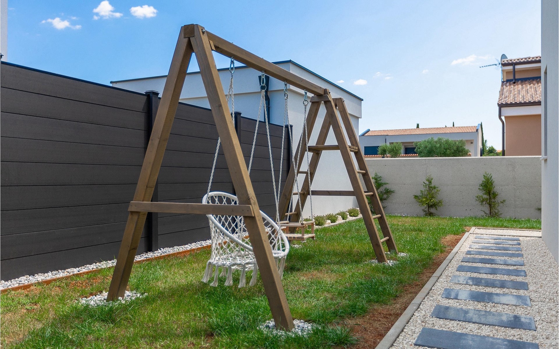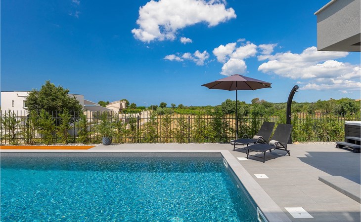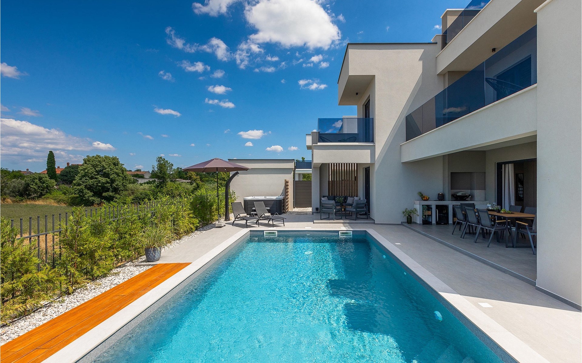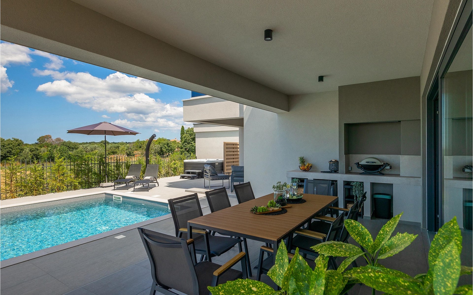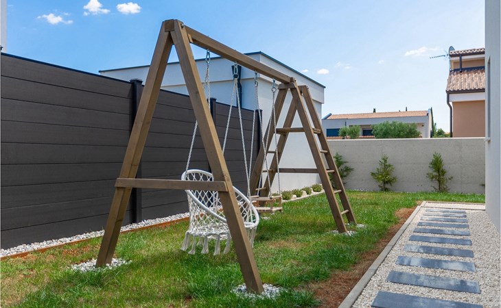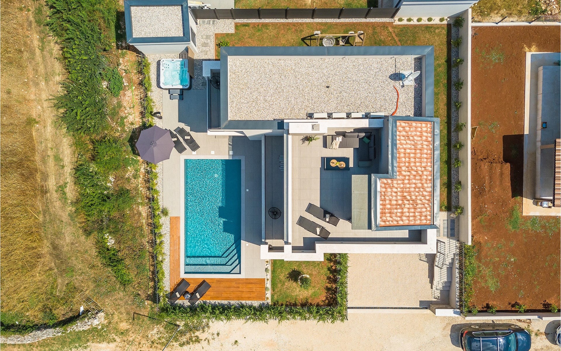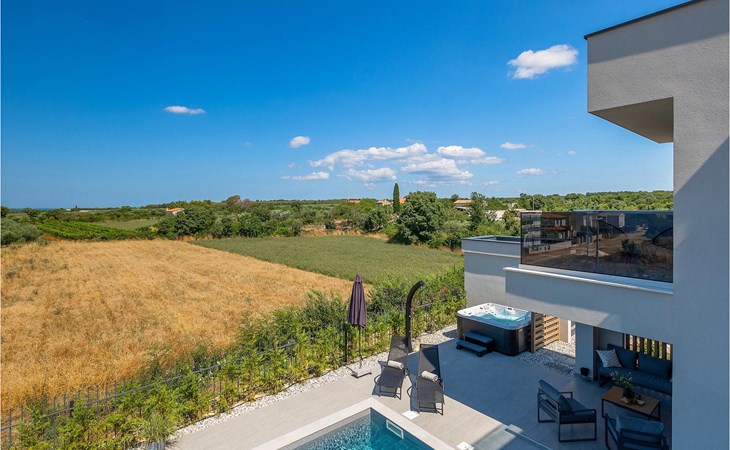 Villa IVaLA is een prachtige familievilla in de buurt van Pula, ideaal voor een droomvakantie met familie en vrienden. Voor de villa ligt een prachtig zwembad van 32 m2. Tijdens de zomerhitte vind je verfrissing in het zwembad, terwijl zonaanbidders kunnen genieten van de Istrische zon op de ligstoelen direct bij het zwembad. Ontspan in de jacuzzi buiten. Geniet van Istrische gerechten bereid op de barbecue in een overdekte ruimte aan de voorkant van de villa, waar een eettafel voor 8 personen staat. De jongste gasten kunnen zich vermaken op de kinderspeelplaats, die is uitgerust met schommels en klimrekken. Maar ook binnen in de villa is er genoeg te beleven. Op het terras op de eerste verdieping van de villa kun je een potje tafelvoetbal spelen. Op de begane grond van de villa is een gezellige woonkamer met een prachtig uitzicht op het zwembad. In de open ruimte is er ook een uitgeruste keuken met alles wat je nodig hebt om heerlijke maaltijden te bereiden en een eetkamer met 6 zitplaatsen. Op dezelfde verdieping is er een badkamer en een apart toilet. De slaapkamers bevinden zich op de eerste verdieping. De eerste slaapkamer heeft een tweepersoonsbed en een en-suite badkamer. De andere twee slaapkamers hebben tweepersoonsbedden en er is een aparte badkamer op deze verdieping. Alle slaapkamers hebben airconditioning, TV en een eigen terras waar je 's ochtends van je koffie kunt genieten terwijl je het prachtige uitzicht op zee bewondert. Het bijzondere aan de villa is het dakterras, dat zich op de tweede verdieping bevindt. Geniet van het unieke uitzicht op de Brijuni-eilanden en de prachtige zee, die je de adem zal benemen. Mis een unieke vakantie in Villa IVaLA met panoramisch uitzicht niet en geniet van de sfeer van het charmante dorpje Galizana. Galizana is een dorp in Istrië tussen Vodnjan en Pula. Galizana heeft een rijke geschiedenis en traditie die teruggaat tot de oudheid. De lokale bevolking zal je verrukken met hun producten. Mis het proeven van extra vergine olijfolie, schapenkaas en andere lokale producten niet. Vermaak je tijdens lokale evenementen zoals Galicische nachten en folklore. Mis een bezoek aan Vodnjan met zijn rijke gastronomische aanbod niet. Verken Vodnjan met zijn interessante muurschilderingen, de kerk van St. Foska, waar zich drie kazuns bevinden, traditionele onderkomens gemaakt van Istrische steen. Natuurliefhebbers zullen genieten van het dorp Peroj en het prachtige uitzicht op het Fazana kanaal en de Brijuni archipel bewonderen. Een niet te missen bestemming is de grootste Istrische stad Pula, waar u de Pula Arena, de Tempel van Augustus, de Gouden Poort en vele andere culturele en historische monumenten kunt bezoeken. Aan het einde van je Istrische avontuur verken je de Brijuni-archipel met het beroemde Brijuni Nationaal Park en zijn safaripark.